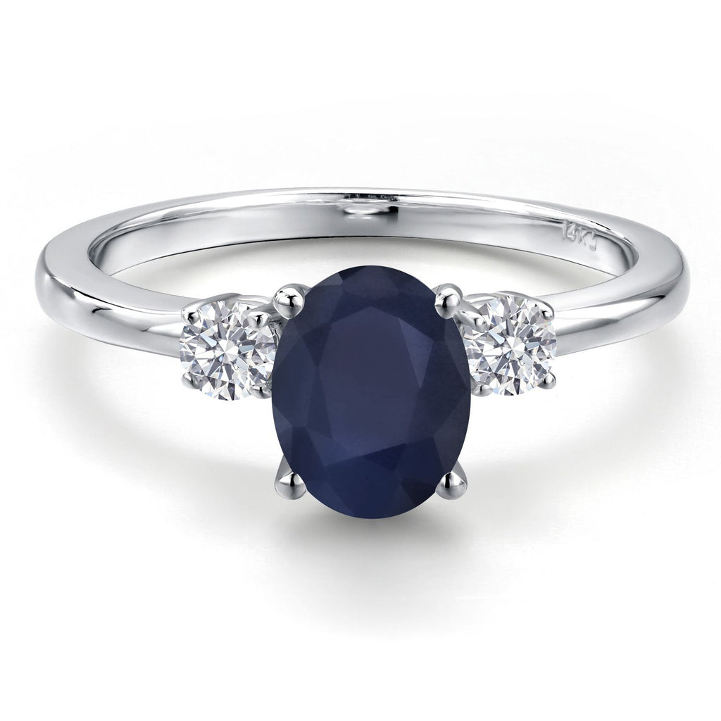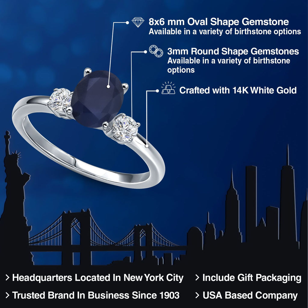 14K White Gold Blue Sapphire and White Lab Grown Diamond 3-Stone Engagement Ring For Women | 2.00 Cttw | Oval 8X6MM | Gemstone September Birthstone | Available in Size 5,6,7,8,9