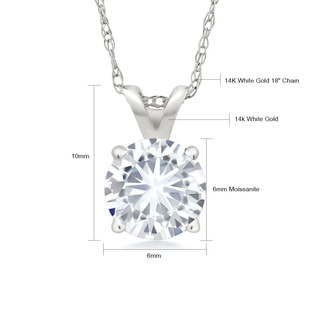 EXQUISITE 14K WHITE GOLD SETTING: Revel in the exquisite craftsmanship of the pendant, crafted from luxurious 14K white gold. The white gold setting provides a sophisticated and enduring backdrop, enhancing the overall allure of the Moissanite solitaire.