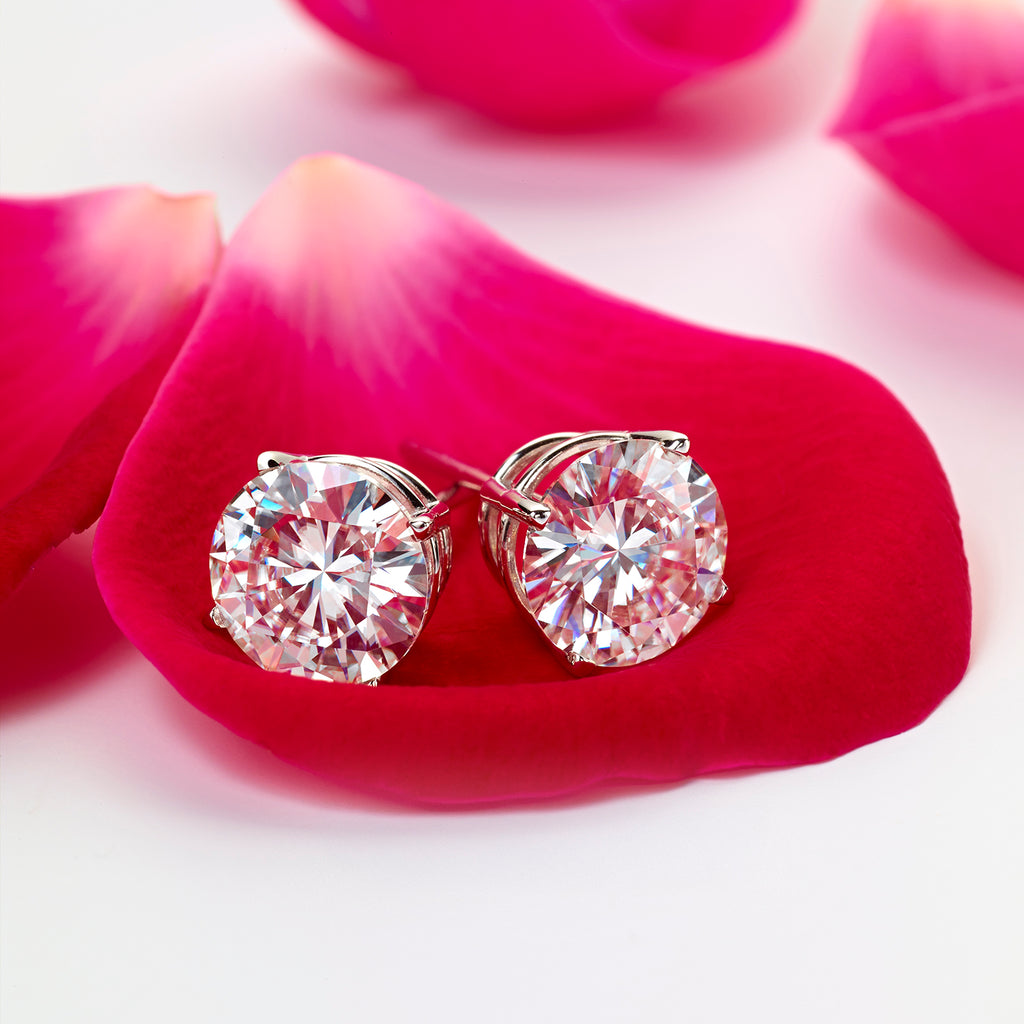 Solid 14K White Gold Forever Classic Moissanite Stud Earrings For Women Men | 1.60 Cttw | Round 6MM
