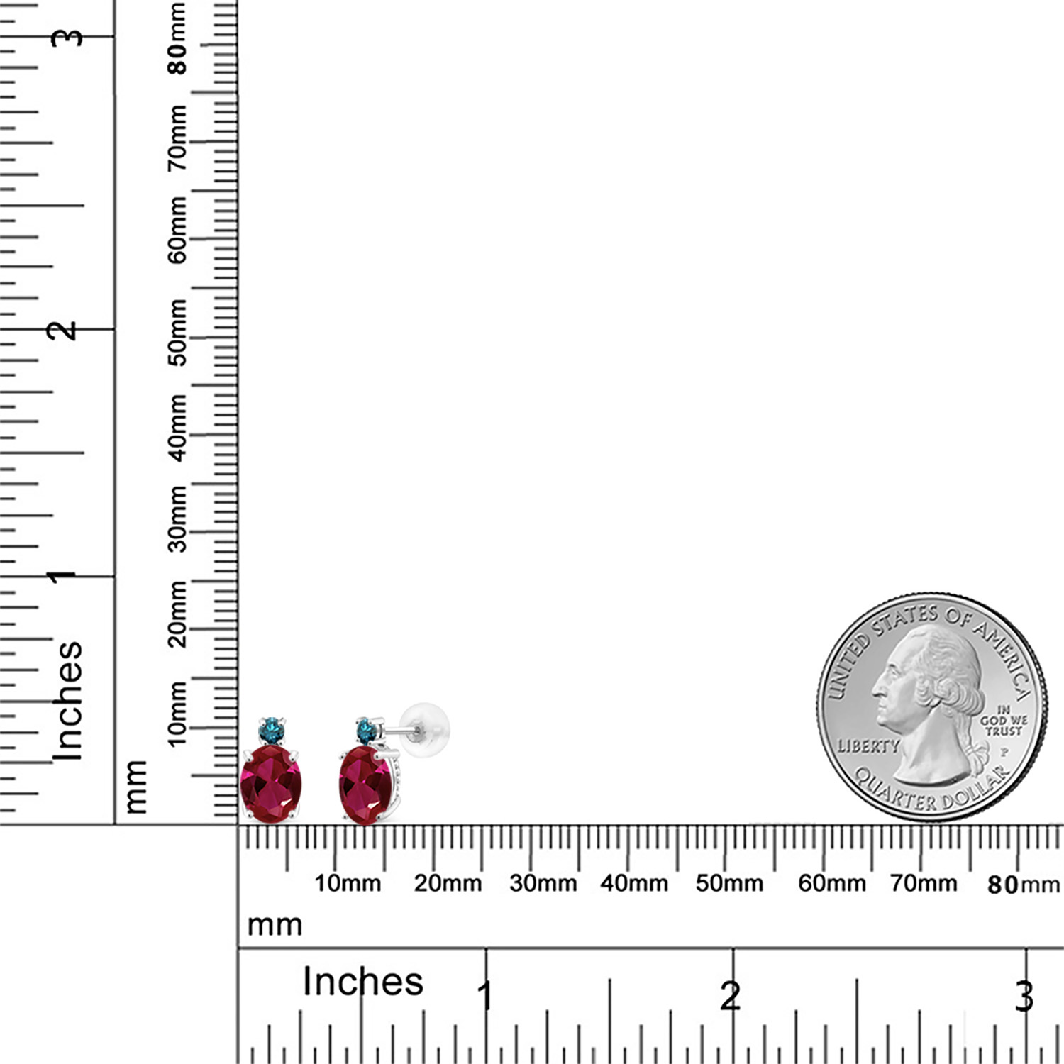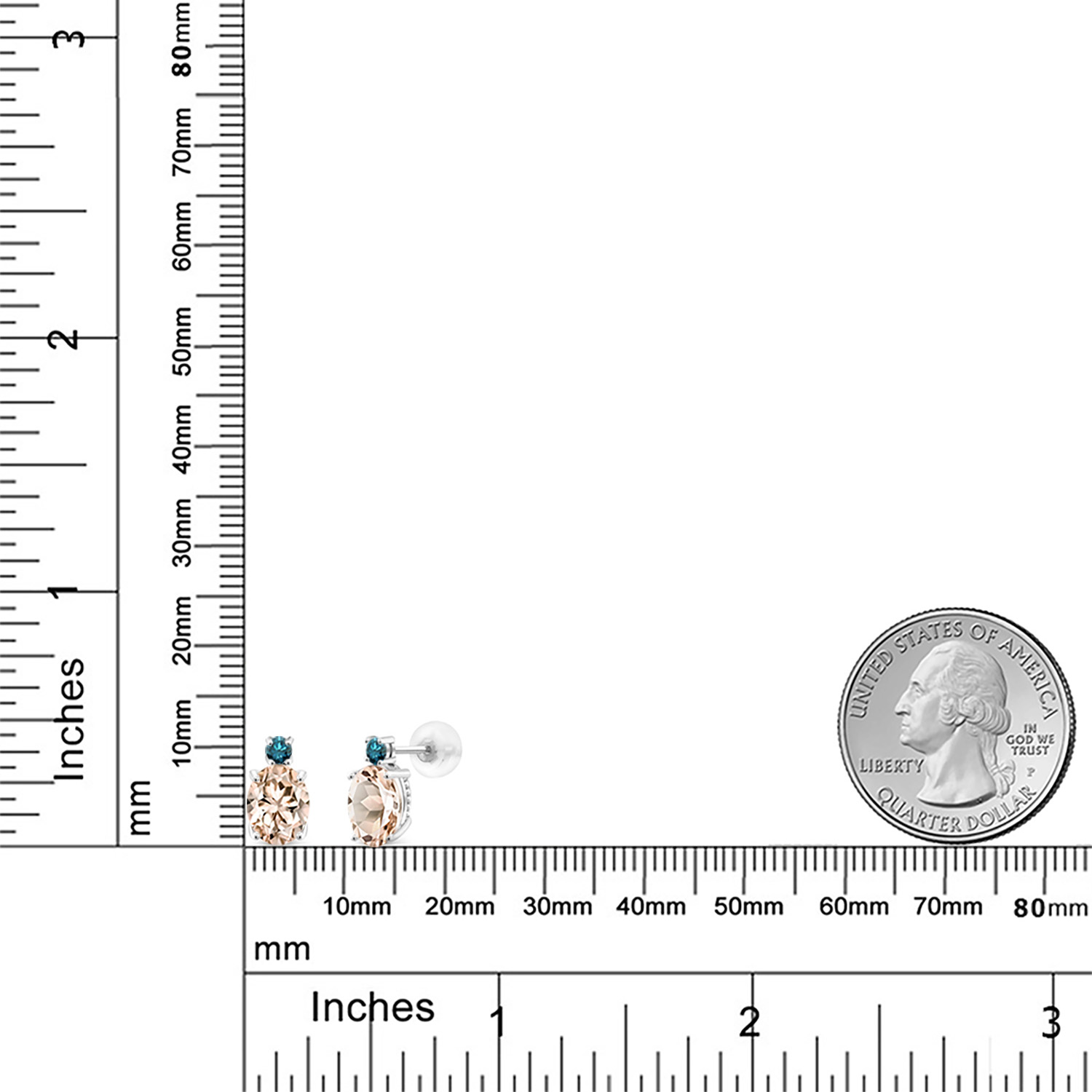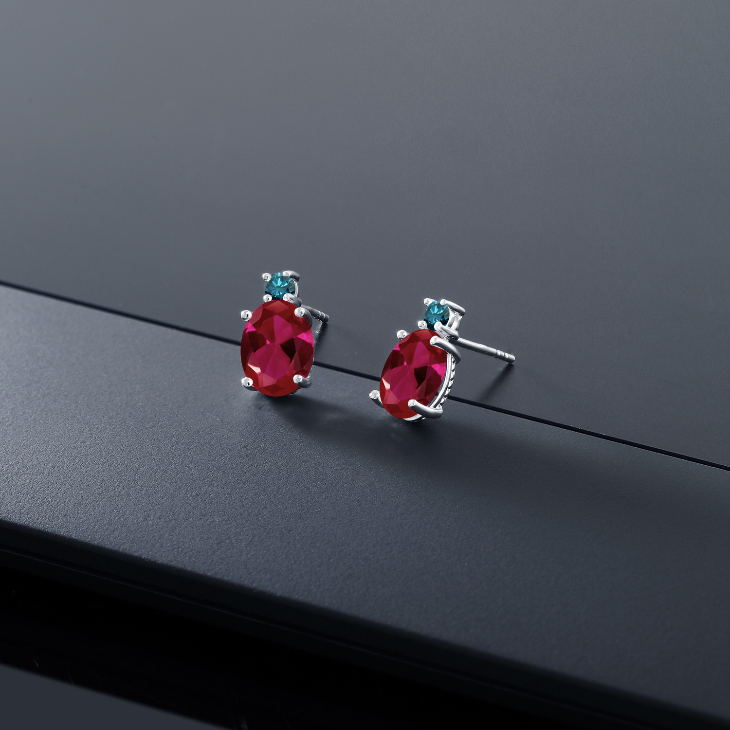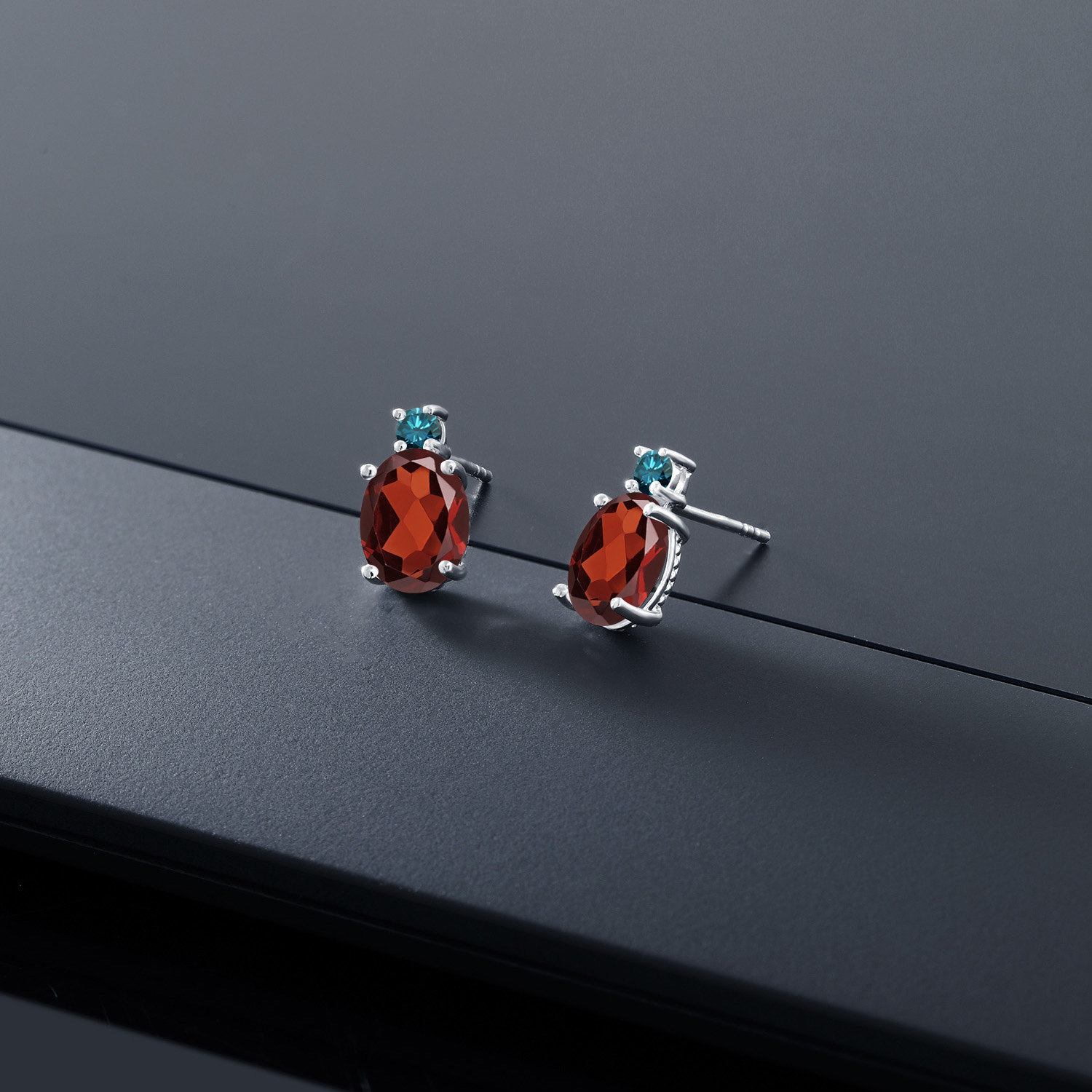 14K White Gold Gemstone Birthstone and Blue Diamond Stud Earrings For Women | Oval 8X6MM | Round 2.5MM | Elegant Two-Stone Design | Classic Fine Jewelry Earrings