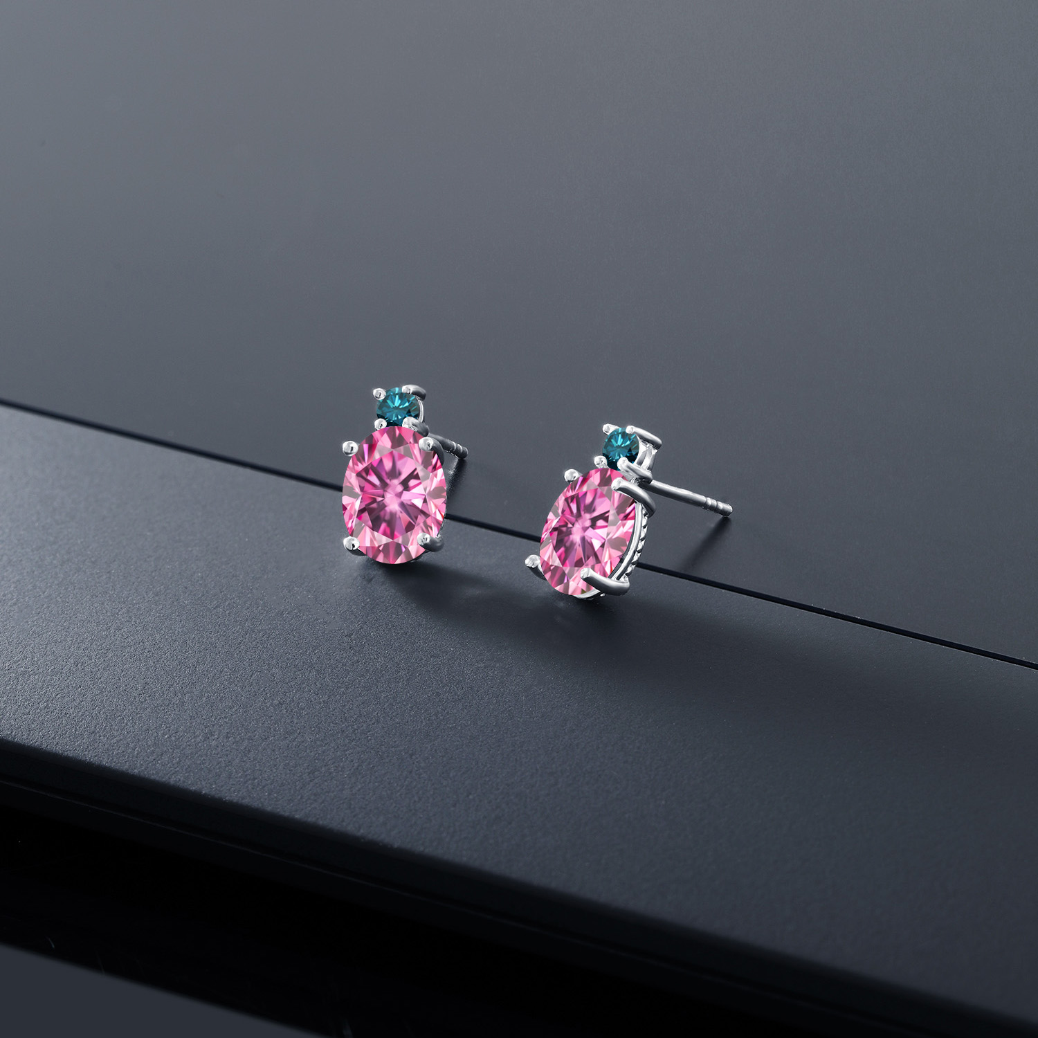 BLUE DIAMOND SIDE STONES: The earrings are adorned with round 2.5MM Blue Diamond side stones. The two-stone design, coupled with the masterful craftsmanship, results in an elegant piece of fine jewelry that radiates sophistication and grandeur. The blue diamonds add a dash of color, enhancing the overall visual appeal.