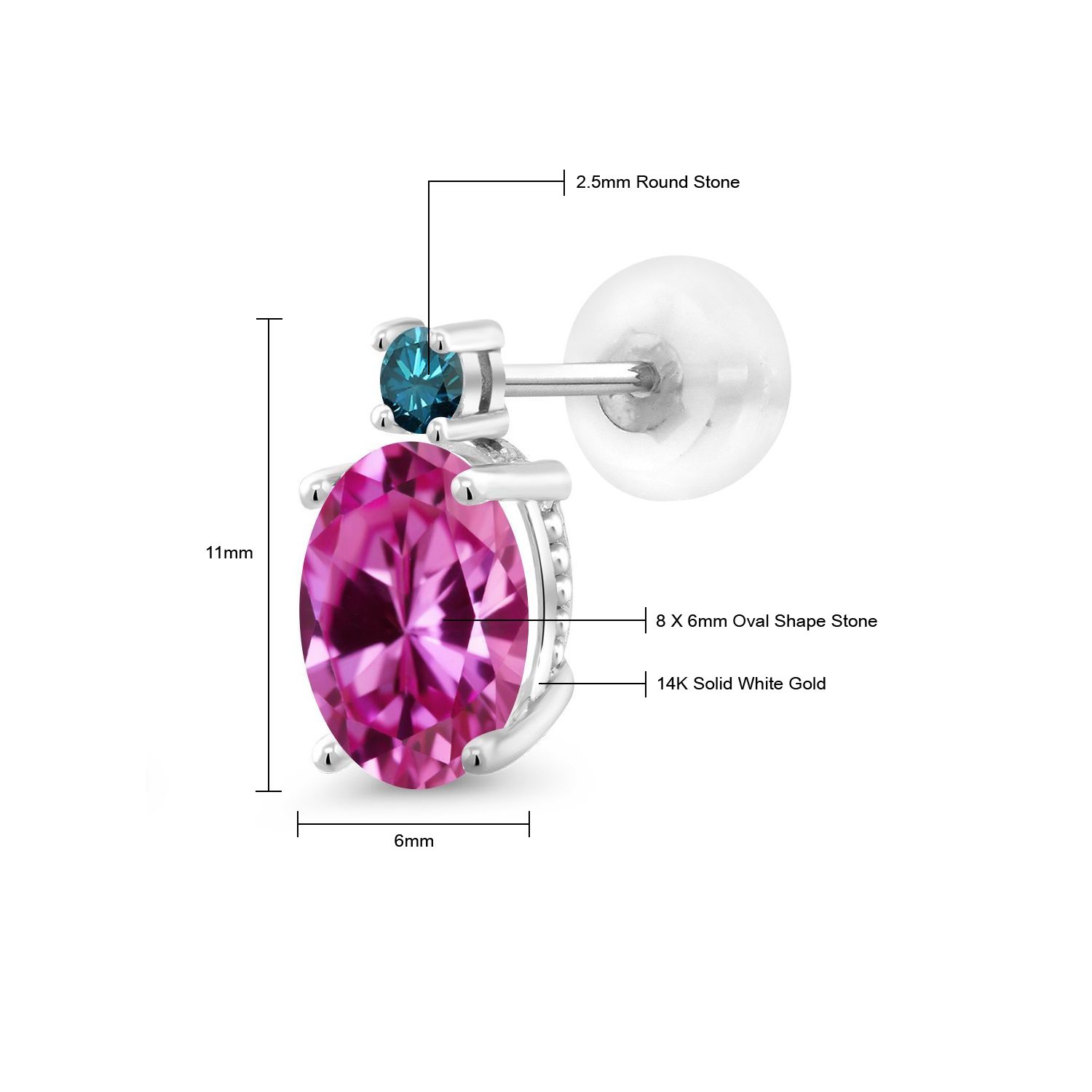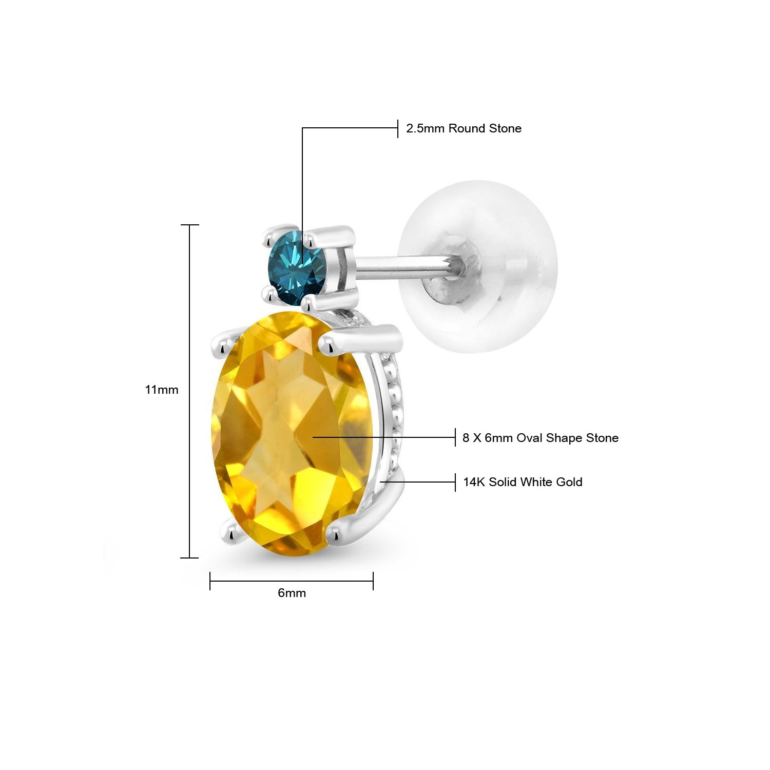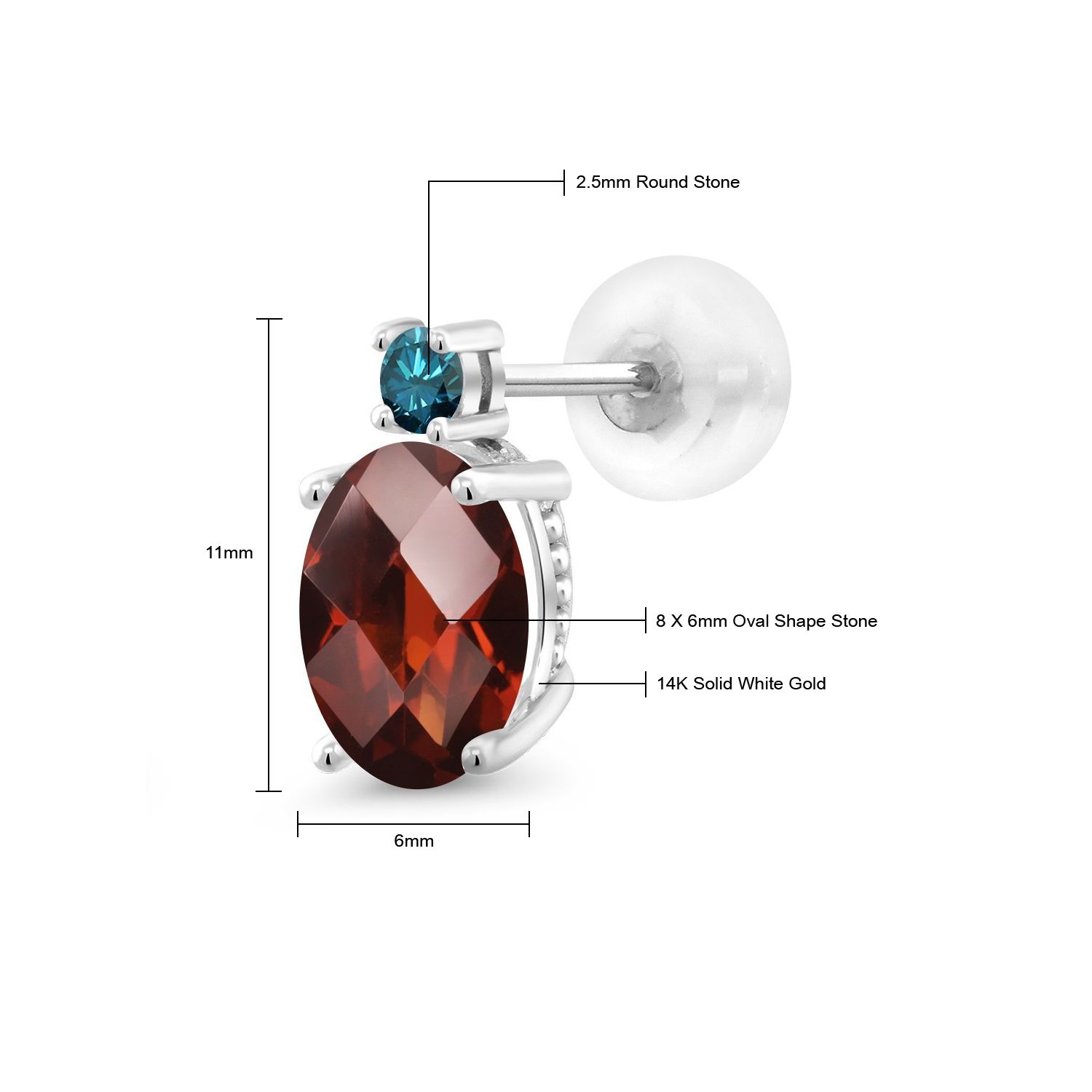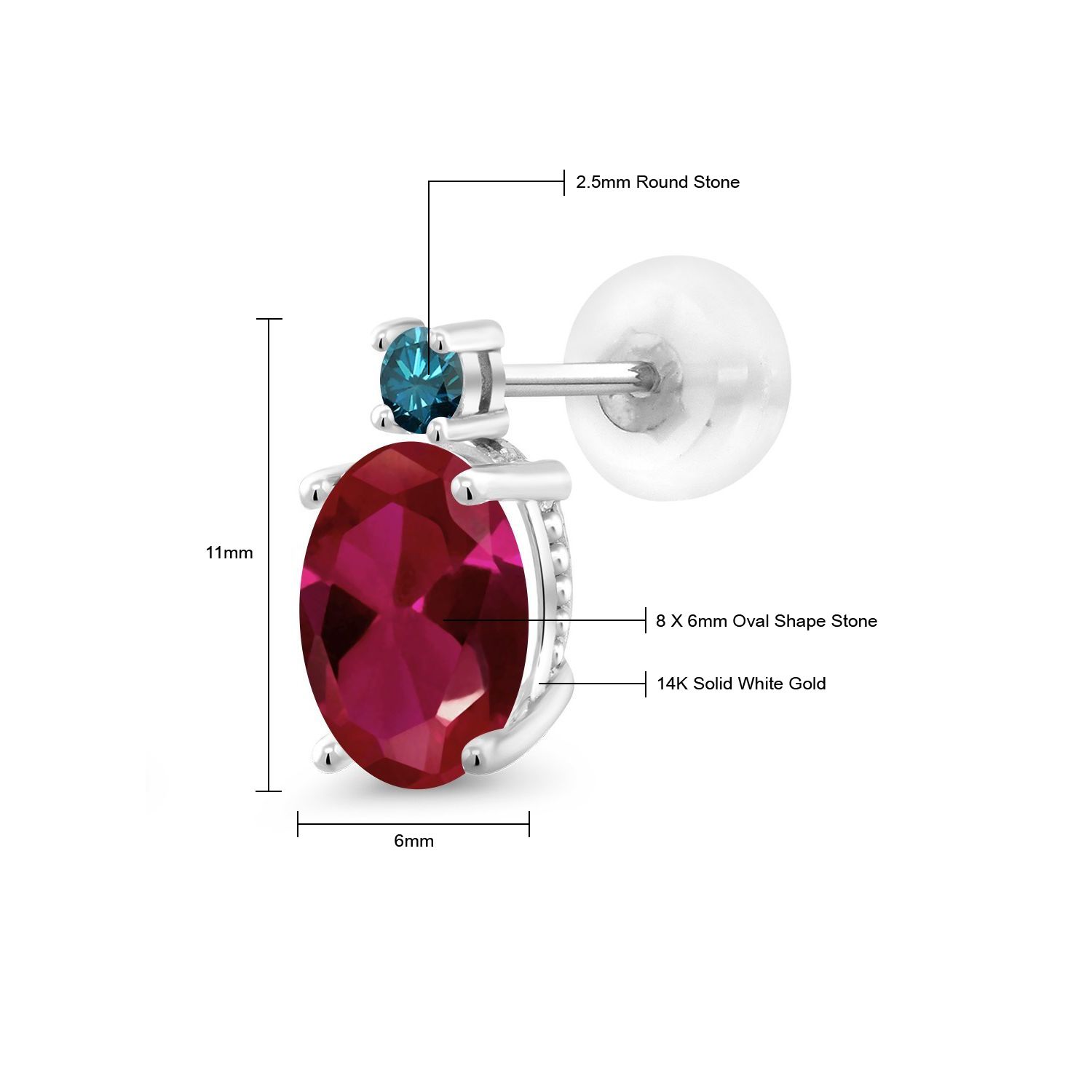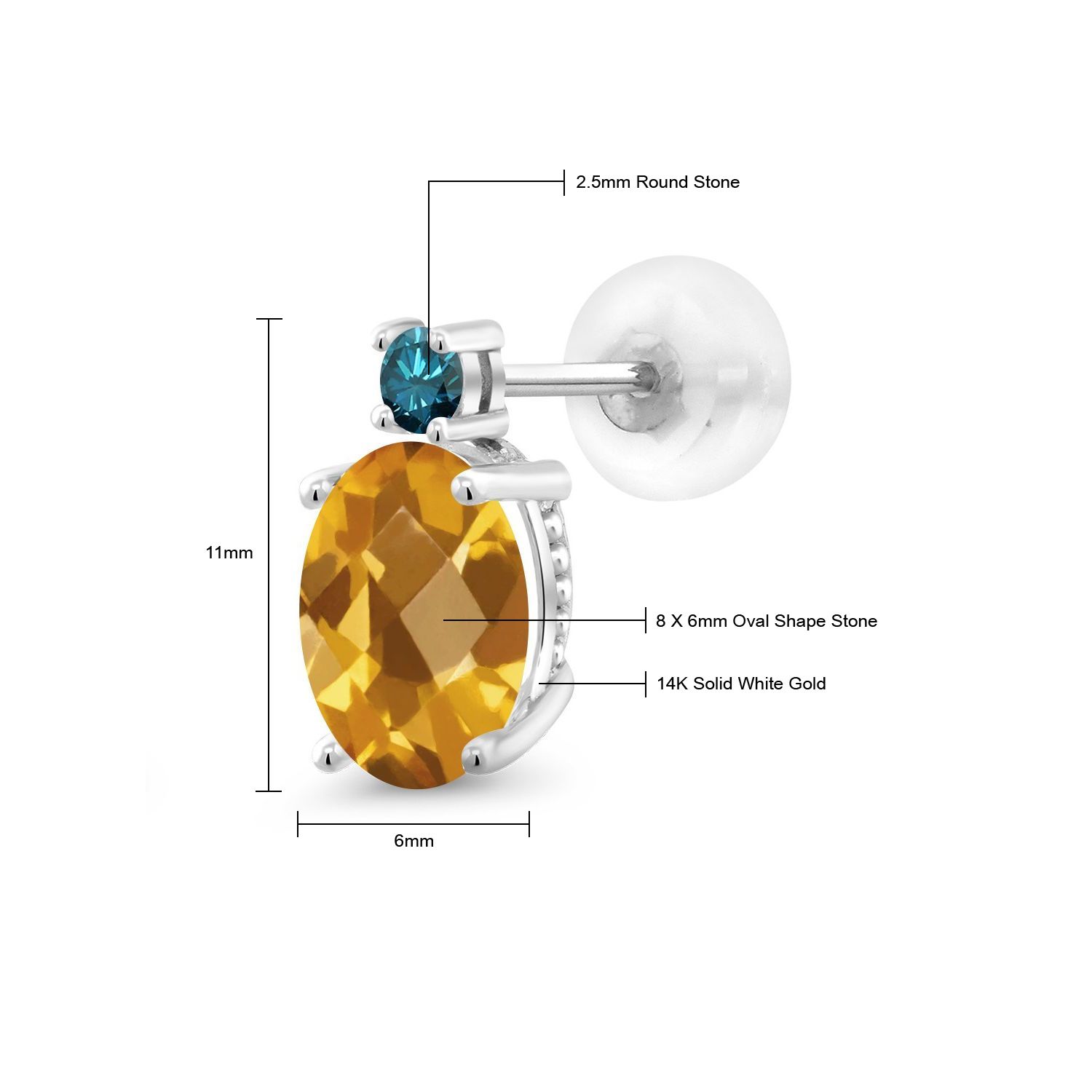 EXQUISITE GEMSTONE BIRTHSTONE OPTIONS: These prime 14K White Gold Stud Earrings showcase a stunning oval 8X6MM main gemstone, offered in a variety of captivating birthstone options. The unique shape of the gemstones, coupled with their brilliant clarity, adds a compelling touch of elegance and individuality to the wearer's ensemble.