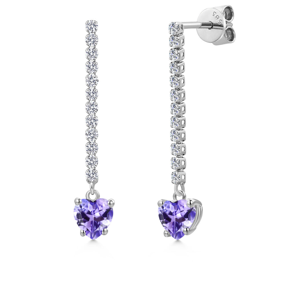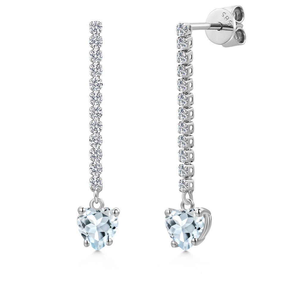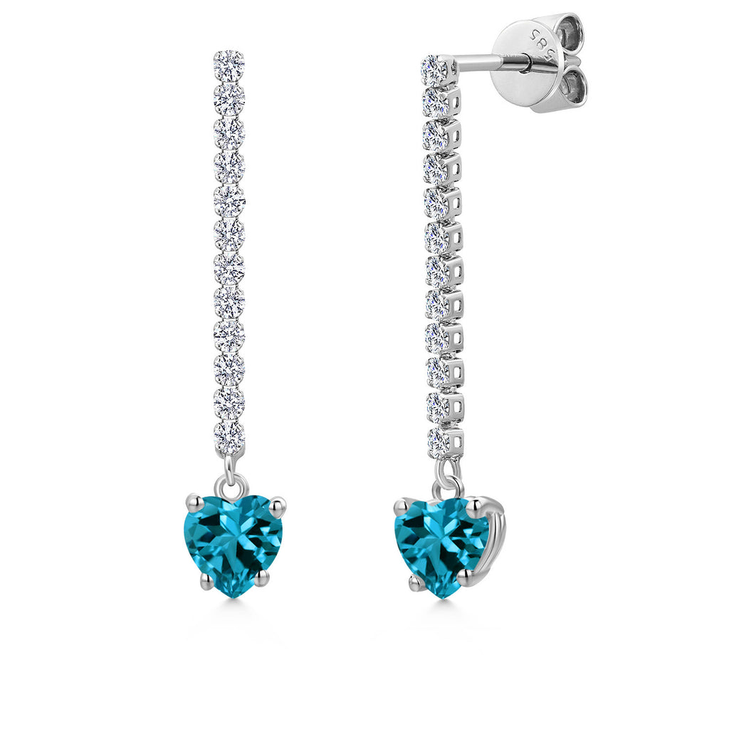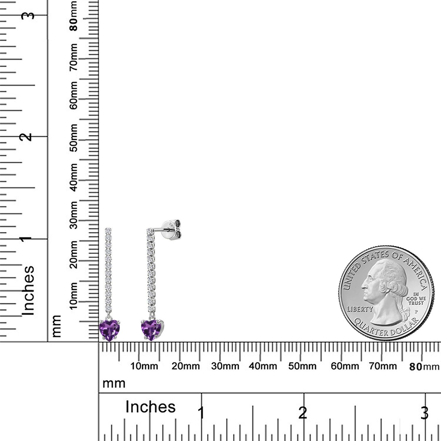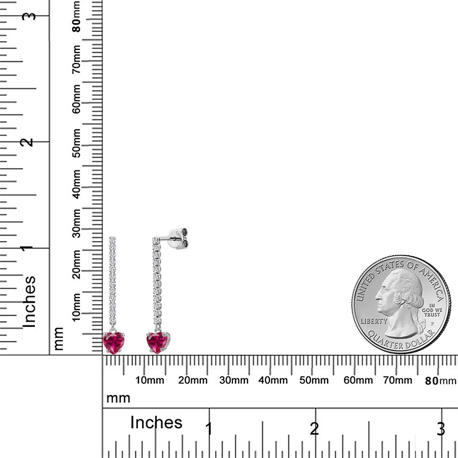 14K White Gold Gemstone Birthstone and Lab Grown Diamond Long Liner Dangle Earrings for Women | Heart Shape 5MM and Round 1.5MM | White Gold Chain Drop Earrings