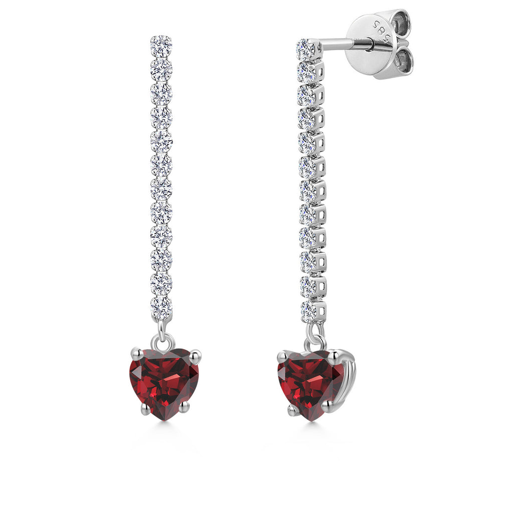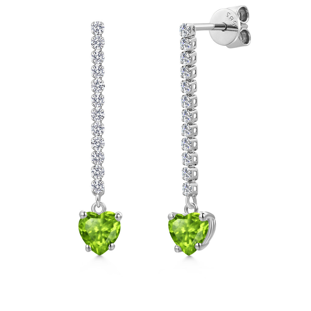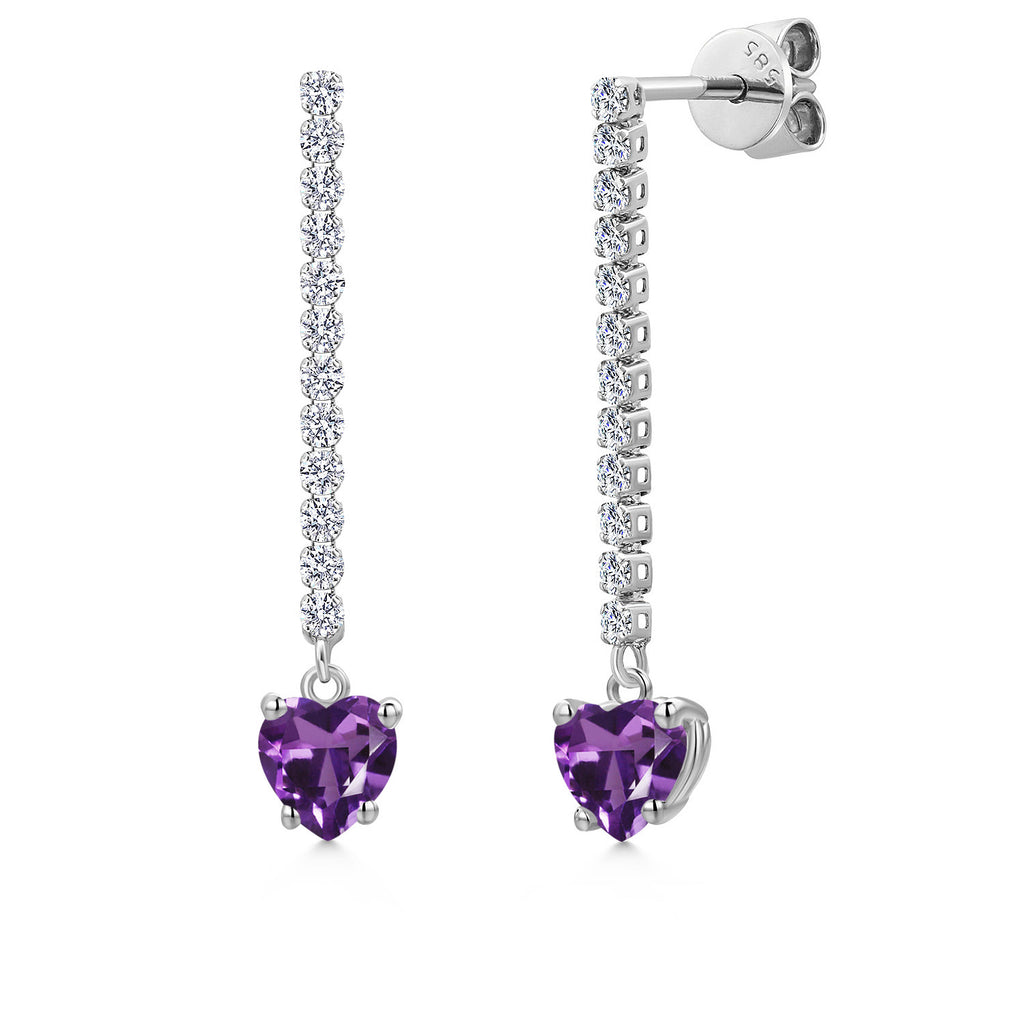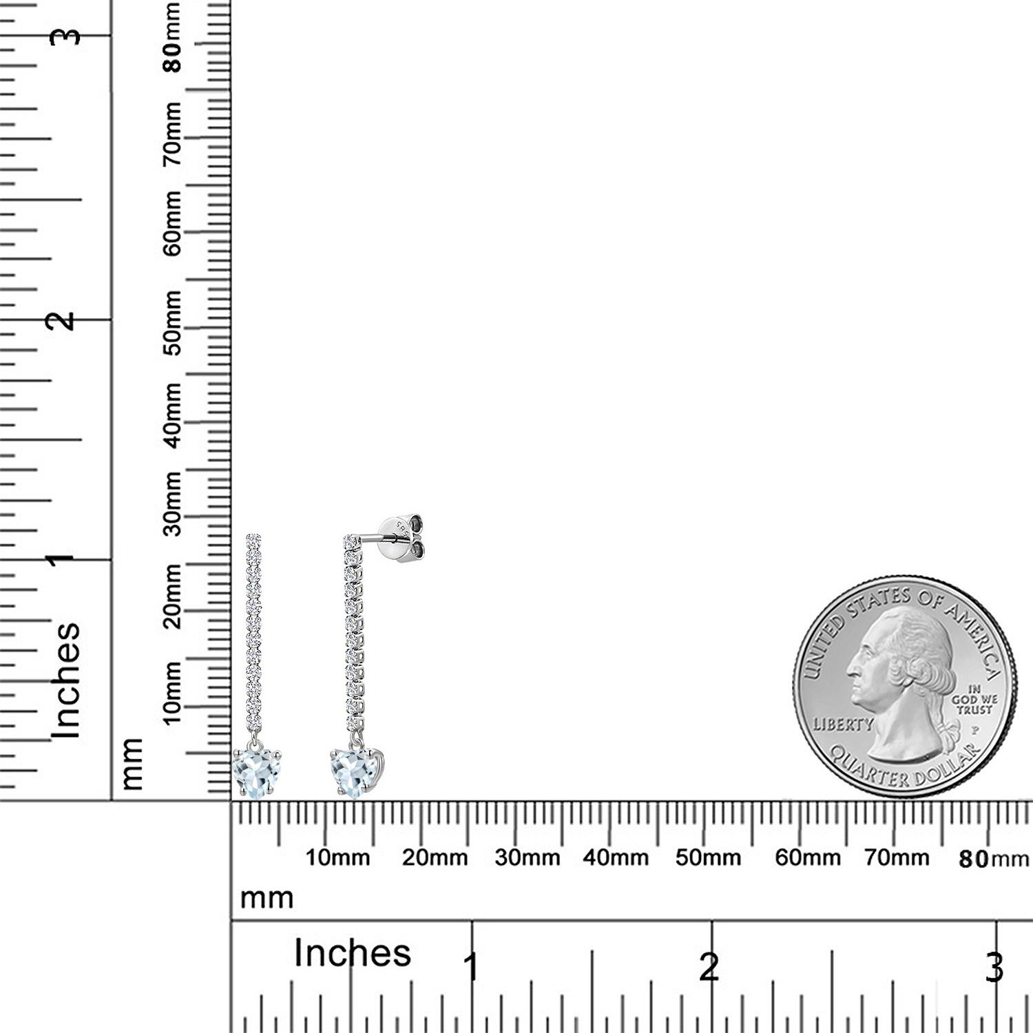14K White Gold Gemstone Birthstone and Lab Grown Diamond Long Liner Dangle Earrings for Women | Heart Shape 5MM and Round 1.5MM | White Gold Chain Drop Earrings