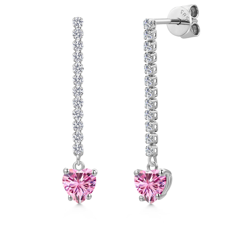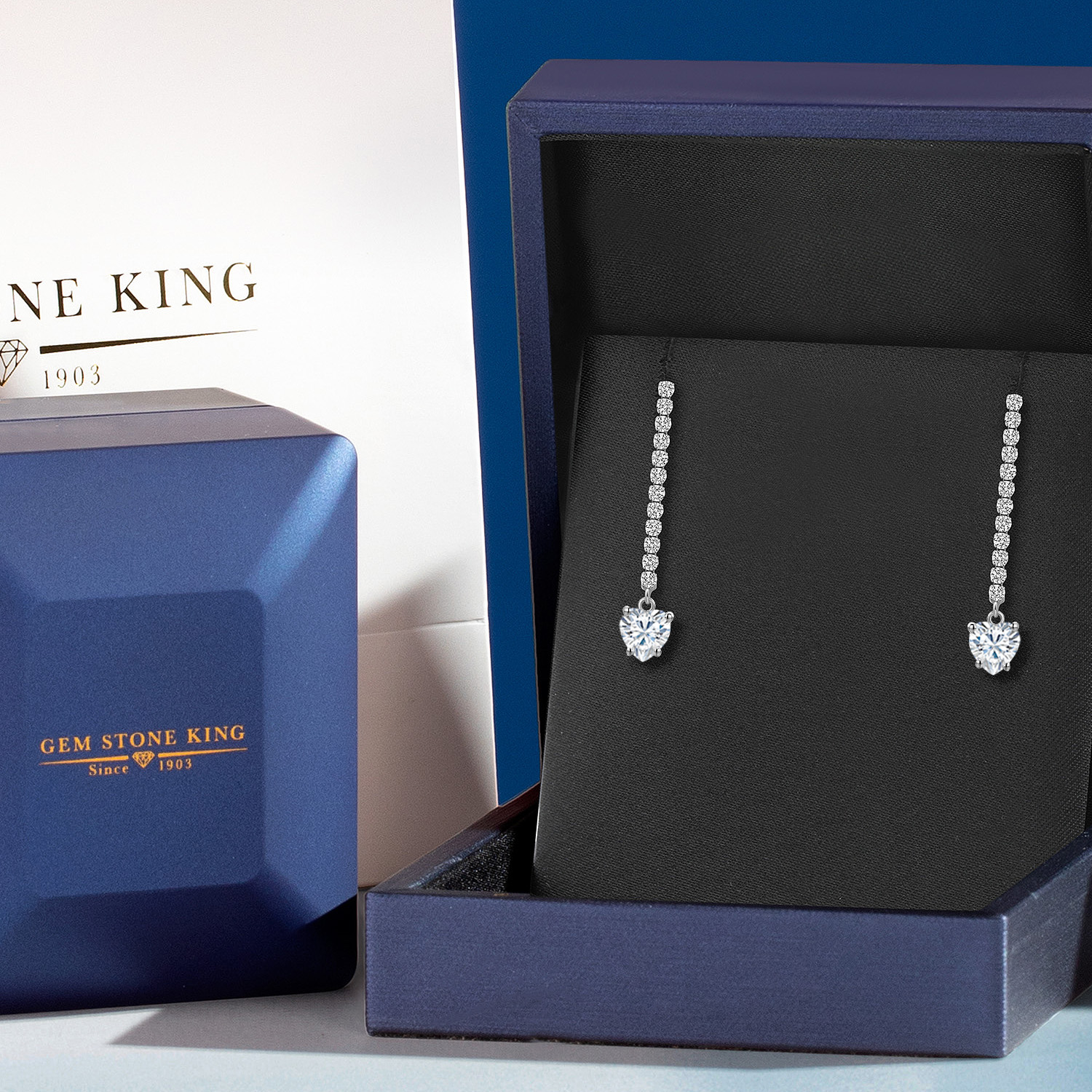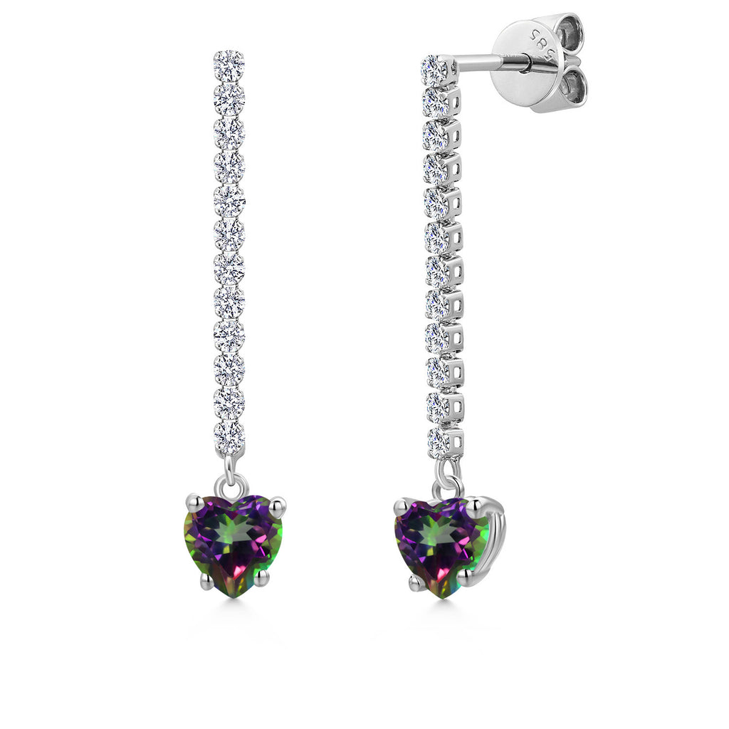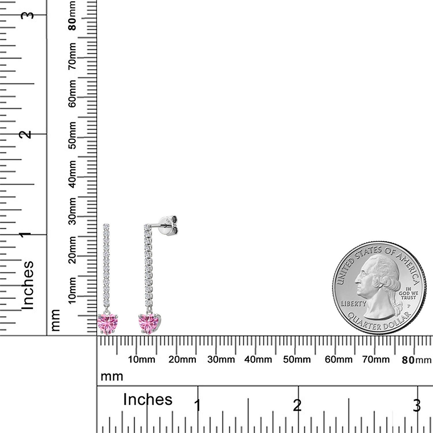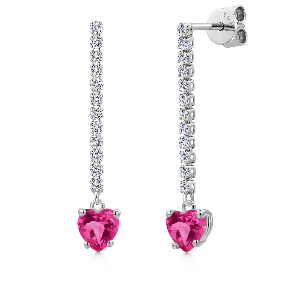 14K White Gold Gemstone Birthstone and Lab Grown Diamond Long Liner Dangle Earrings for Women | Heart Shape 5MM and Round 1.5MM | White Gold Chain Drop Earrings