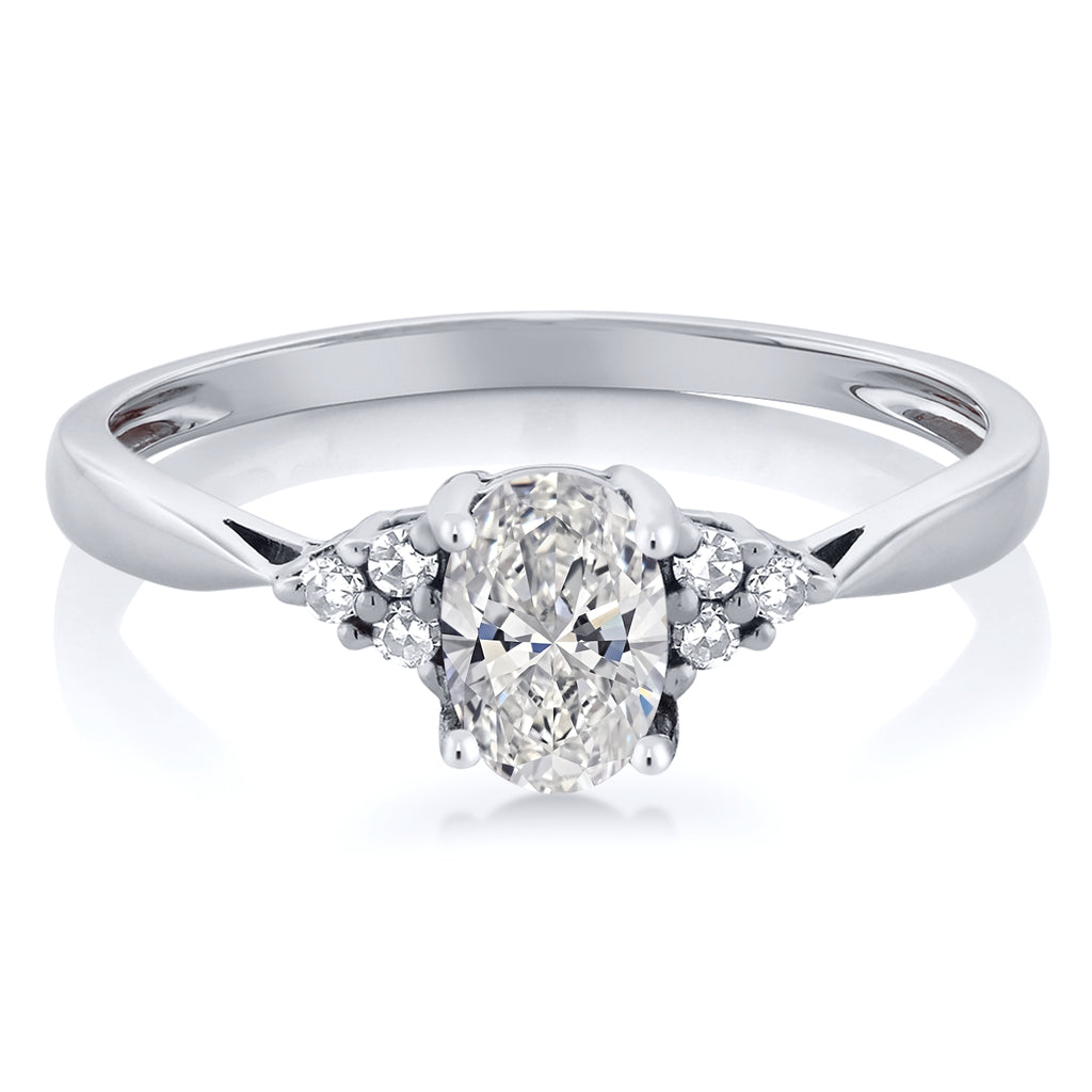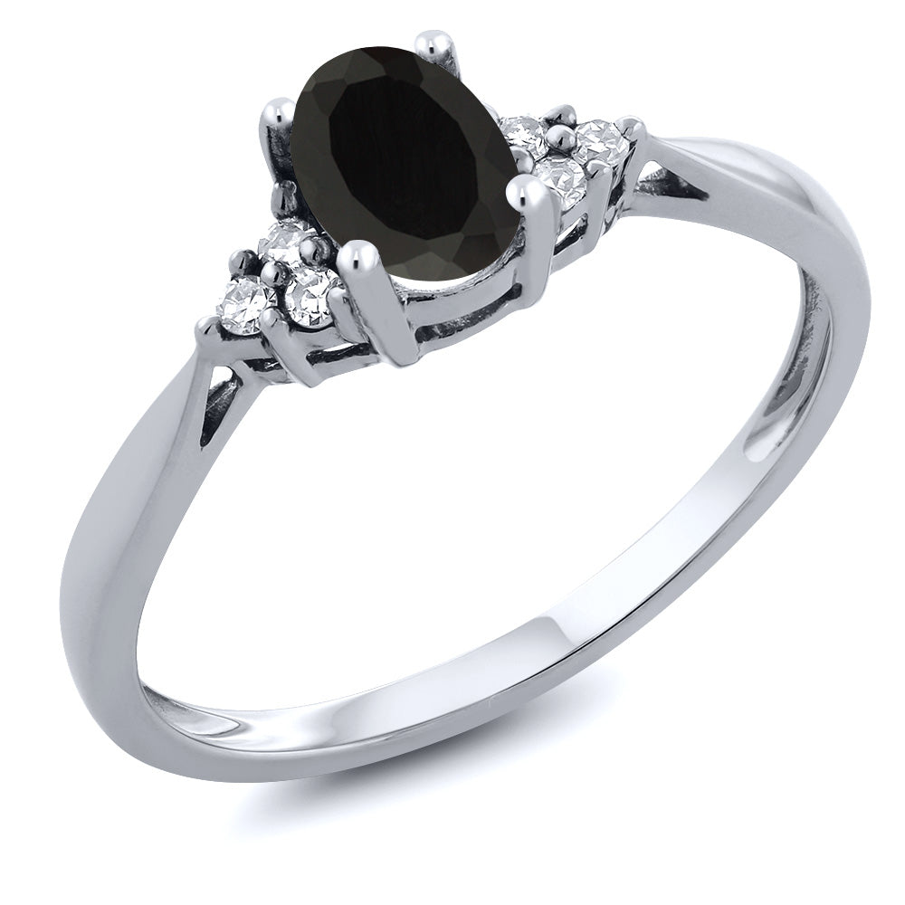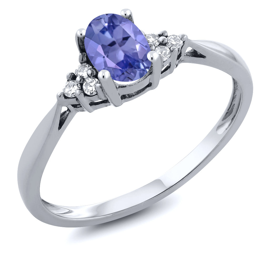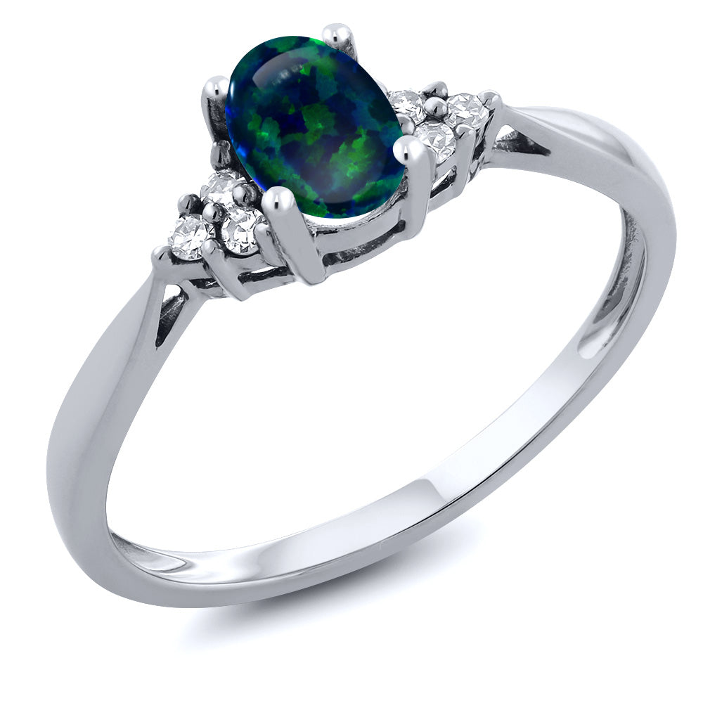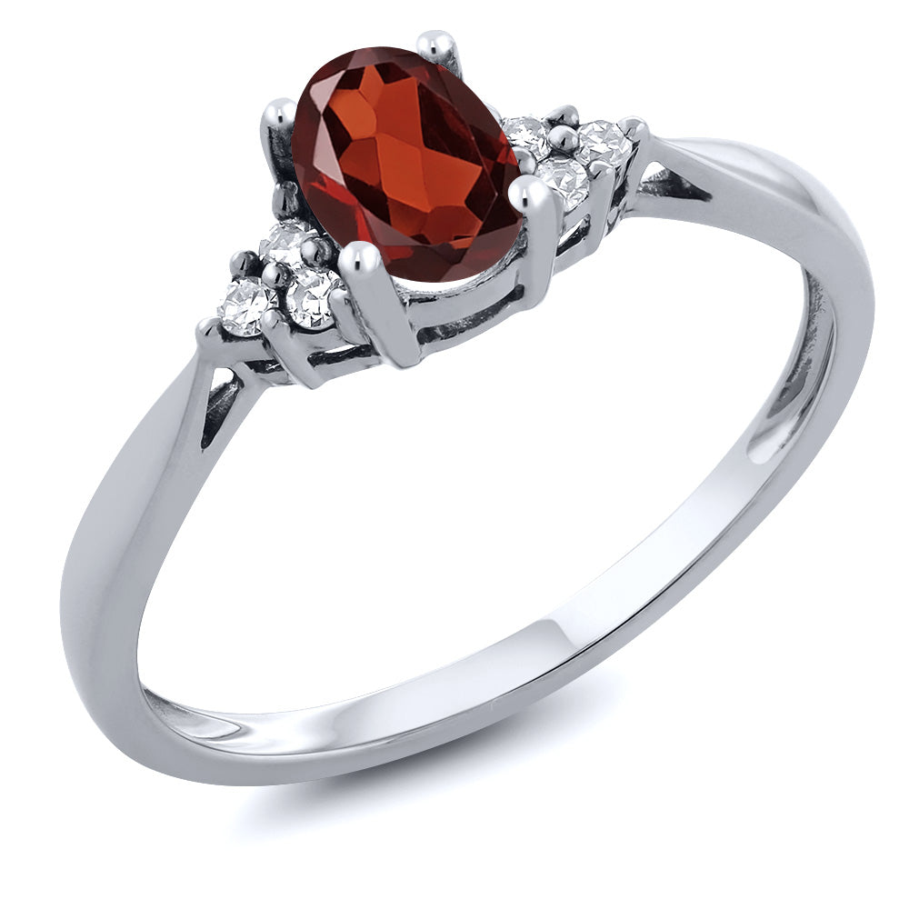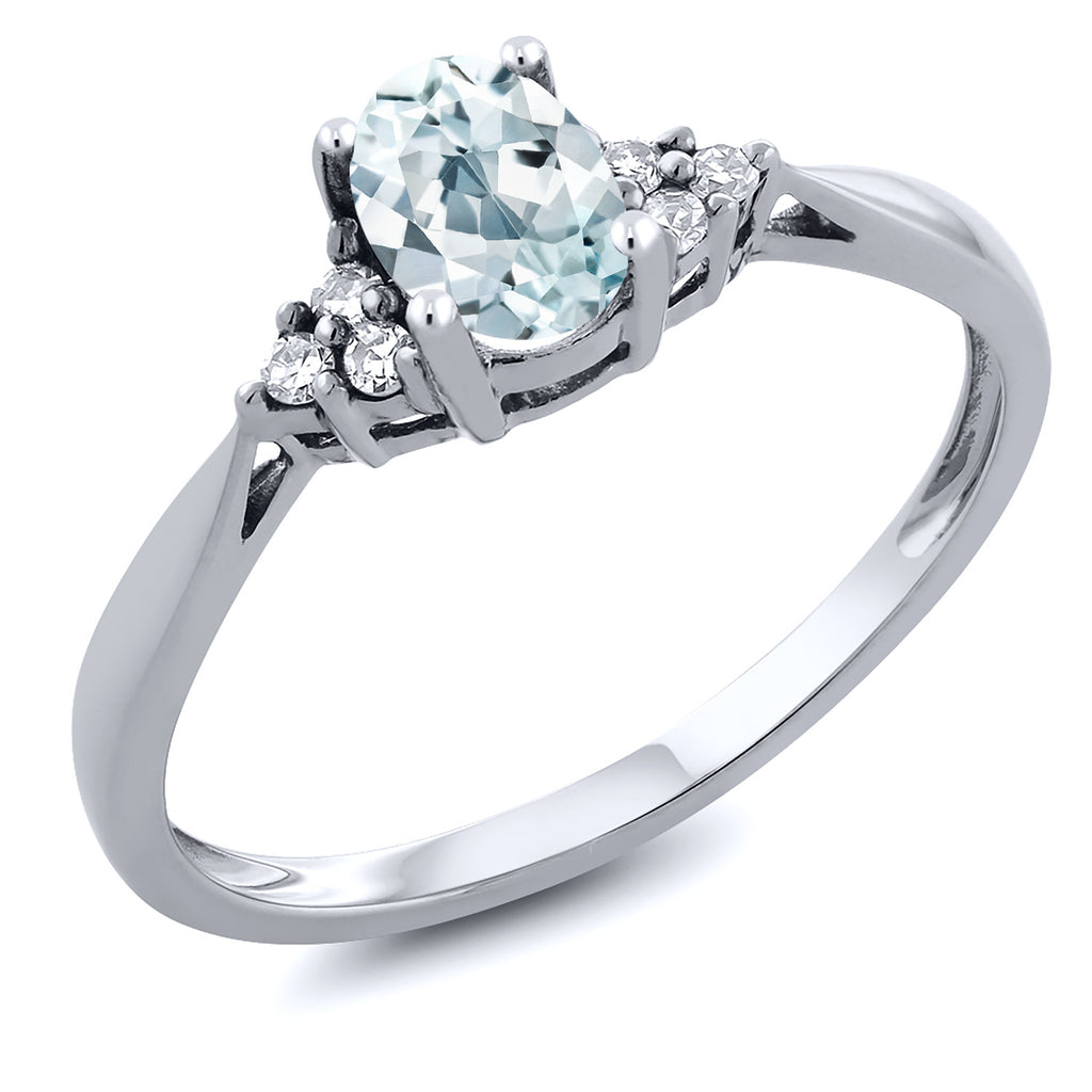 14K White Gold Gemstone Birthstone and White Diamond Engagement Ring | Oval Shape 6X4MM | Wedding Anniversary Promise Gold Ring For Women | Available in Size 5, 6, 7, 8, 9