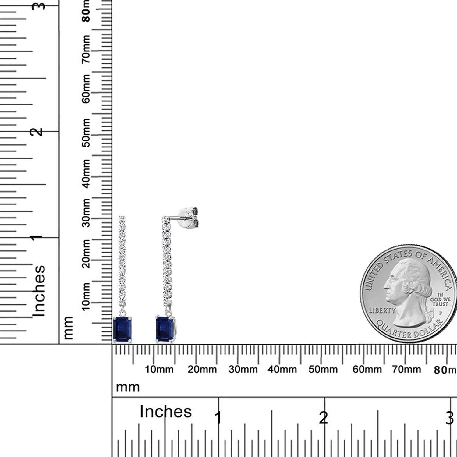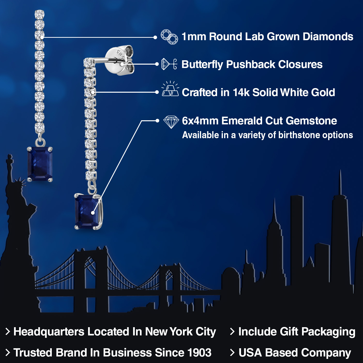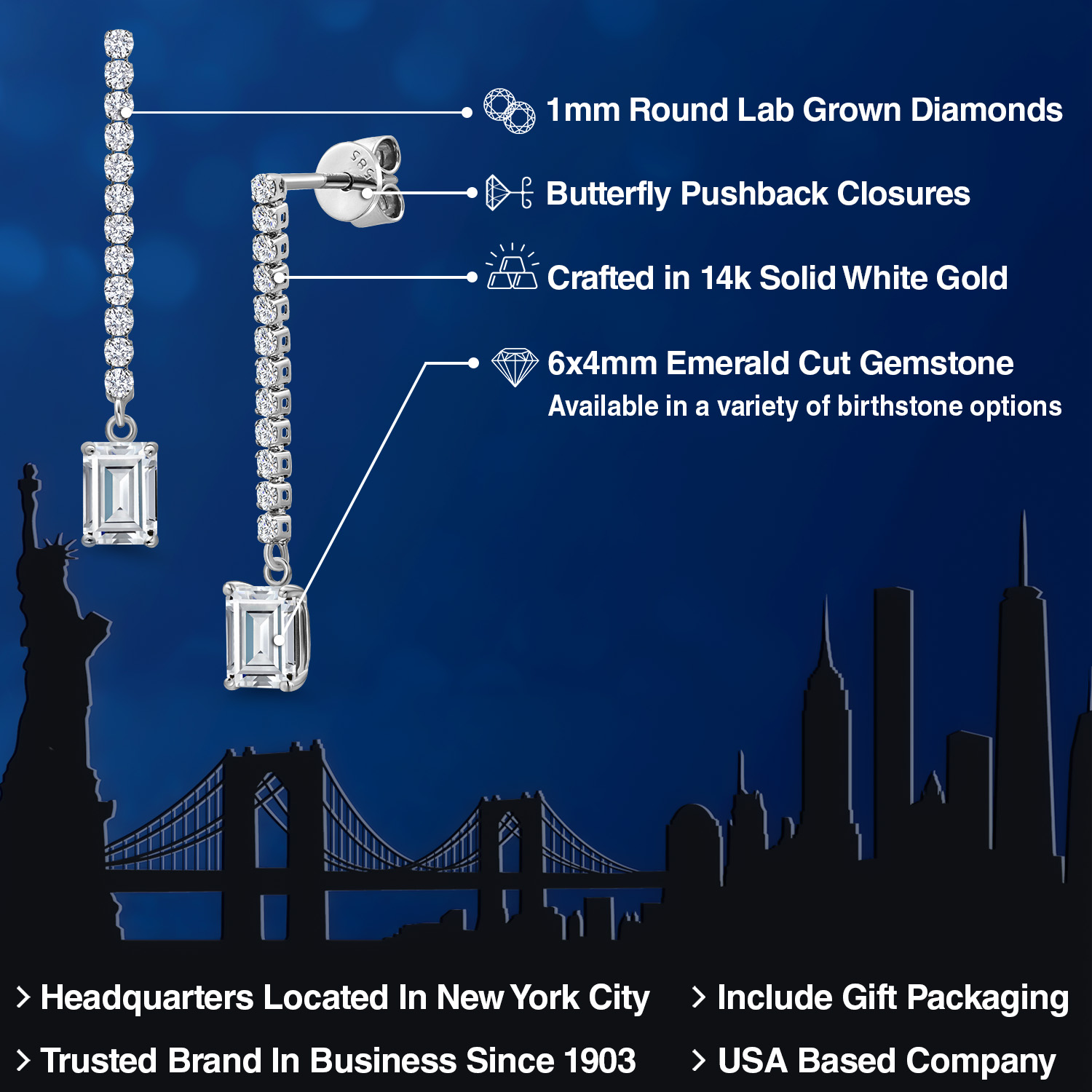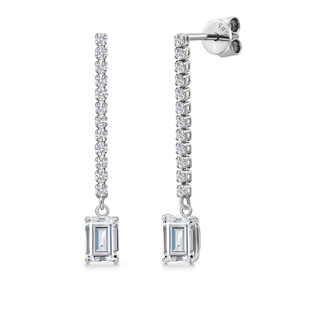 SPARKLING E-F COLOR LAB GROWN DIAMONDS: Adorned with high-quality 1MM lab-grown diamonds along the linear drop, these earrings offer exceptional sparkle and fire. The diamonds are carefully set to accentuate the emerald-cut gemstone, adding brilliance and enhancing the overall elegance of the design. Their placement along the chain creates a captivating shimmer with every movement.