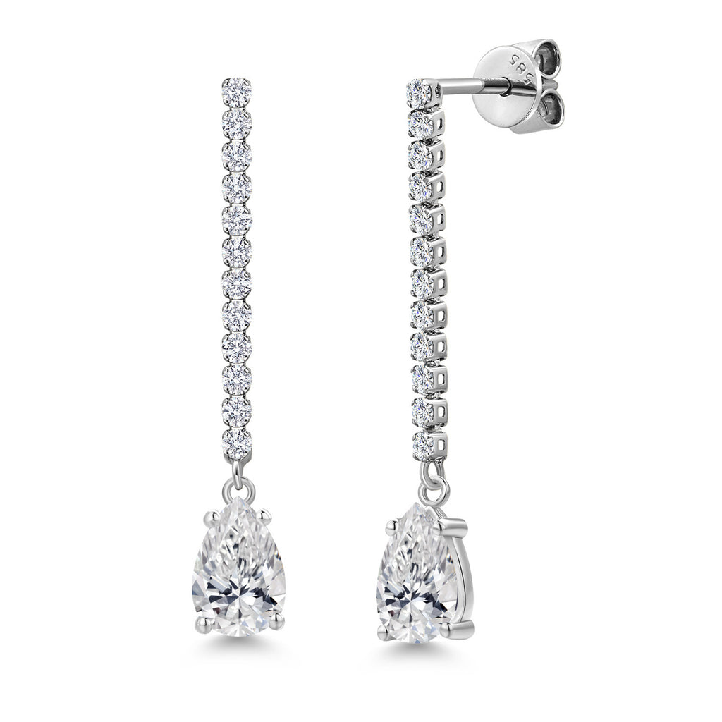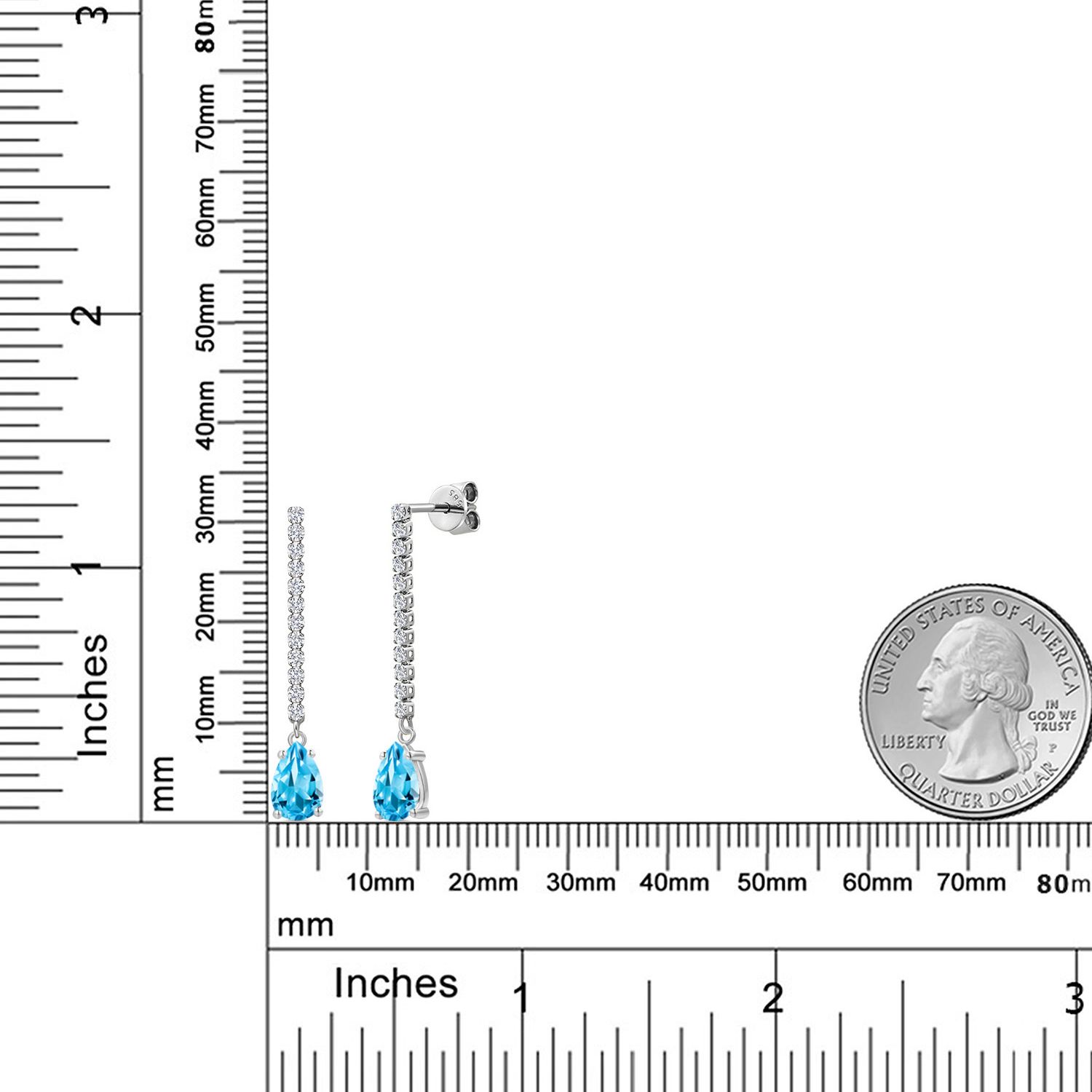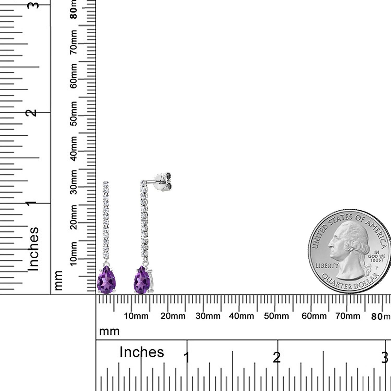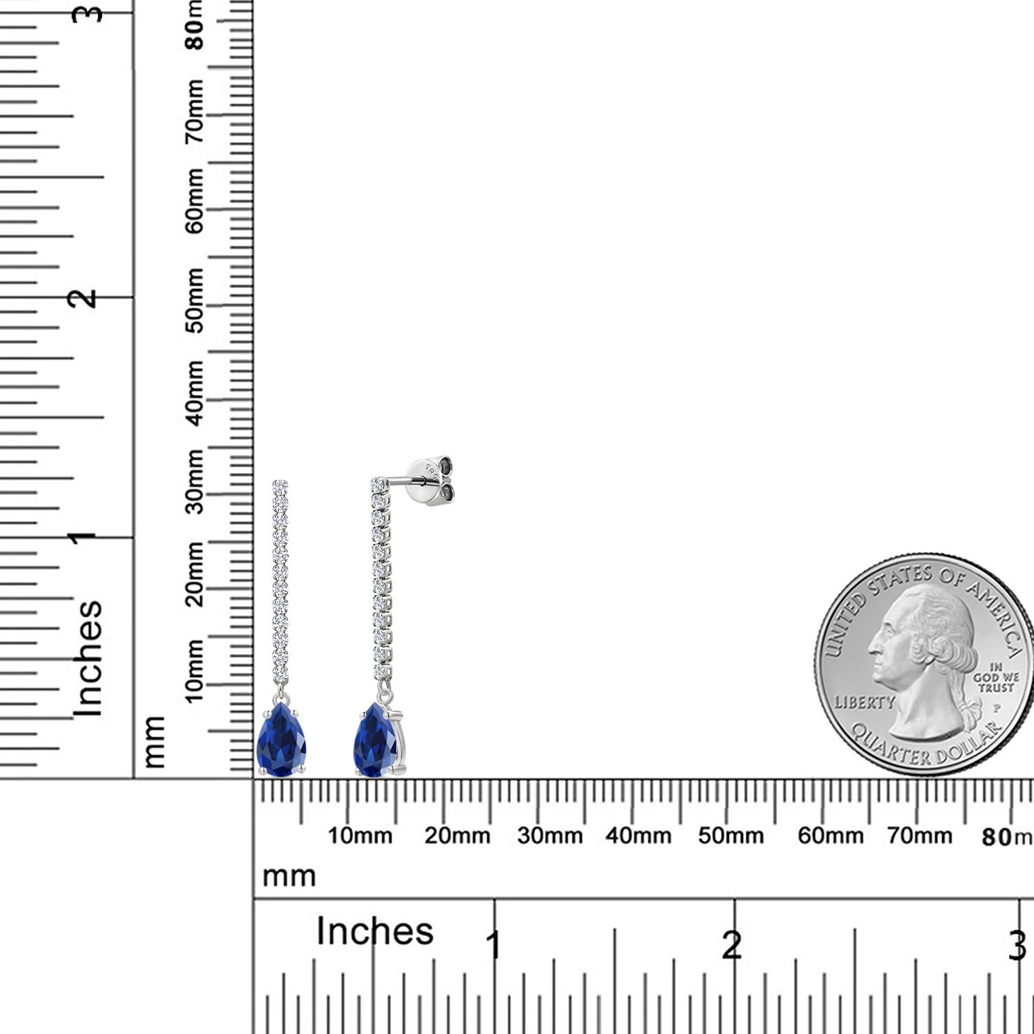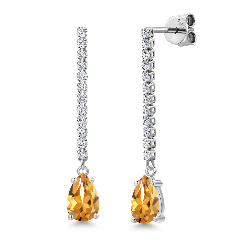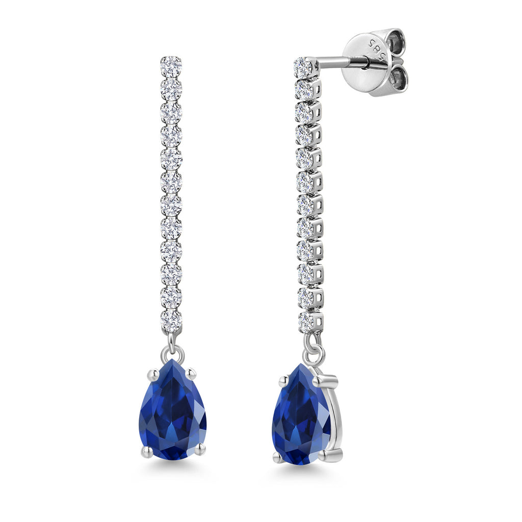 14K White Gold Gemstone Birthstone and White Lab Grown Diamond Long Liner Teardrop Dangle Earrings for Women | Pear Shape 8X5MM | White Gold Chain Drop Earrings