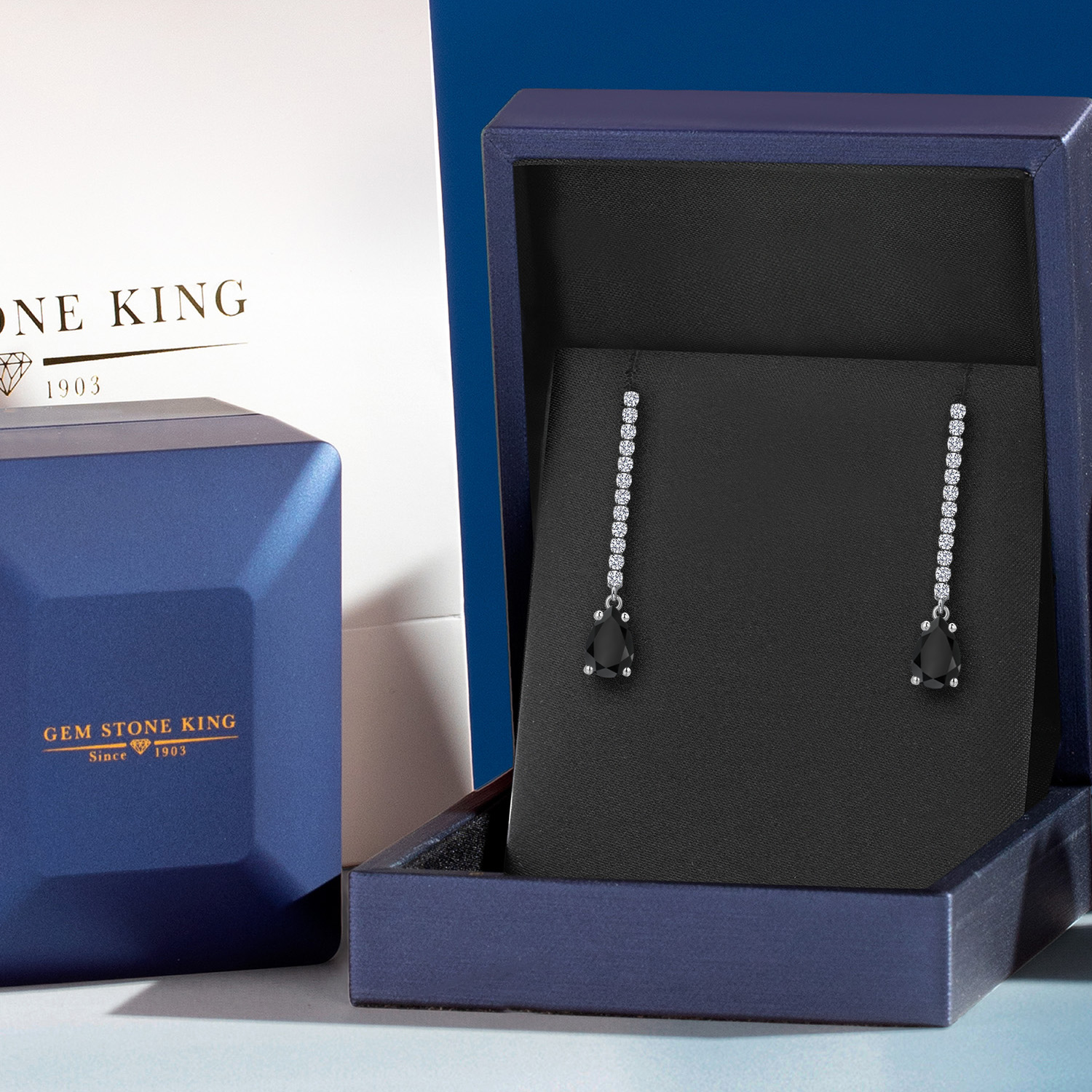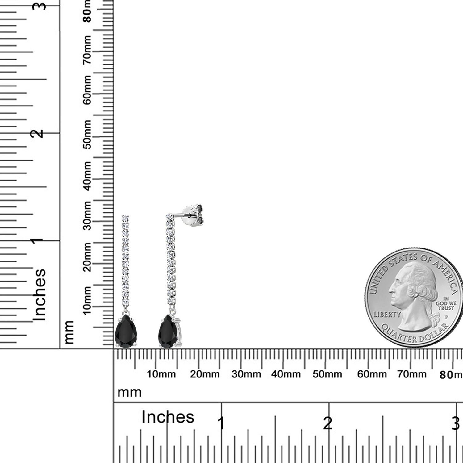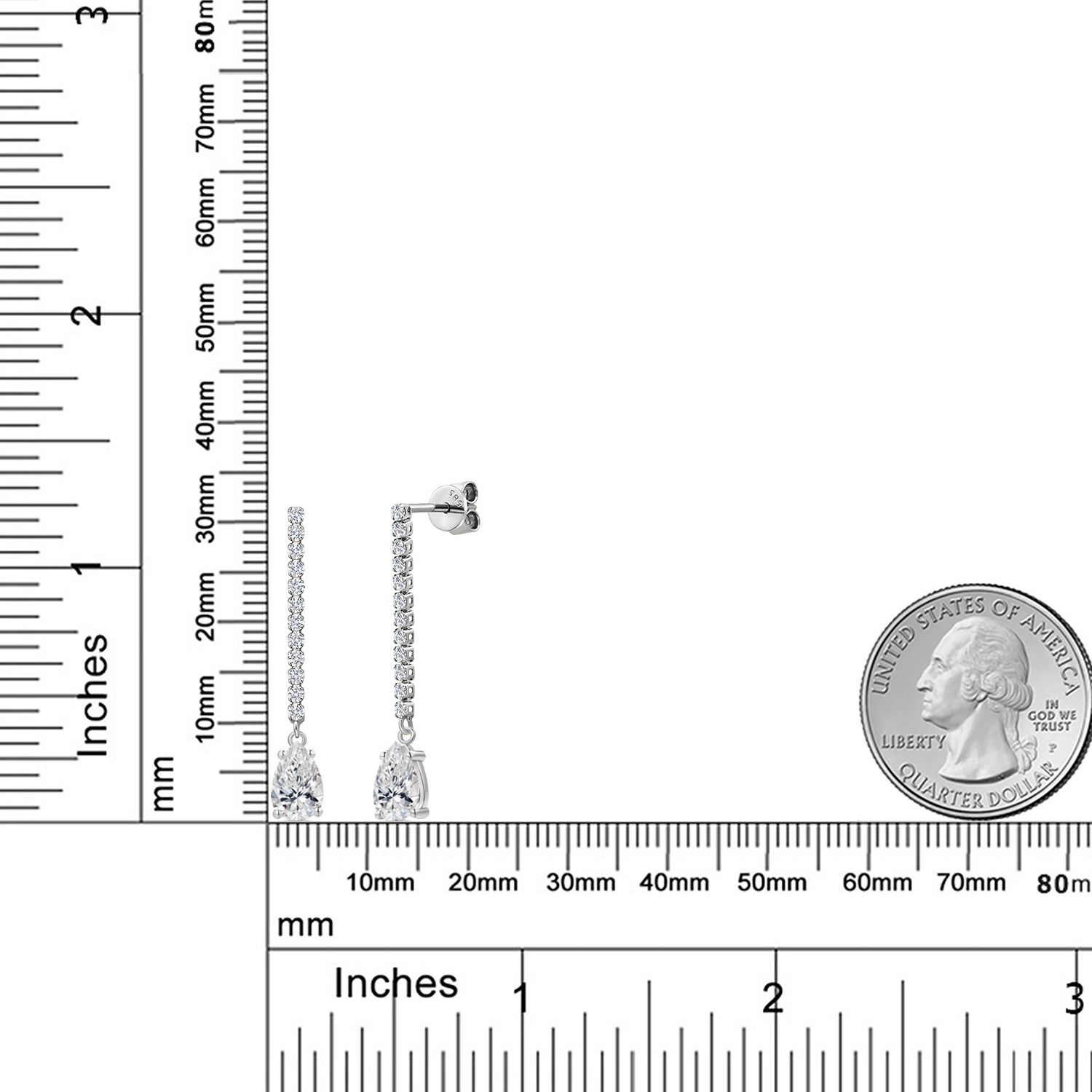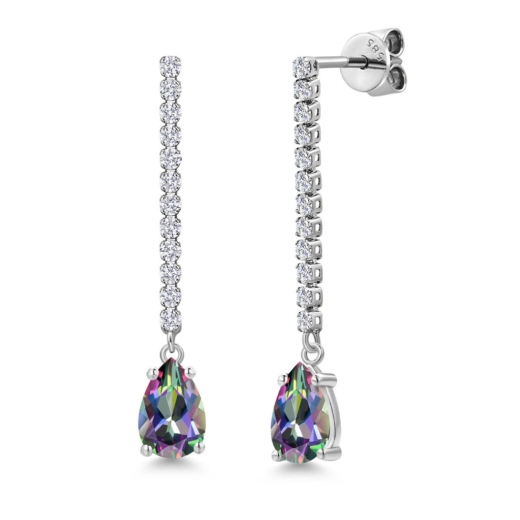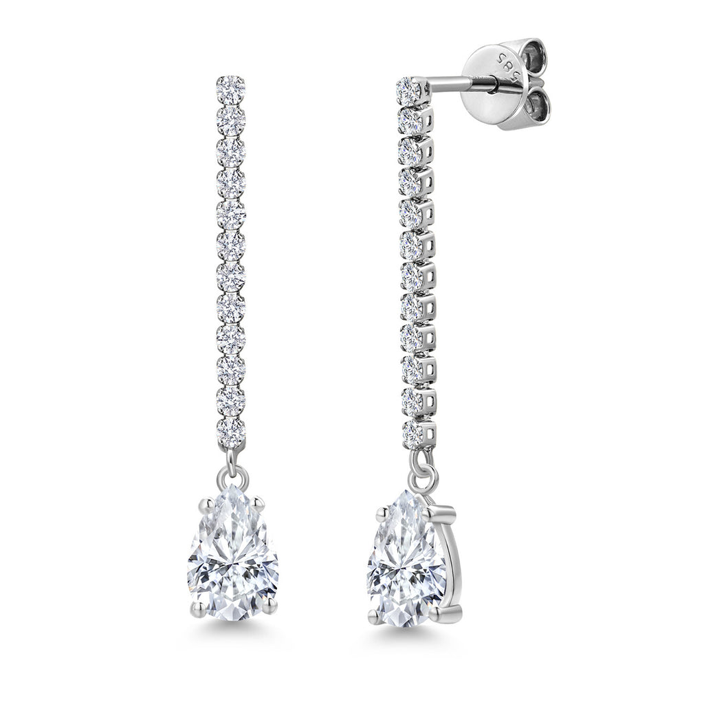 14K White Gold Gemstone Birthstone and White Lab Grown Diamond Long Liner Teardrop Dangle Earrings for Women | Pear Shape 8X5MM | White Gold Chain Drop Earrings