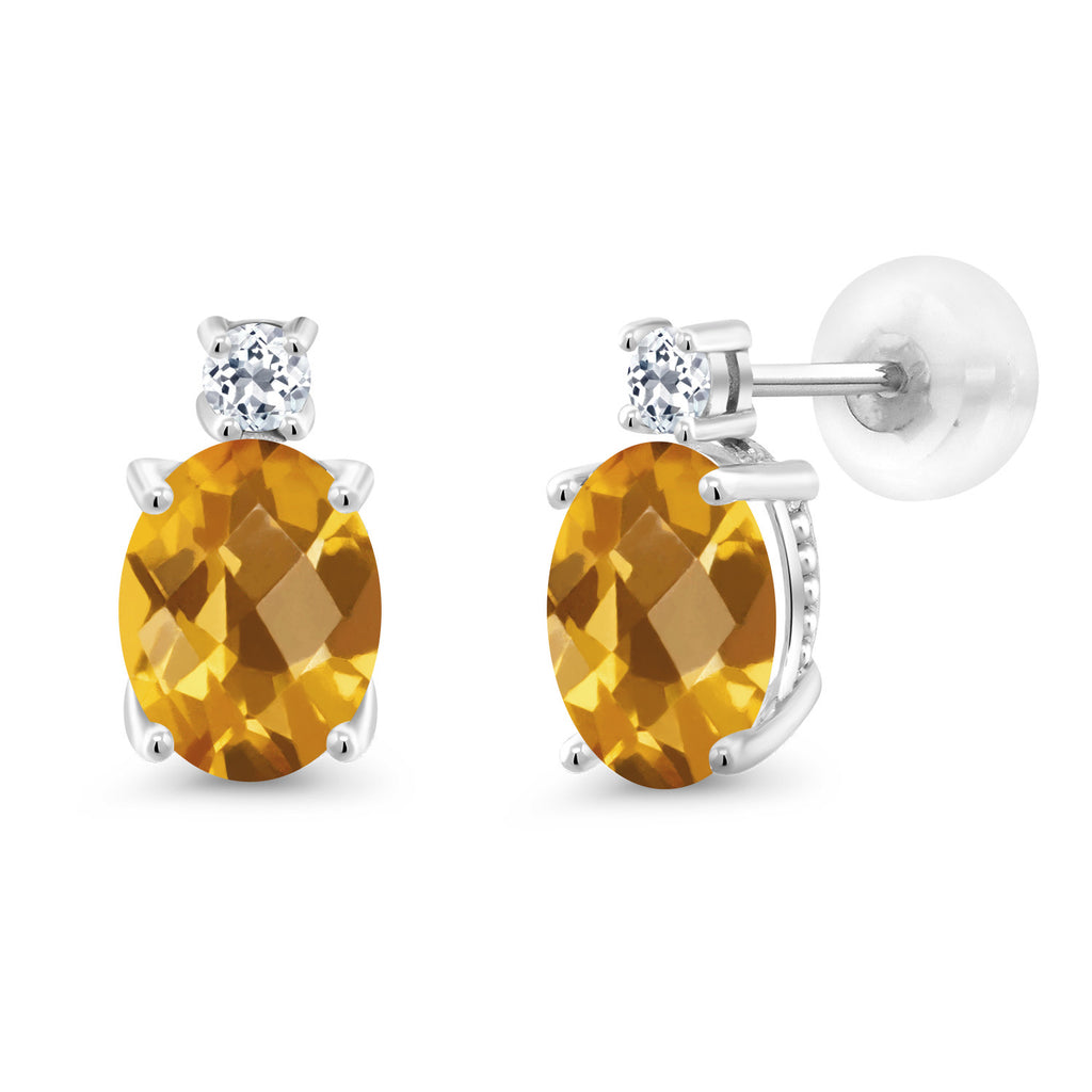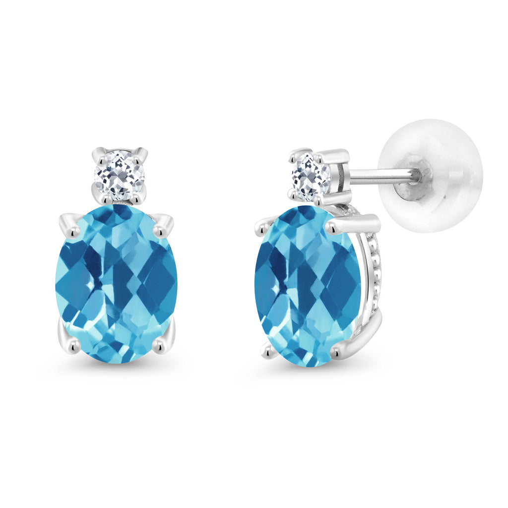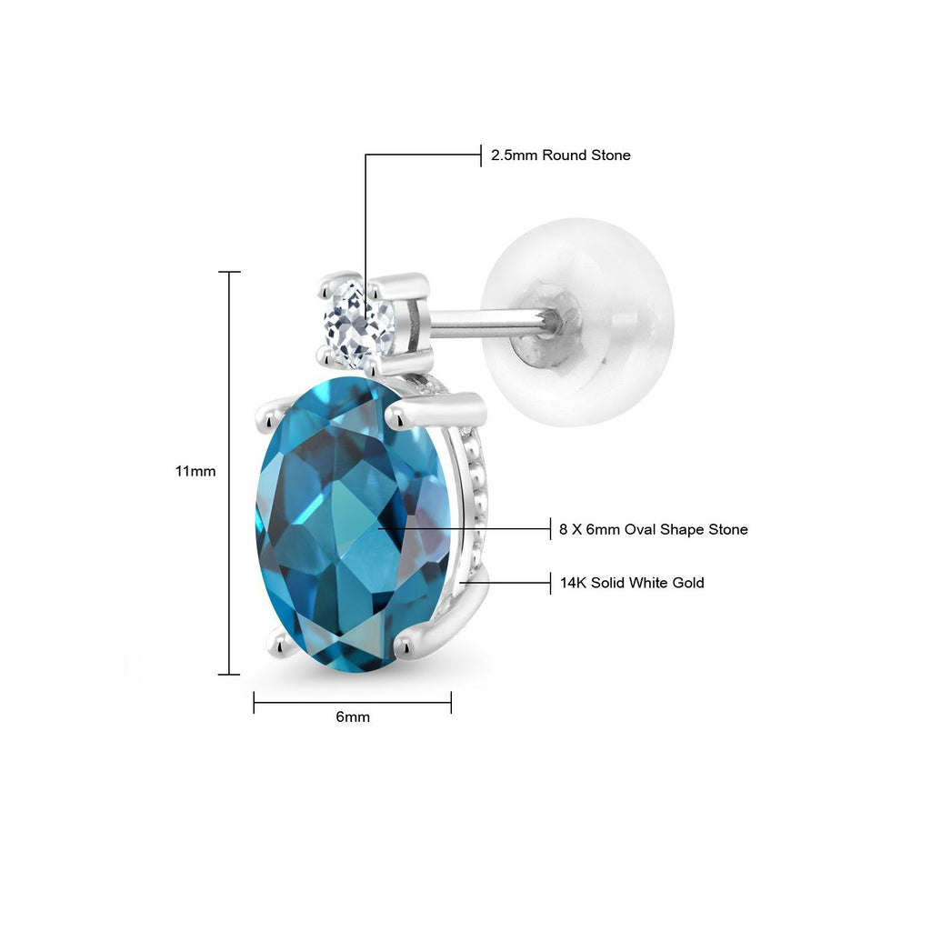 EXQUISITE GEMSTONE AND BIRTHSTONE COMBINATION: The 14K White Gold Earrings feature two striking stones, an oval 8X6MM gemstone, and a round 2.5MM white topaz, creating a unique two-stone design. Each gemstone boasts a distinct shape that accentuates its brilliance. The earrings also offer a choice of birthstones, allowing personalization for a more meaningful gift.