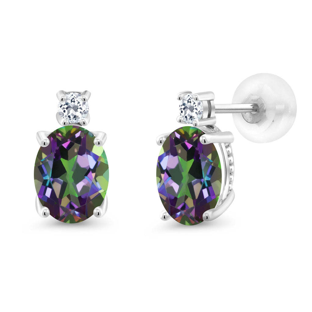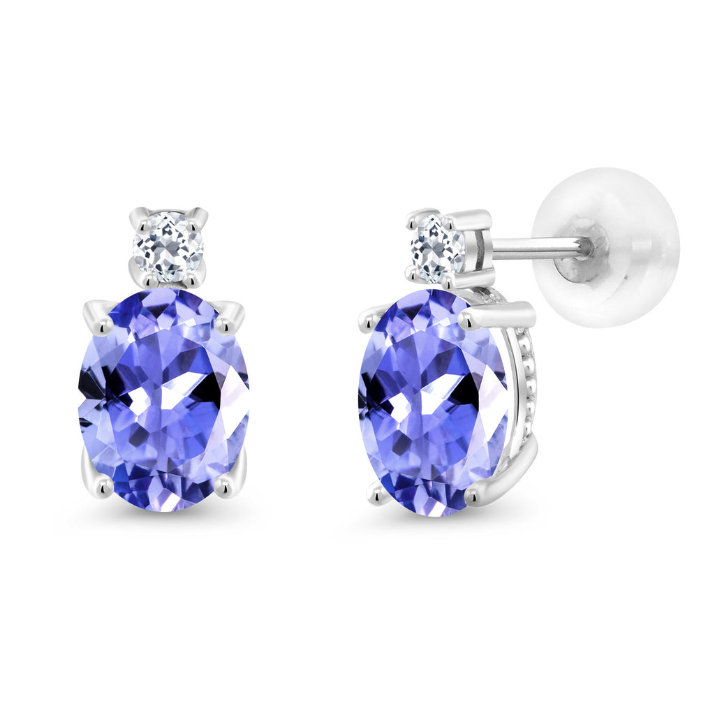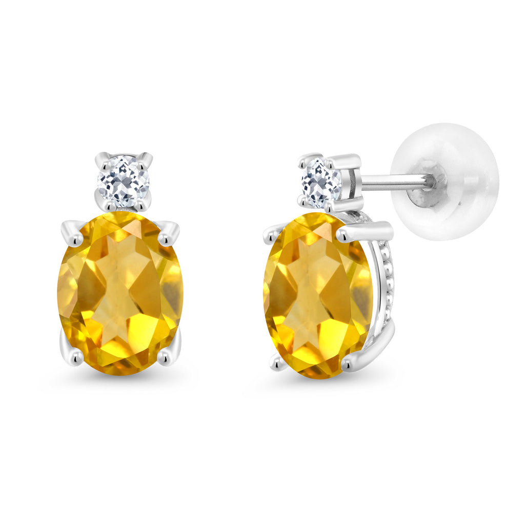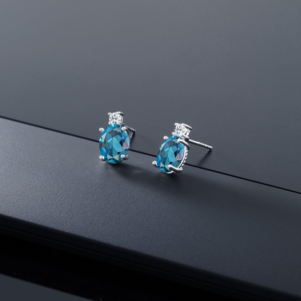 EXQUISITE GEMSTONE AND BIRTHSTONE COMBINATION: The 14K White Gold Earrings feature two striking stones, an oval 8X6MM gemstone, and a round 2.5MM white topaz, creating a unique two-stone design. Each gemstone boasts a distinct shape that accentuates its brilliance. The earrings also offer a choice of birthstones, allowing personalization for a more meaningful gift.