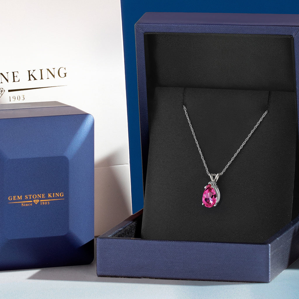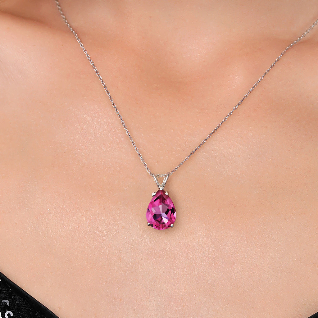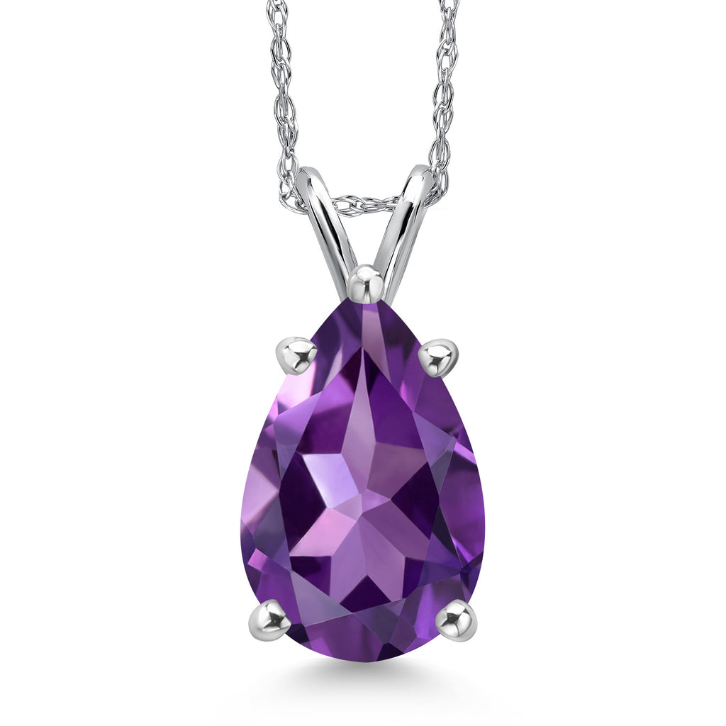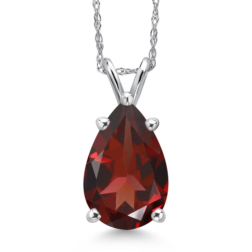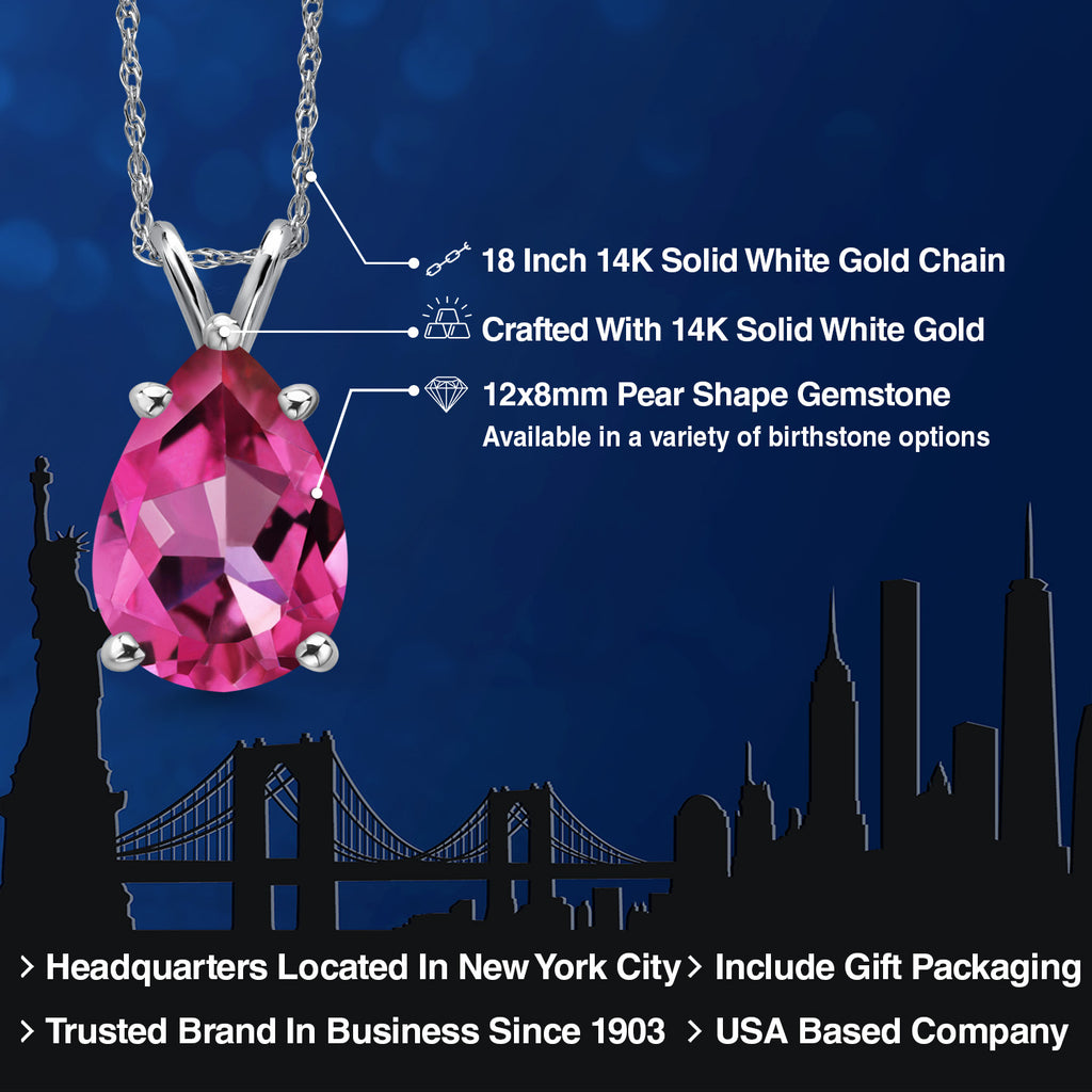 14K White Gold Gemstone Birthstone Teardrop Pendant Necklace for Women | Pear Shape 12X8MM | With 18 Inch Chain | Fine Jewelry Gifts for Her Mom Women Wife