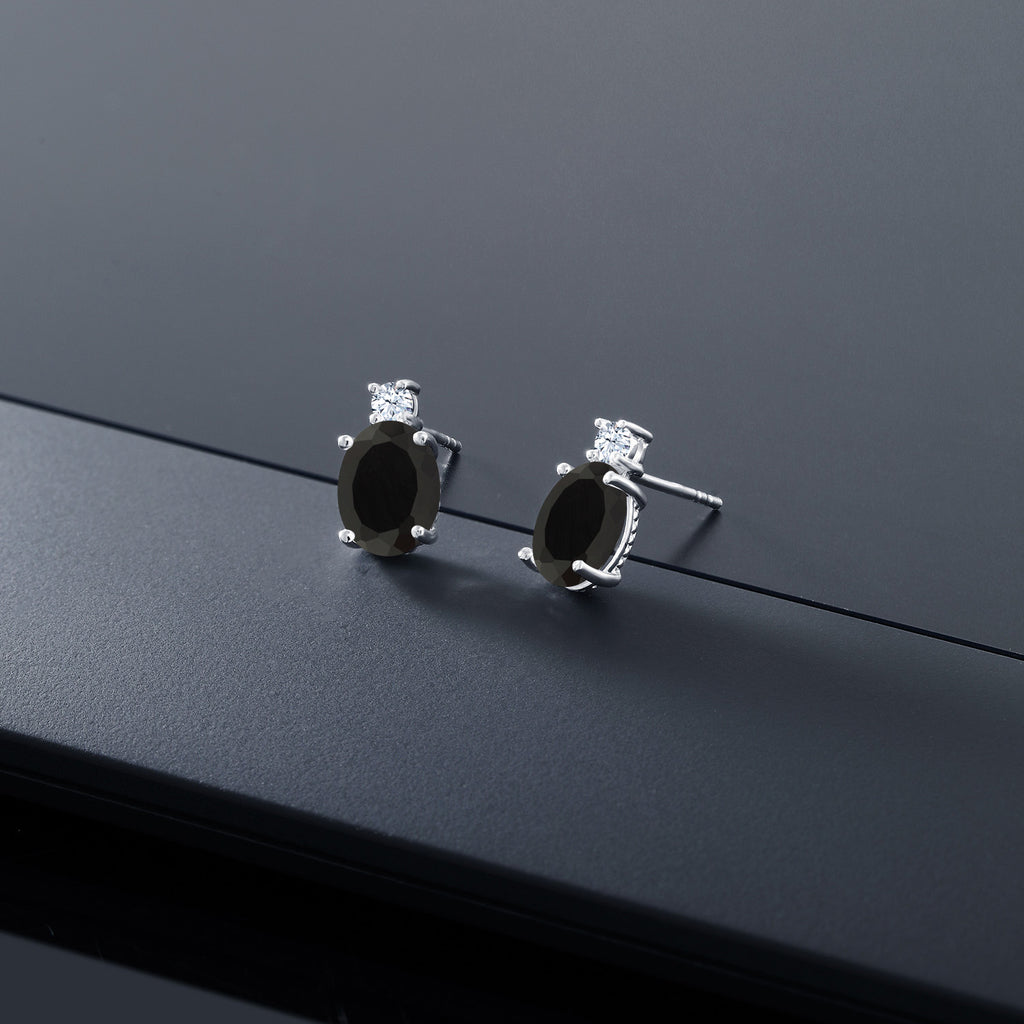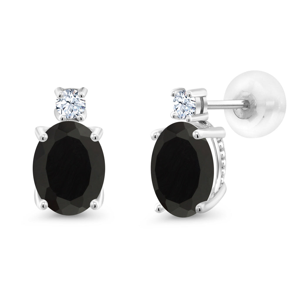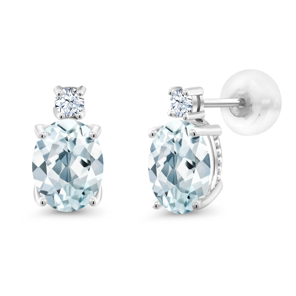 14K White Gold Gemstone Birthstone Stud Earrings For Women | Oval 8X6MM with Round 2.5MM Accents | Elegant Two-Stone Design | Classic Fine Jewelry Earrings