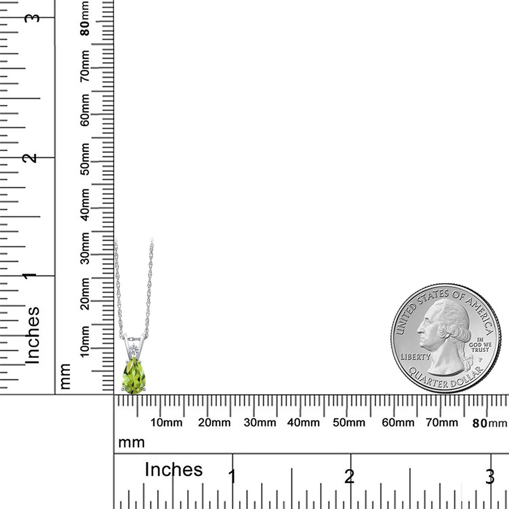 14K White Gold Green Peridot and Lab Grown Diamond Pendant Necklace for Women | 0.96 Cttw | Gemstone August Birthstone | Pear Shape 8X5MM | With 18 Inch Chain