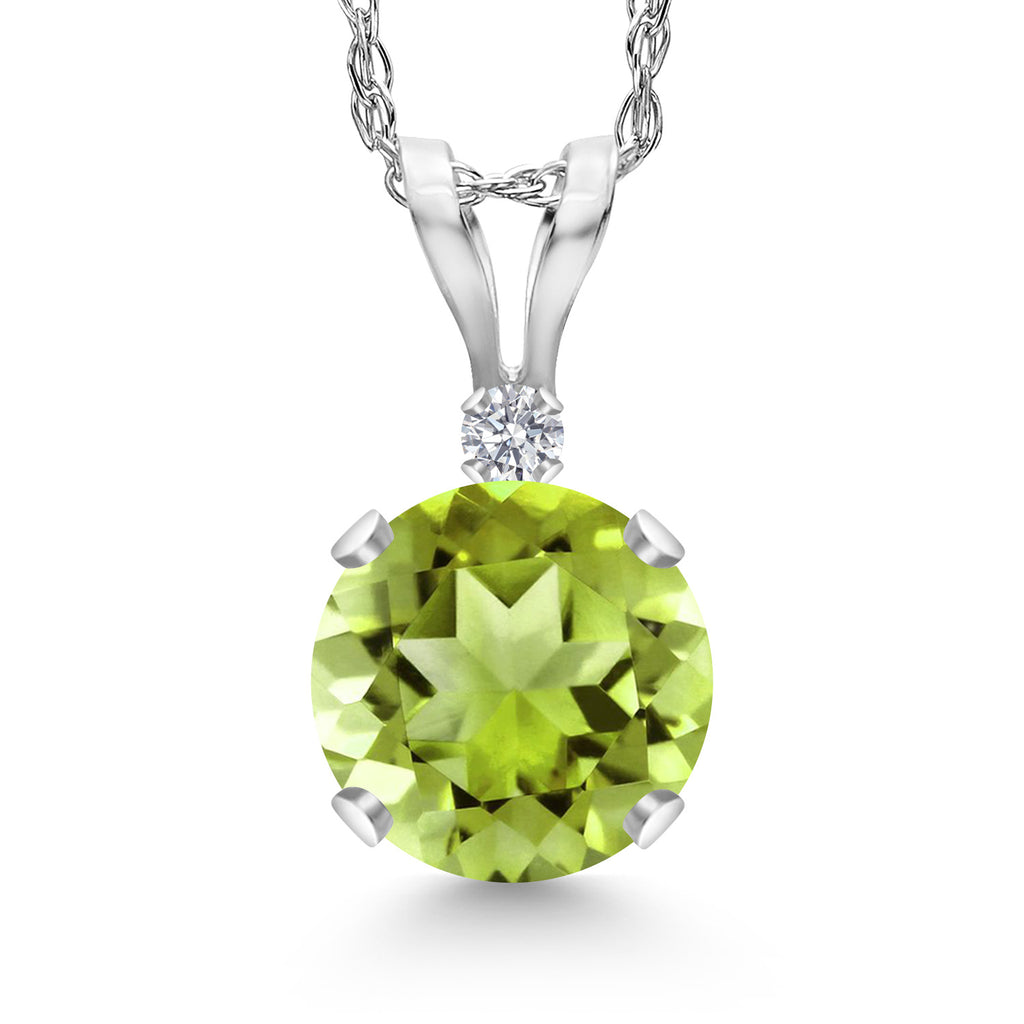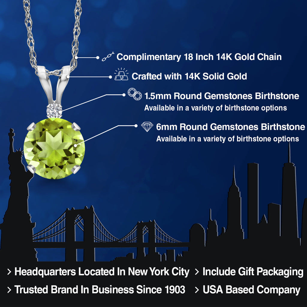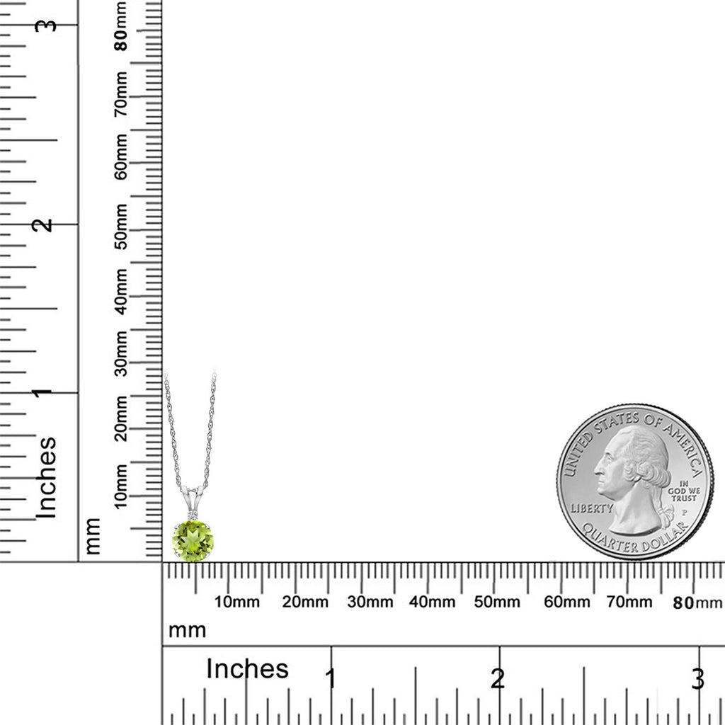 14K White Gold Green Peridot and Lab Grown Diamond Pendant Necklace for Women | 1.02 Cttw | Gemstone August Birthstone | Round 6MM | With 18 Inch Chain