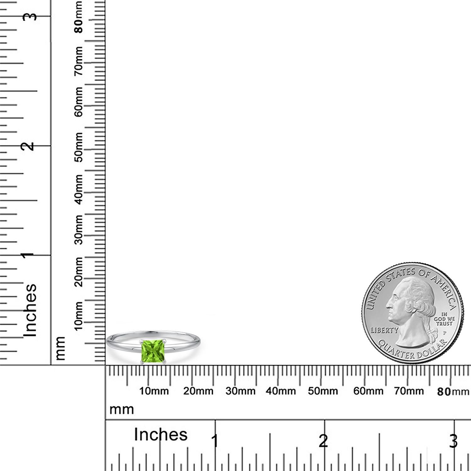 MEASUREMENTS: 5x5mm Princess Green Peridot. Total Carat Weight is 0.73 cttw