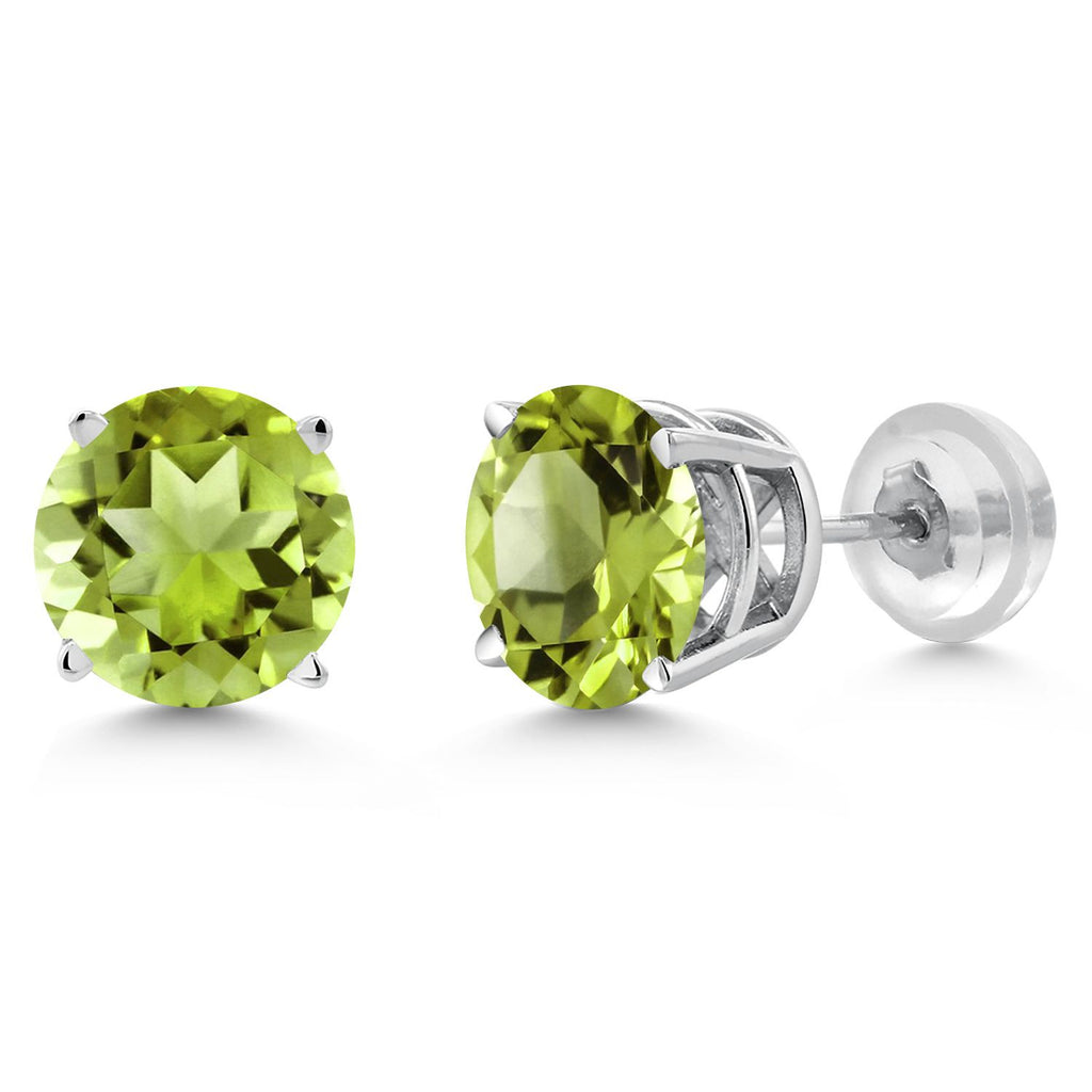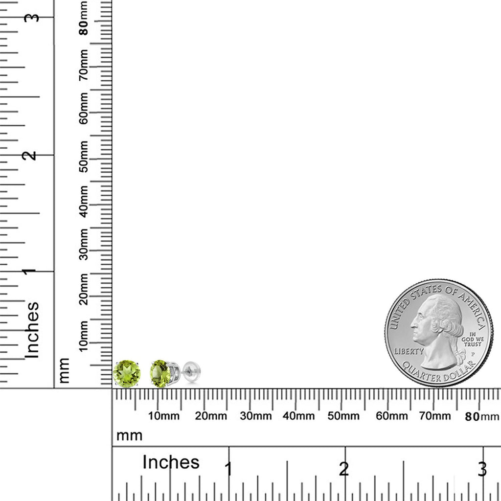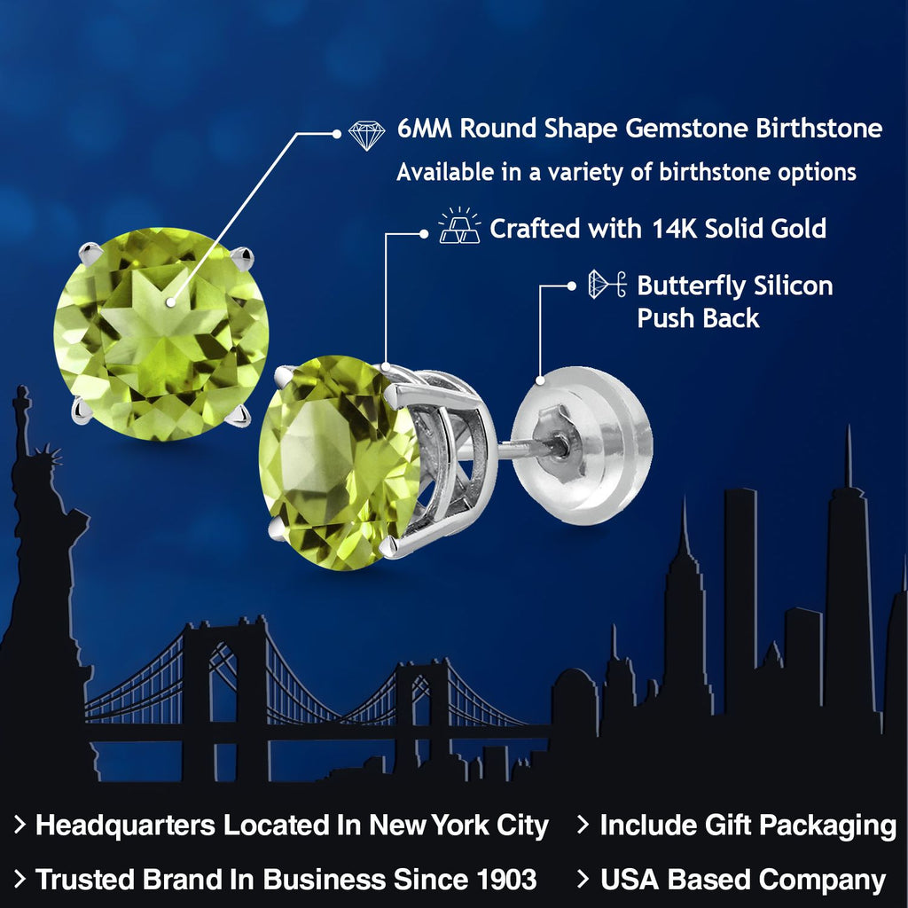 14K White Gold Green Peridot Stud Earrings For Women Men | 1.70 Cttw | Gemstone Birthstone | Round 6MM
