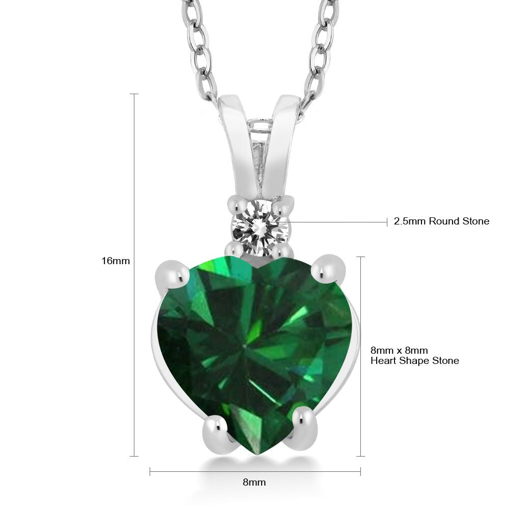 Elegant 1.5 Cttw Heart-Shaped Emerald & Diamond Pendant – This stunning 14K white gold necklace features a vibrant 8MM heart-shaped green simulated emerald, beautifully accented with a sparkling 2.5MM white diamond, symbolizing love, passion, and elegance.