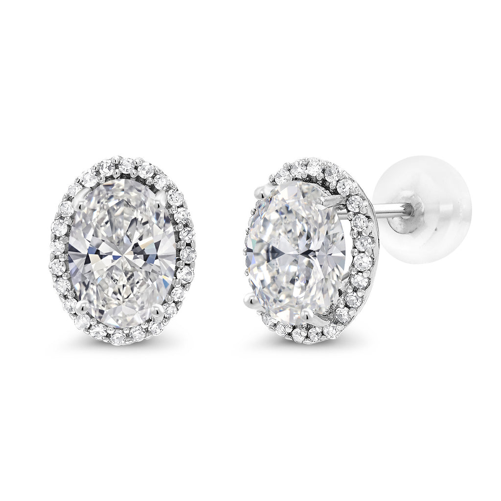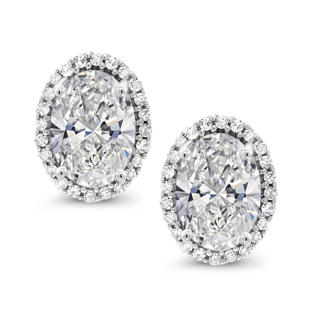 Exquisite 2.5 Cttw Lab Grown Diamond Halo Stud Earrings – These stunning 14K white gold earrings feature 2.0 Ct oval-cut IGI-certified lab grown diamonds (1 ct each center diamond), surrounded by a dazzling halo of accent diamonds, offering maximum brilliance and elegance.