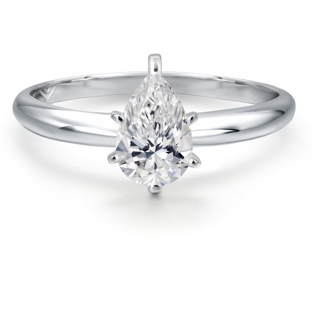 ELEGANT 14K WHITE GOLD SETTING WITH CLASSIC SOLITAIRE DESIGN: Meticulously crafted in premium 14K white gold, this ring offers both durability and a radiant finish that enhances the diamond's natural sparkle. The sleek, polished band complements the pear-shaped diamond, gracefully cradled in a classic solitaire setting. Its clean lines and refined design enhance the diamond's brilliance, making this piece a perfect symbol of elegance and lasting beauty for life’s most memorable moments.