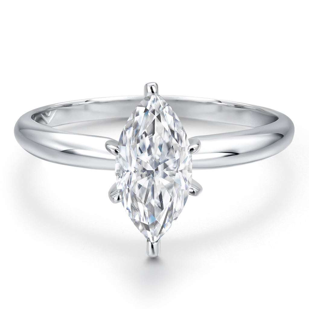EXQUISITE BRILLIANCE: Elevate your engagement with this stunning solitaire ring featuring a 1 Ct IGI-certified lab-grown diamond in a marquise cut, set in luxurious 14K white gold, radiating elegance and sophistication.