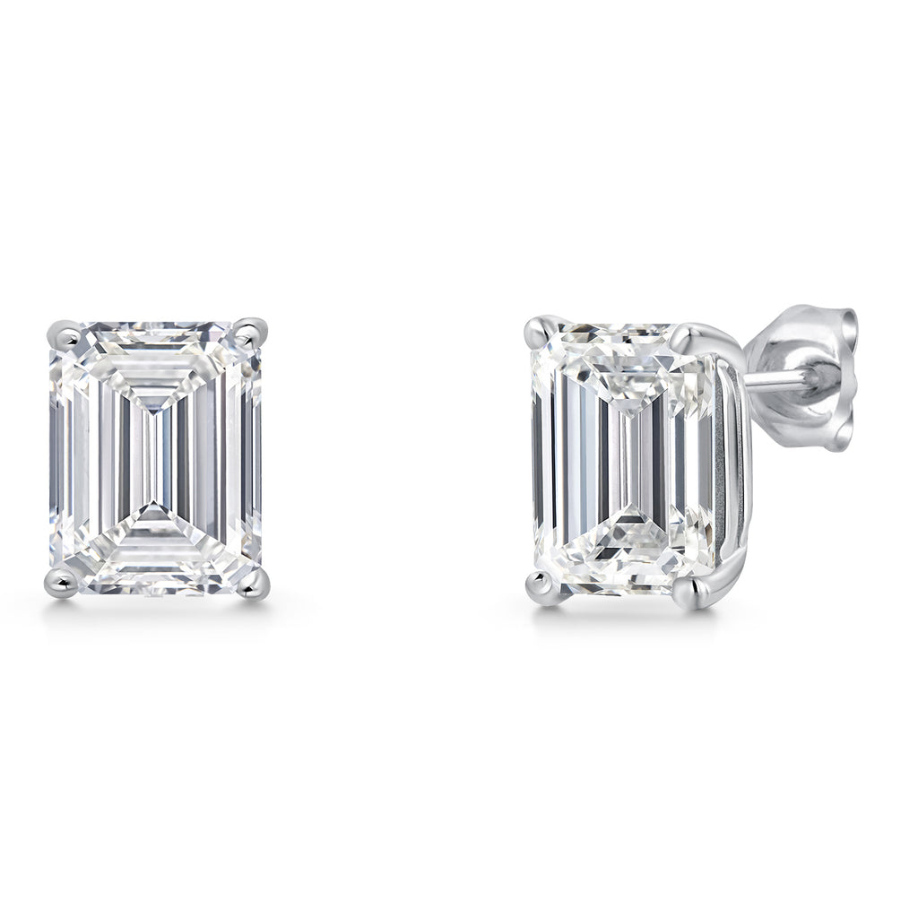 TIMELESS DESIGN: Featuring elegant emerald cut 9x7MM diamonds in a classic basket setting, these earrings provide a timeless and sophisticated look, perfect for any occasion.