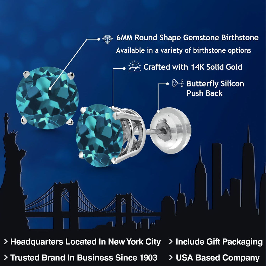 CLASSIC LONDON BLUE TOPAZ STUD DESIGN: These timeless stud earrings feature 6MM round-cut London Blue Topaz gemstones totaling 2.20 carats. The rich blue hue symbolizes calm, clarity, and emotional strength, making them a perfect everyday statement