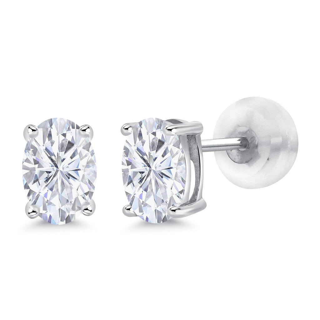 MESMERIZING MOISSANITE BRILLIANCE: Elevate your elegance with the exceptional sparkle and brilliance of white moissanite. These stud earrings feature a total carat weight of 1.00 Cttw, with stunning oval-cut 6x4mm moissanite stones in each earring. Moissanite rivals the brilliance of diamonds, offering unmatched sparkle.