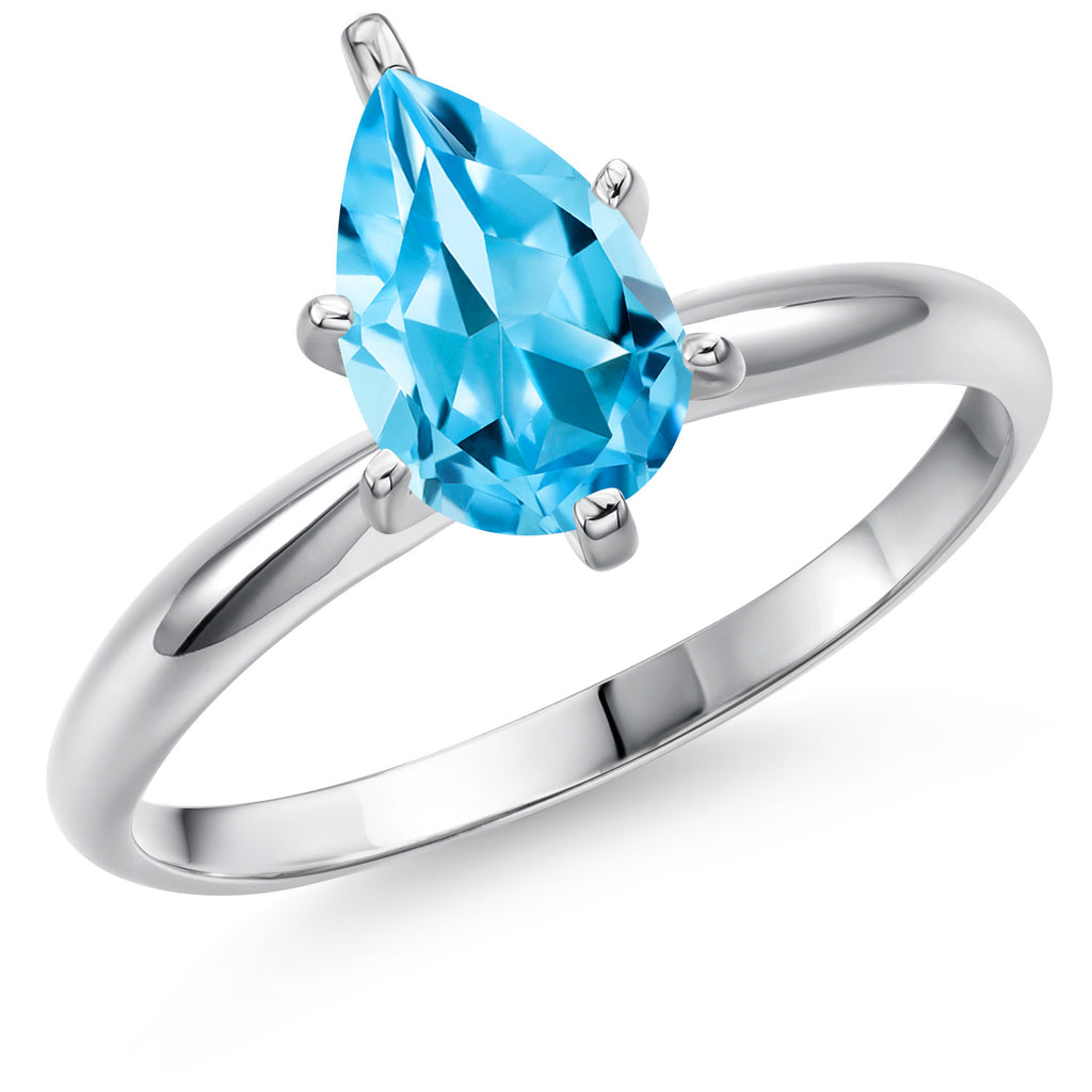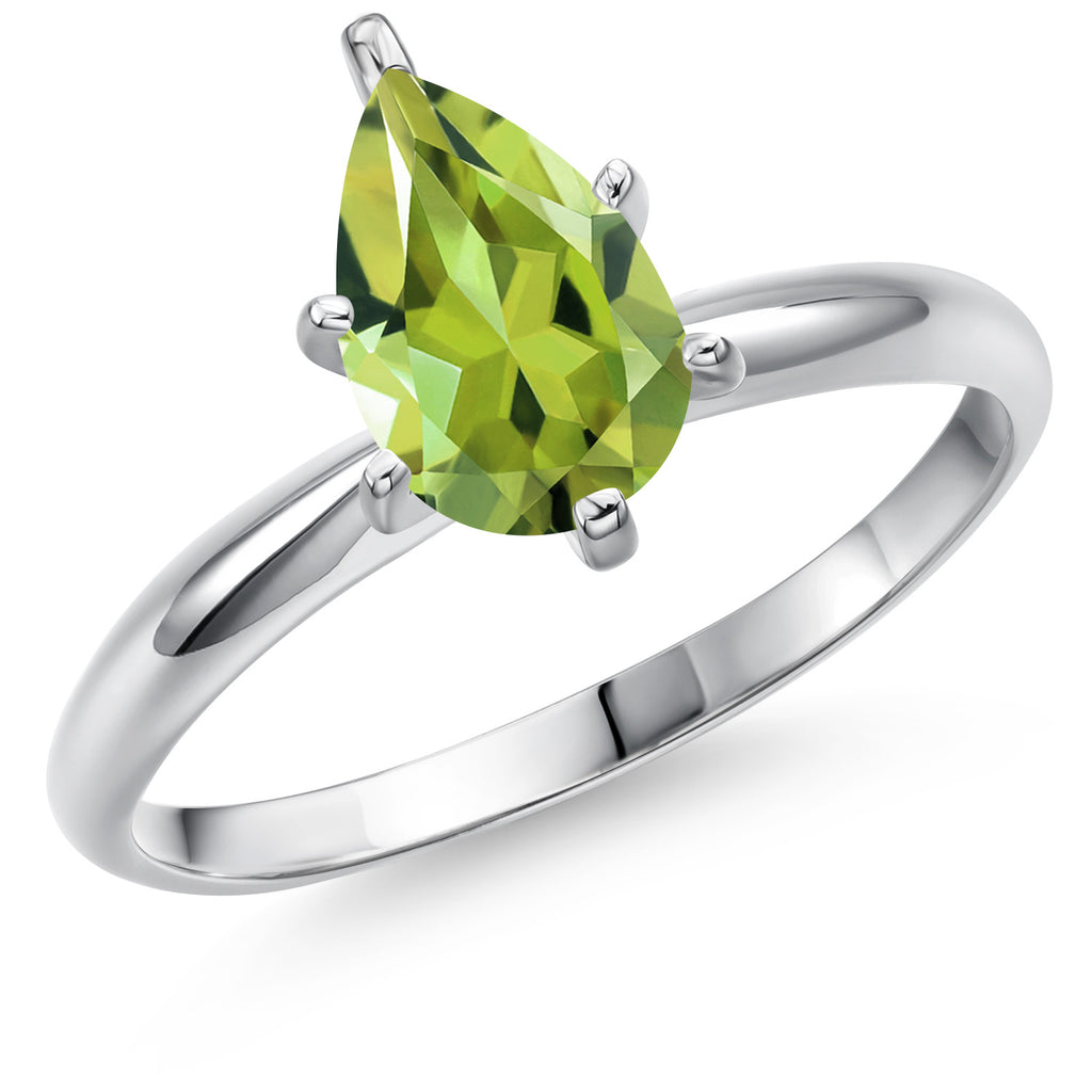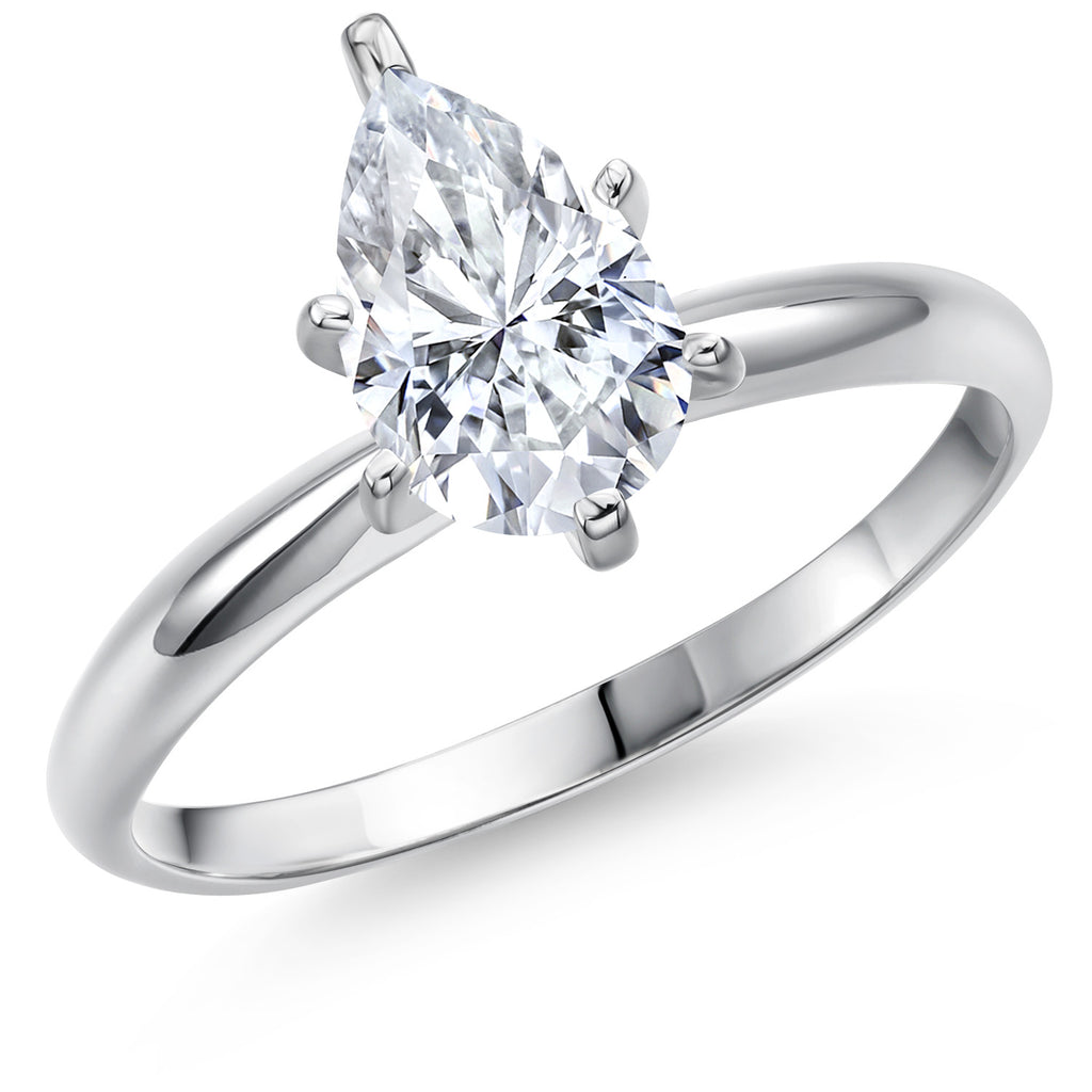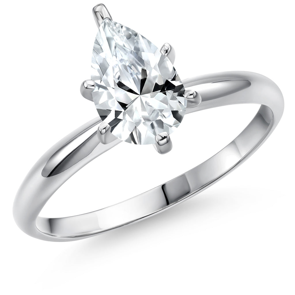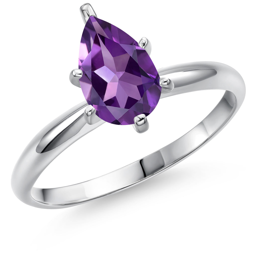 14K White Gold Pear Shape 9X6MM Gemstone Birthstone Solitaire Engagement Ring | Wedding Anniversary Promise Gold Ring For Women | Available In Size 5, 6, 7, 8, 9