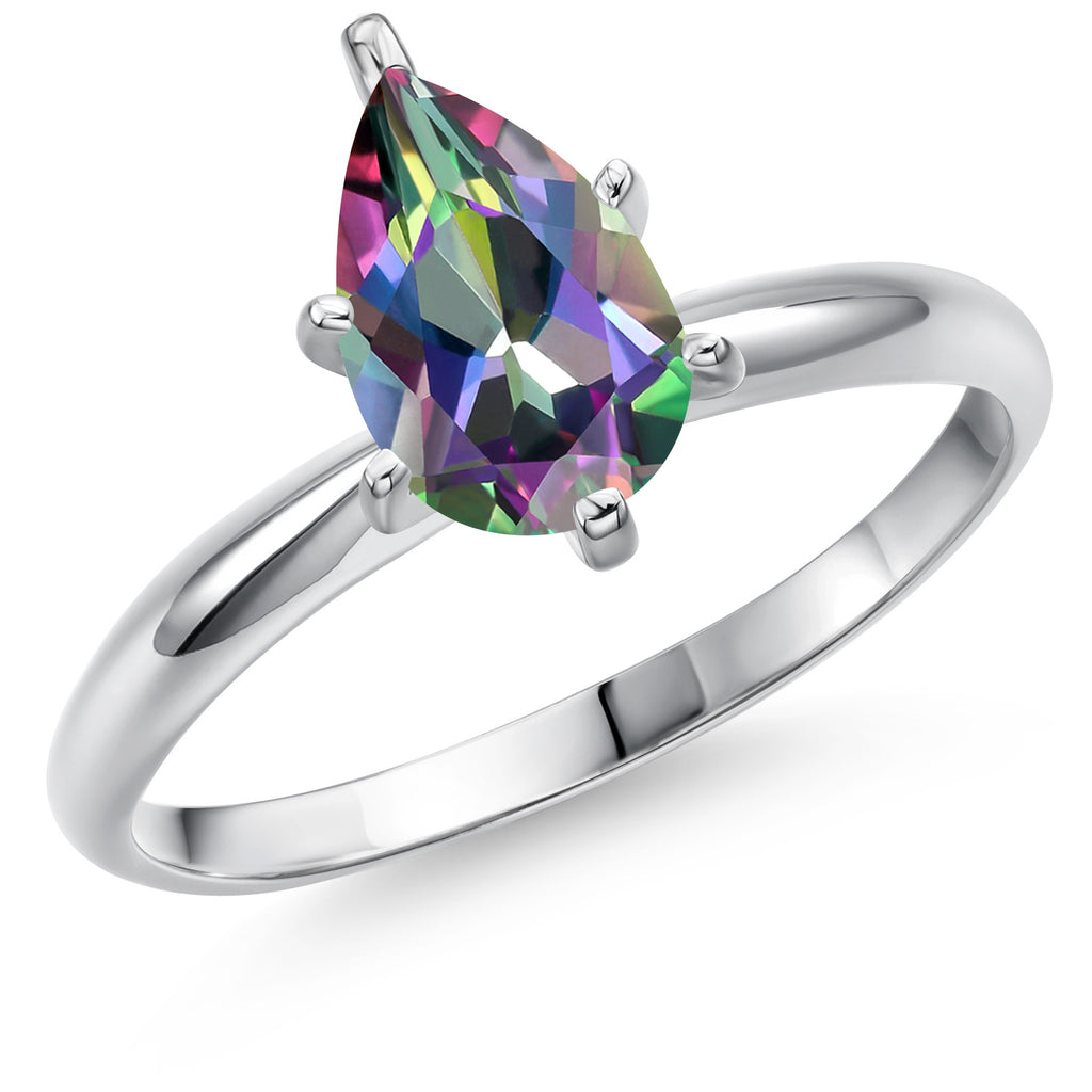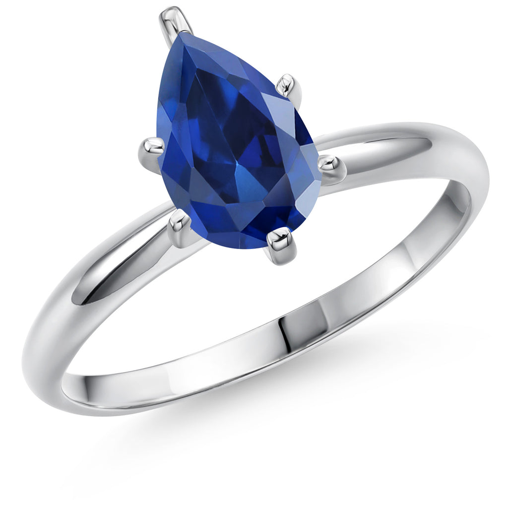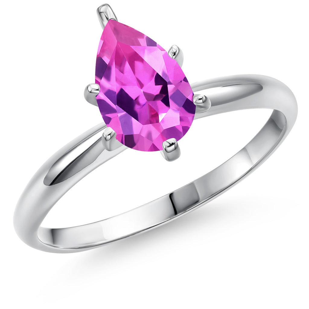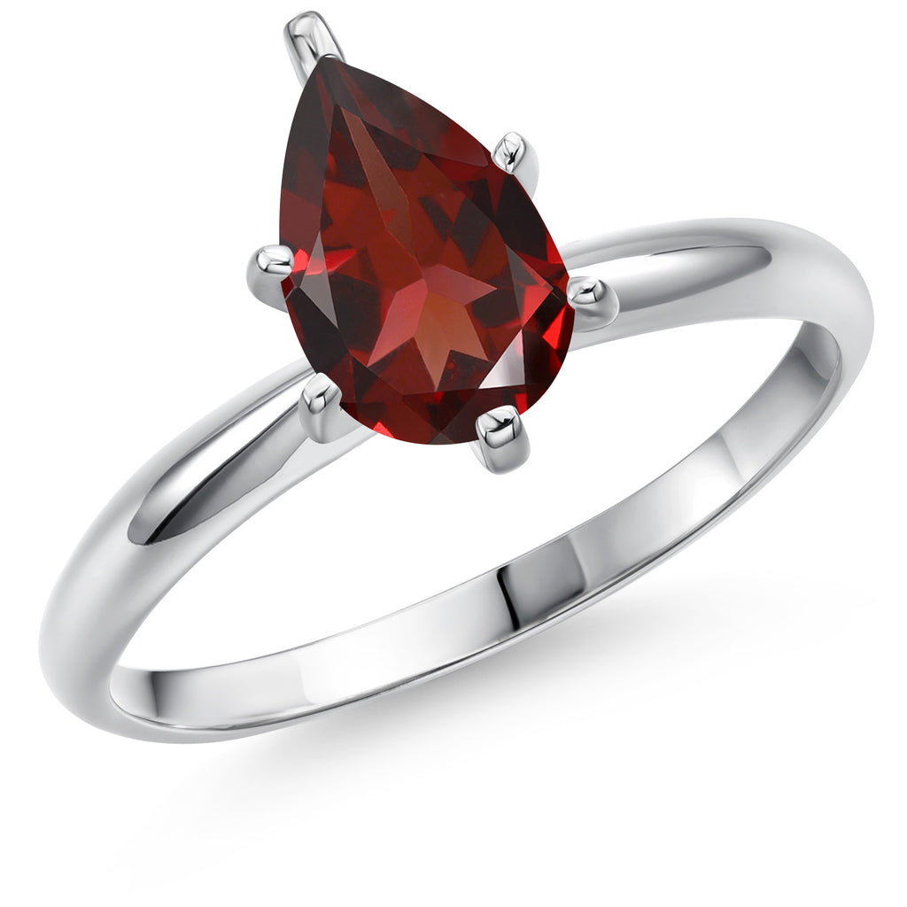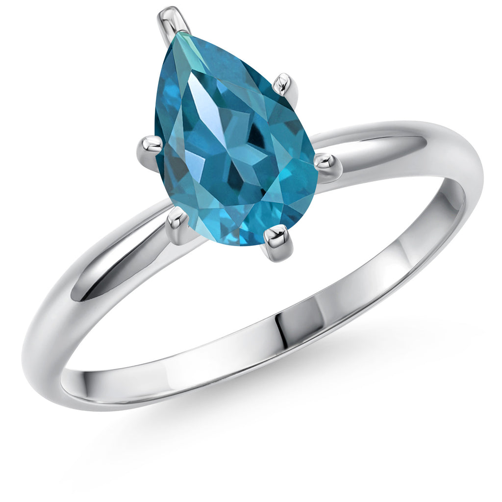 14K White Gold Pear Shape 9X6MM Gemstone Birthstone Solitaire Engagement Ring | Wedding Anniversary Promise Gold Ring For Women | Available In Size 5, 6, 7, 8, 9