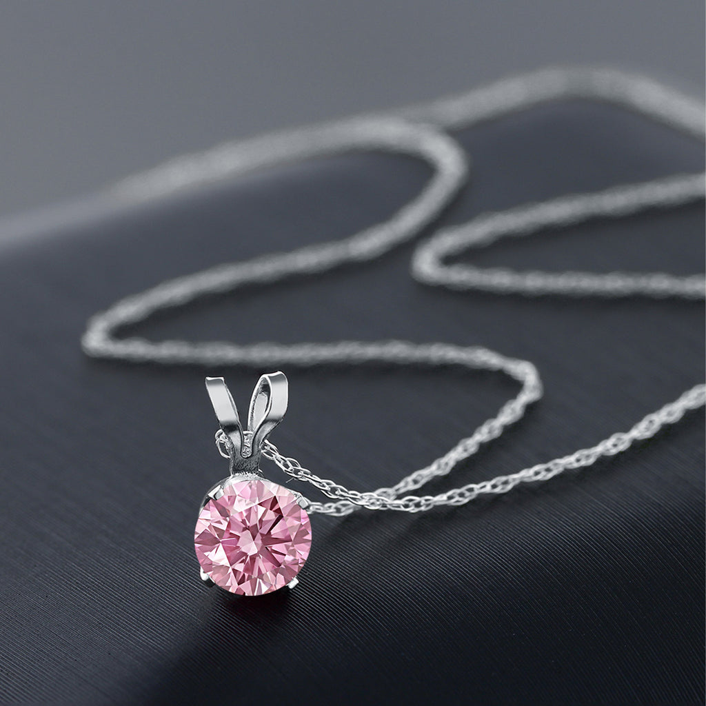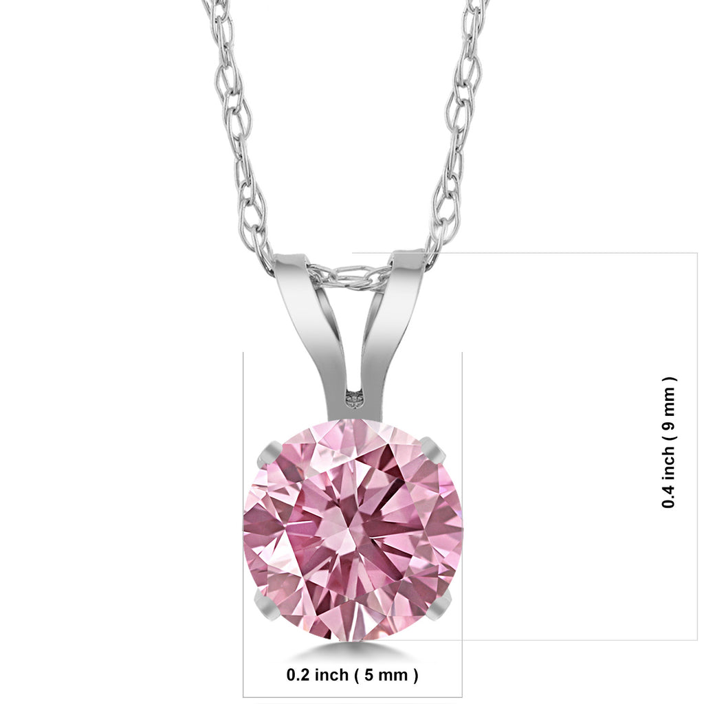 ELEGANT 14K WHITE GOLD WITH STUNNING PINK LAB GROWN DIAMOND: This pendant features a 0.50 Cttw round 5MM pink lab grown diamond, set in solid 14K white gold, offering a timeless and sophisticated look.