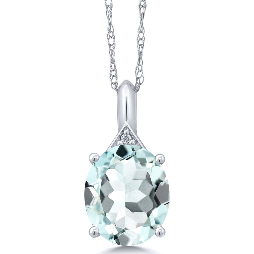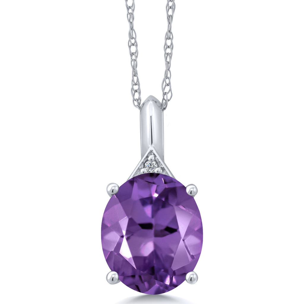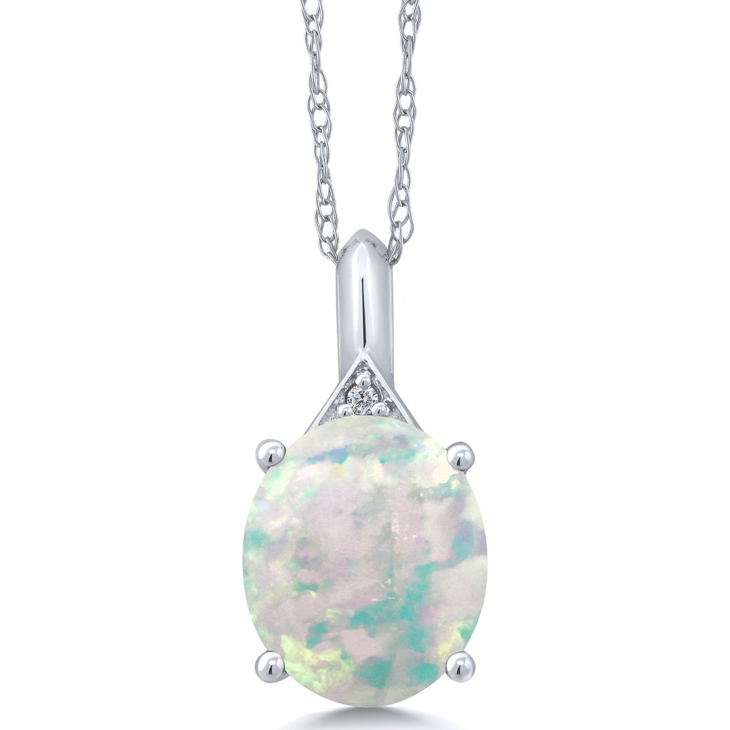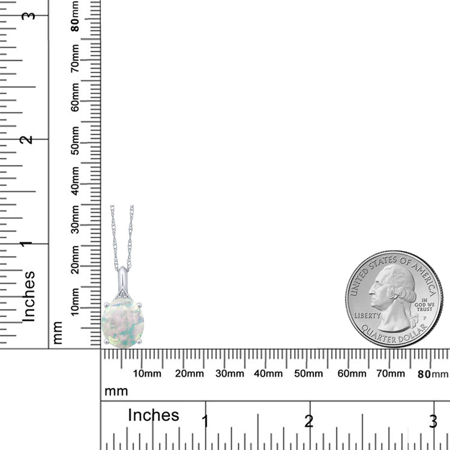 14K White Gold Oval Gemstone Birthstone and White Diamond Necklace | Oval 12X10MM | White Gold Pendant Necklace For Women | 18 Inch Chain | Fine Jewelry Gifts for Her Mom Women Wife