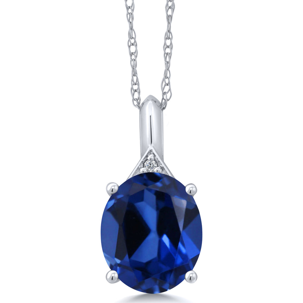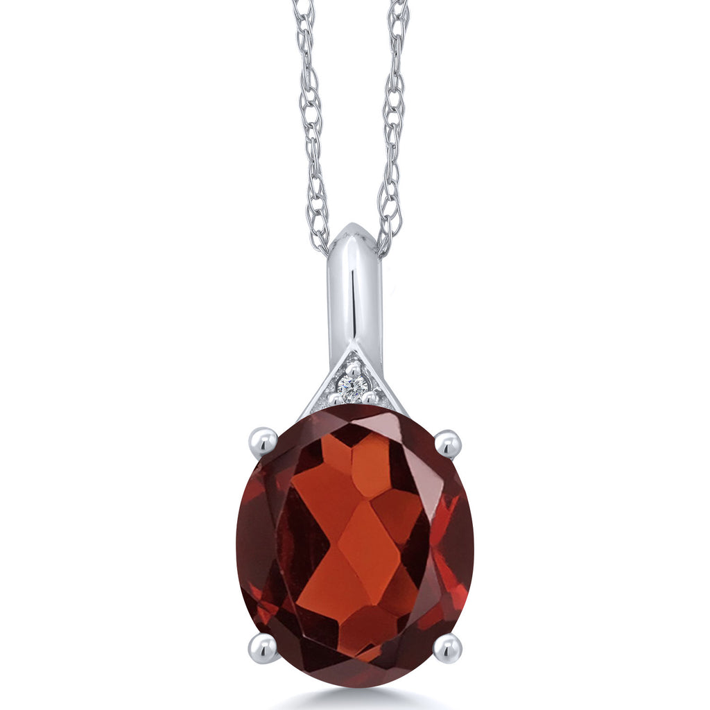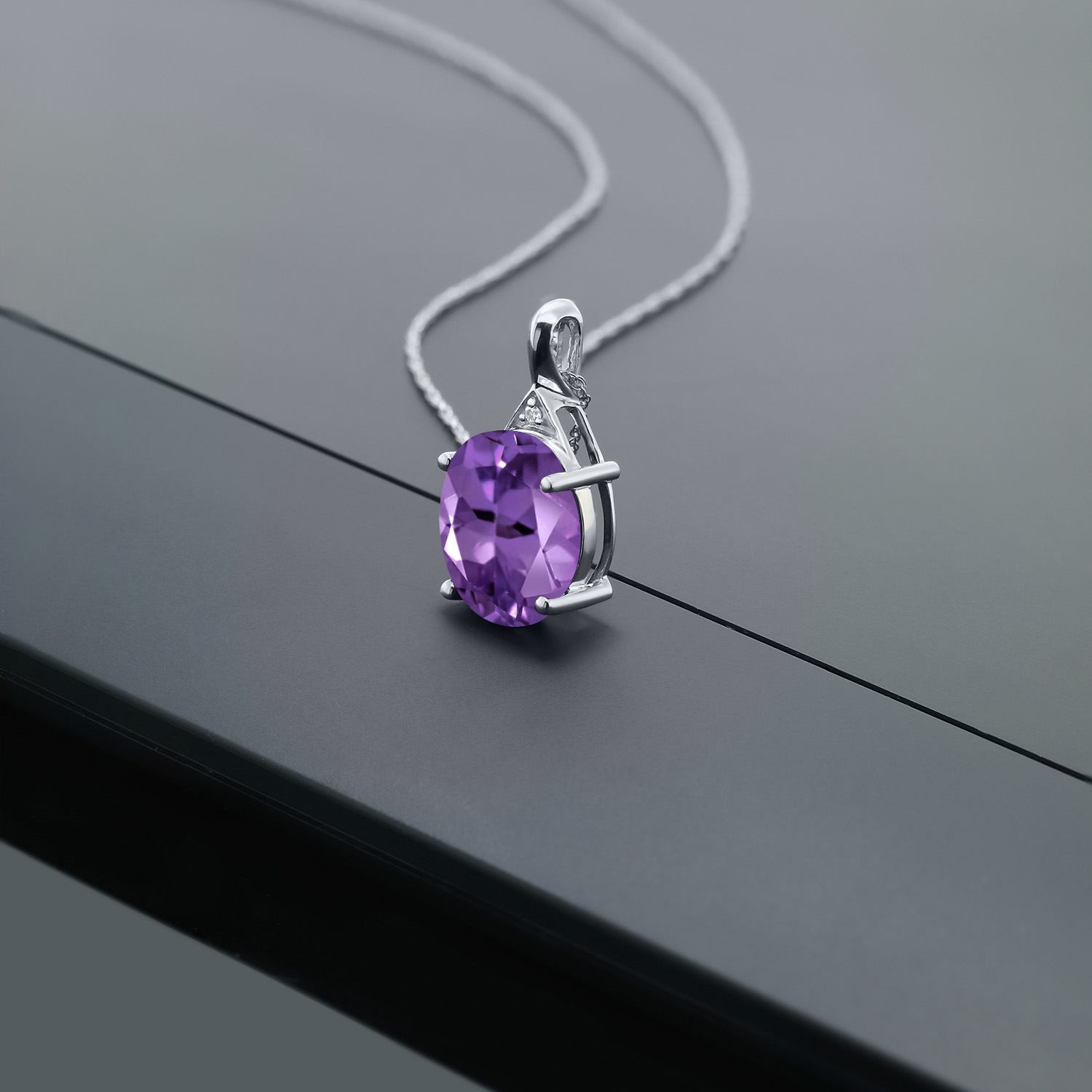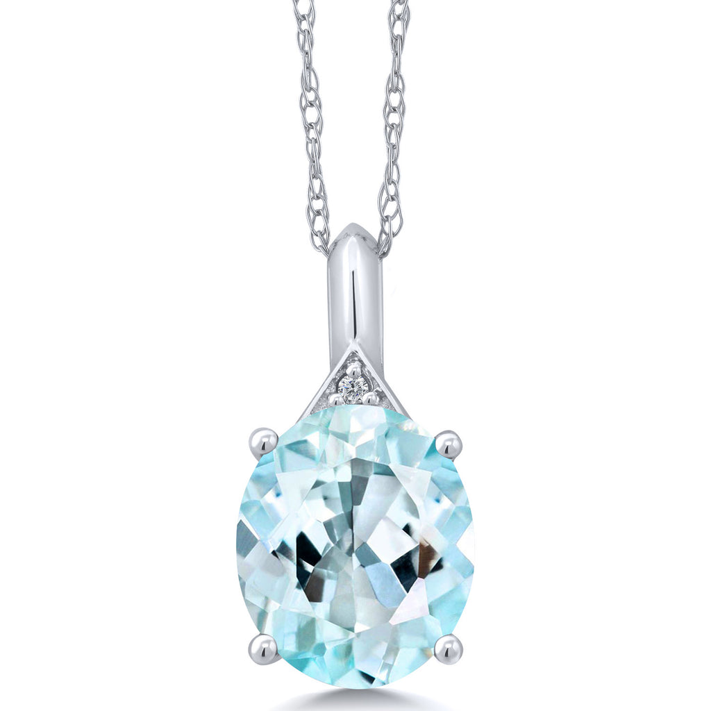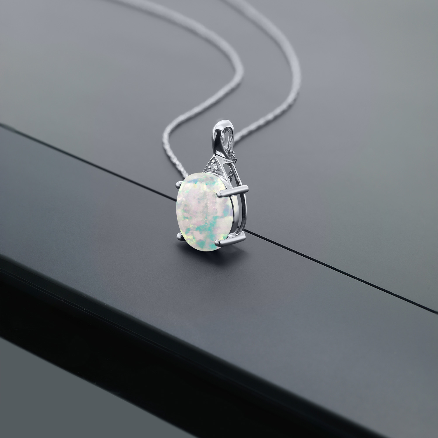 14K White Gold Oval Gemstone Birthstone and White Diamond Necklace | Oval 12X10MM | White Gold Pendant Necklace For Women | 18 Inch Chain | Fine Jewelry Gifts for Her Mom Women Wife
