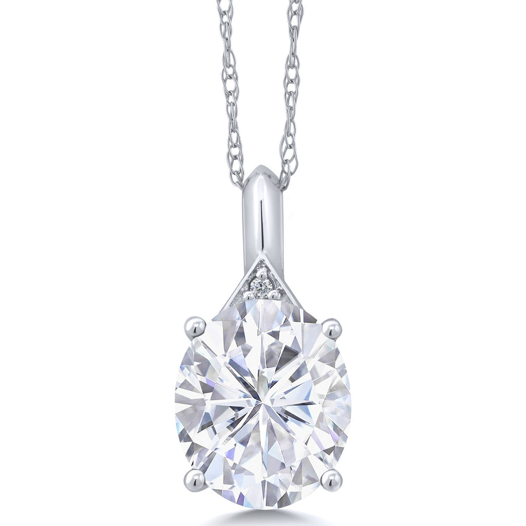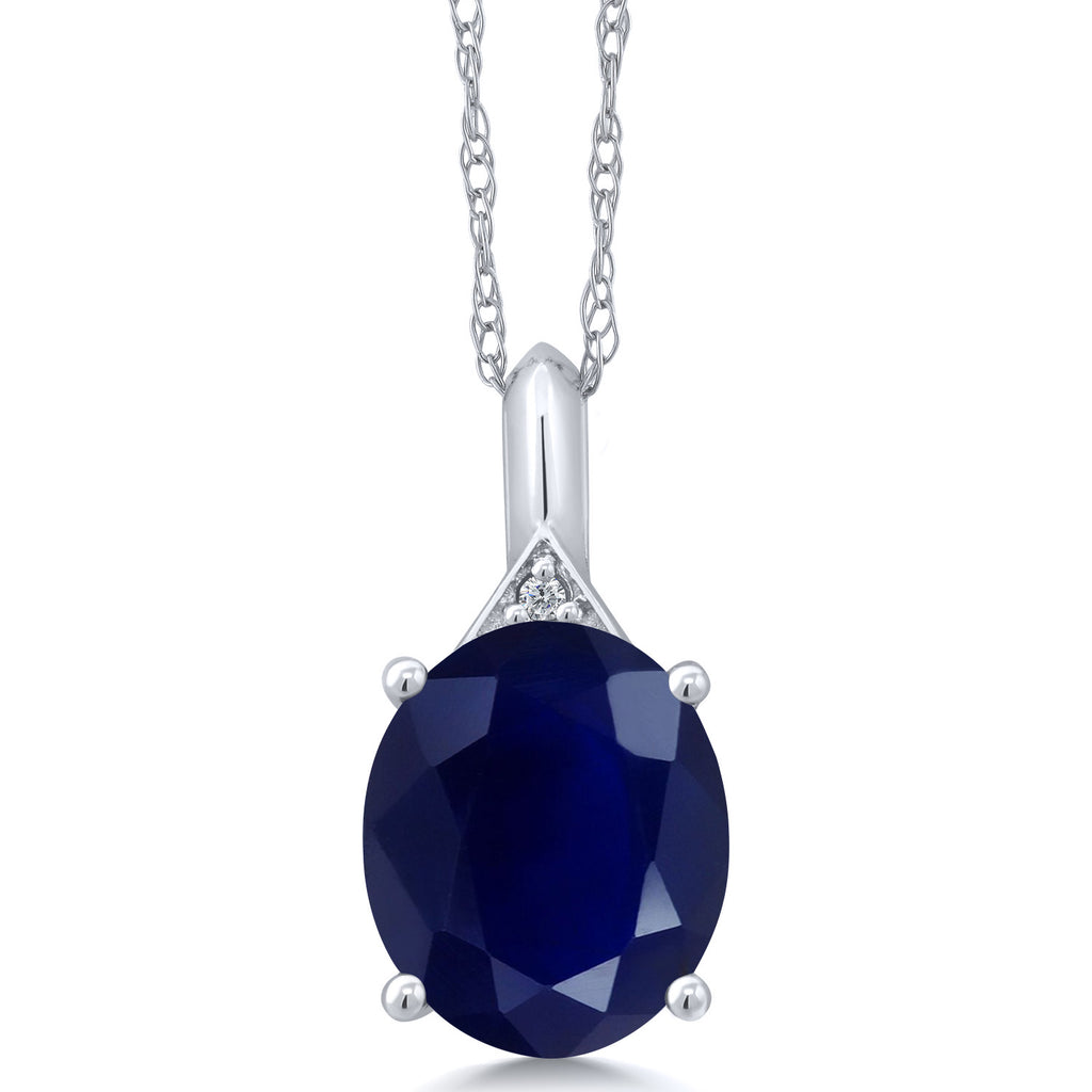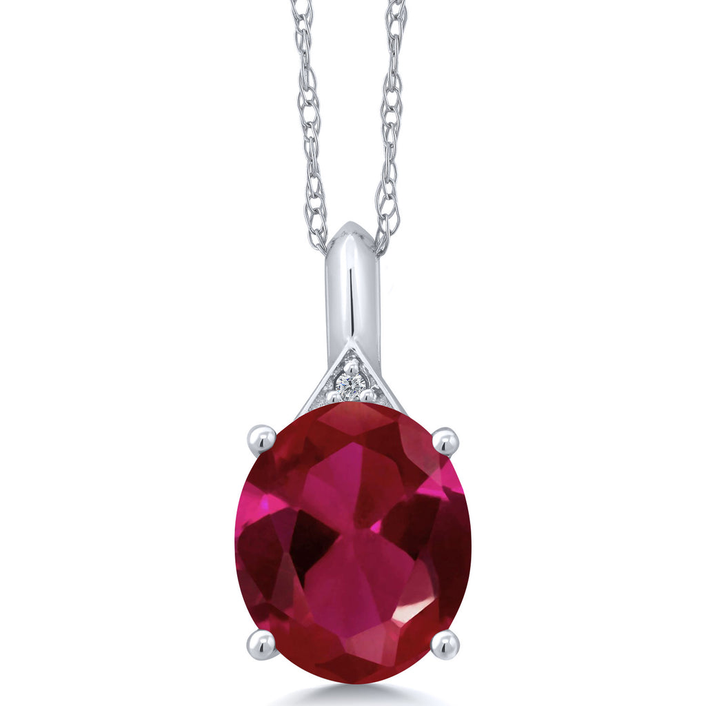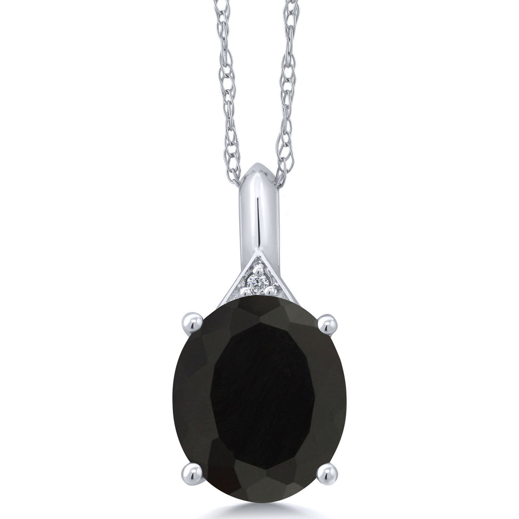 14K White Gold Oval Gemstone Birthstone and White Diamond Necklace | Oval 12X10MM | White Gold Pendant Necklace For Women | 18 Inch Chain | Fine Jewelry Gifts for Her Mom Women Wife