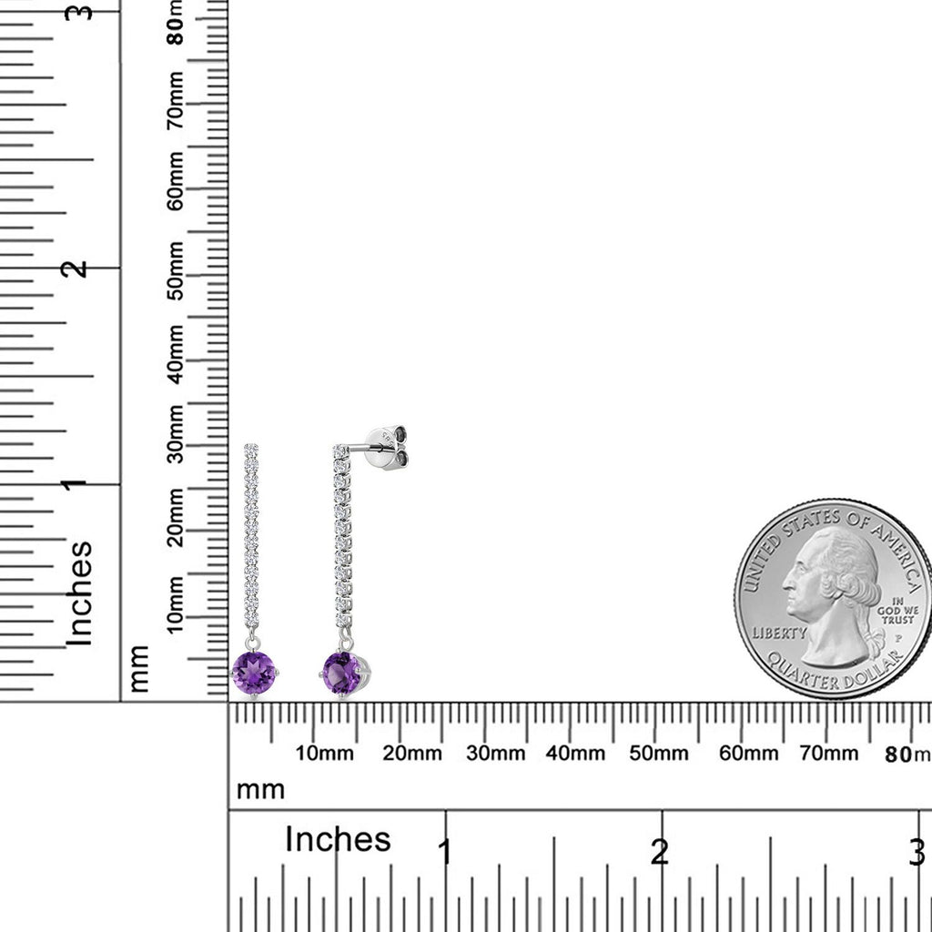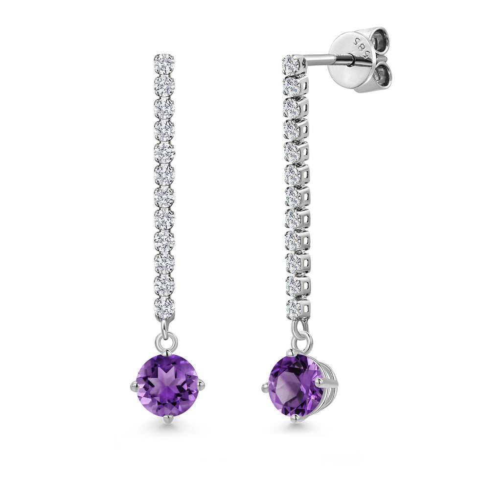 14K White Gold Purple Amethyst and White Lab Grown Diamond Long Liner Dangle Earrings for Women | 1.31 Cttw | Gemstone February Birthstone | Round 5MM | White Gold Chain Drop Earrings