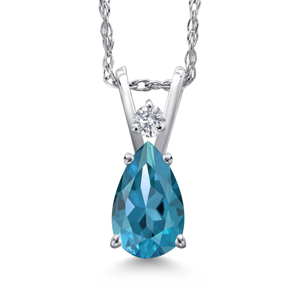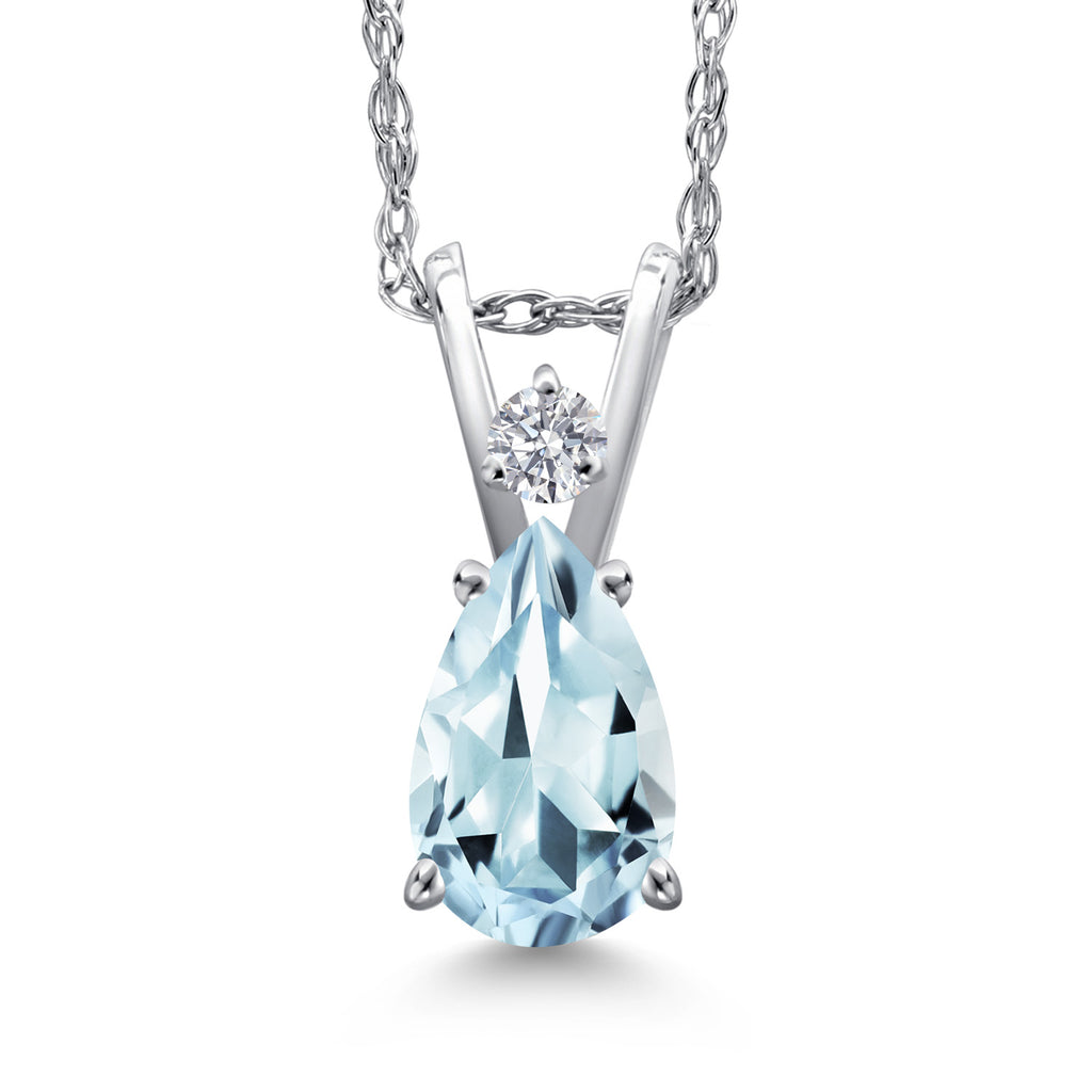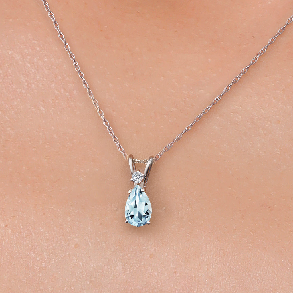 14K White Gold Gemstone Birthstone and White Lab Grown Diamond Pendant Necklace | Gold Necklace for Women | Pear Shape 7X5MM and Round 2MM | 18 Inch Gold Chain