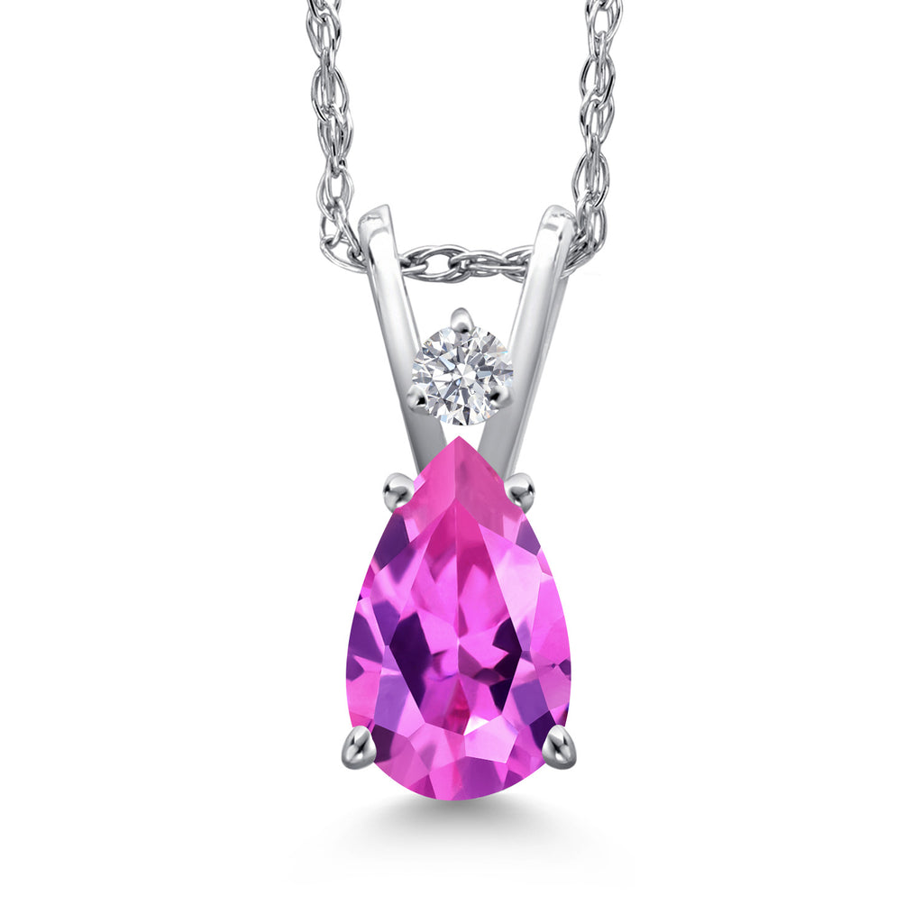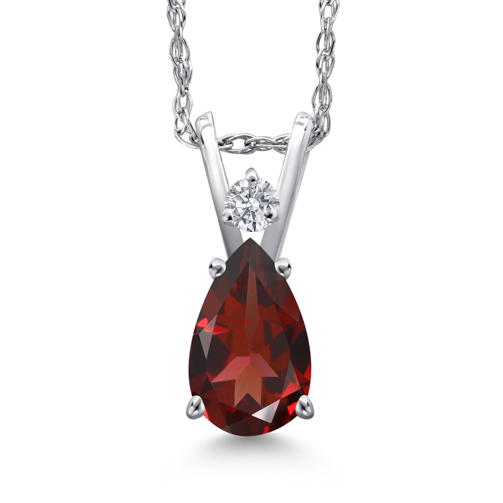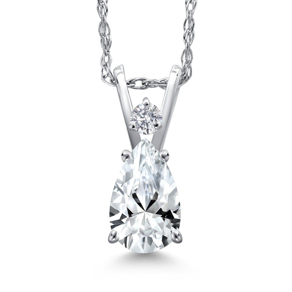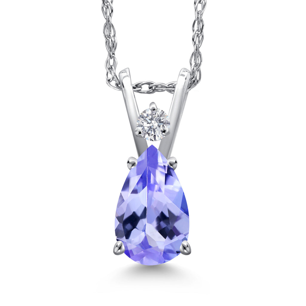 14K White Gold Gemstone Birthstone and White Lab Grown Diamond Pendant Necklace | Gold Necklace for Women | Pear Shape 7X5MM and Round 2MM | 18 Inch Gold Chain