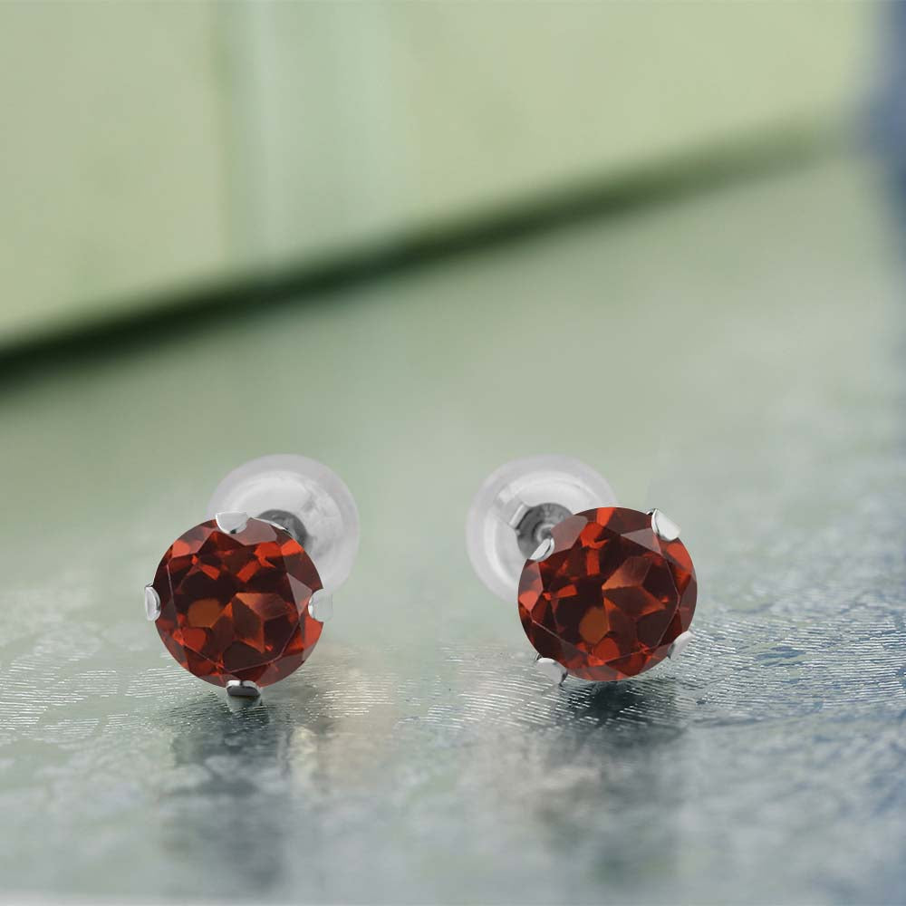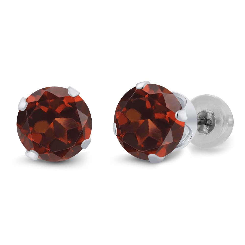 14K White Gold Red Garnet Stud Earrings For Women Men (2.00 Cttw Gemstone Birthstone Round 6MM)
