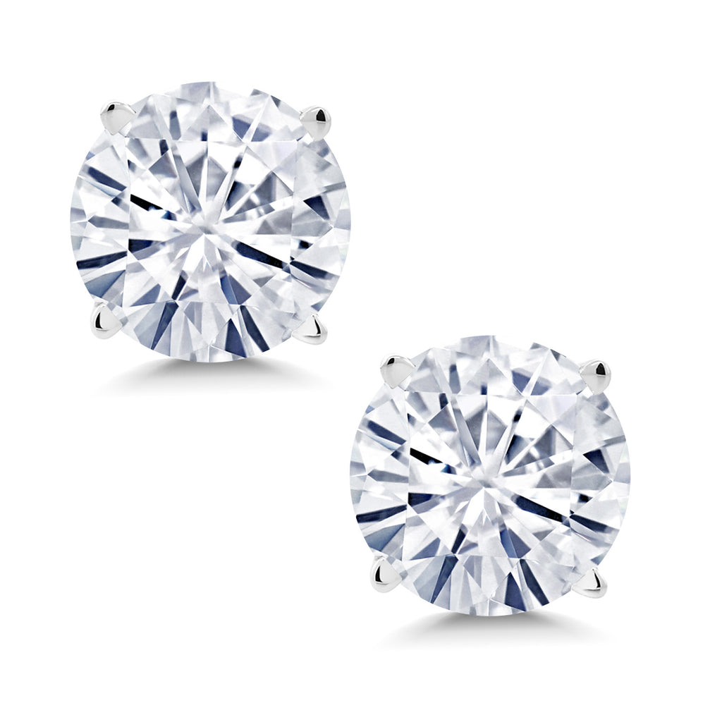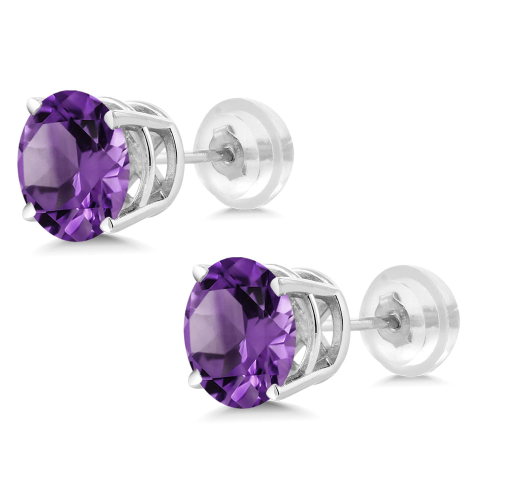 14K White Gold Round 5MM Gemstone Birthstone Stud Earrings | White Gold Earrings For Women Men