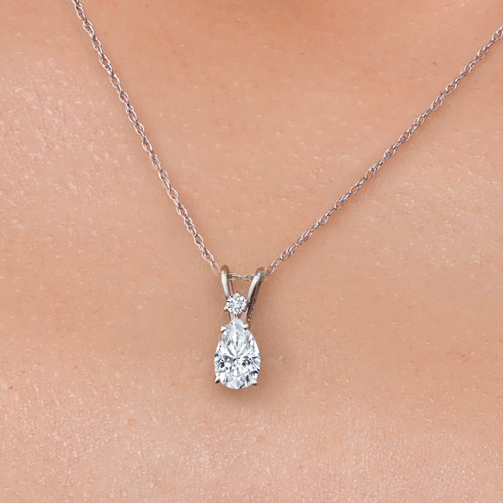 SOPHISTICATED DESIGN WITH DIAMOND ACCENT: The teardrop pendant features a 2mm round diamond accent, adding a touch of sparkle. The sleek white gold setting elegantly cradles the gemstone, creating a harmonious blend of sophistication and modern style.