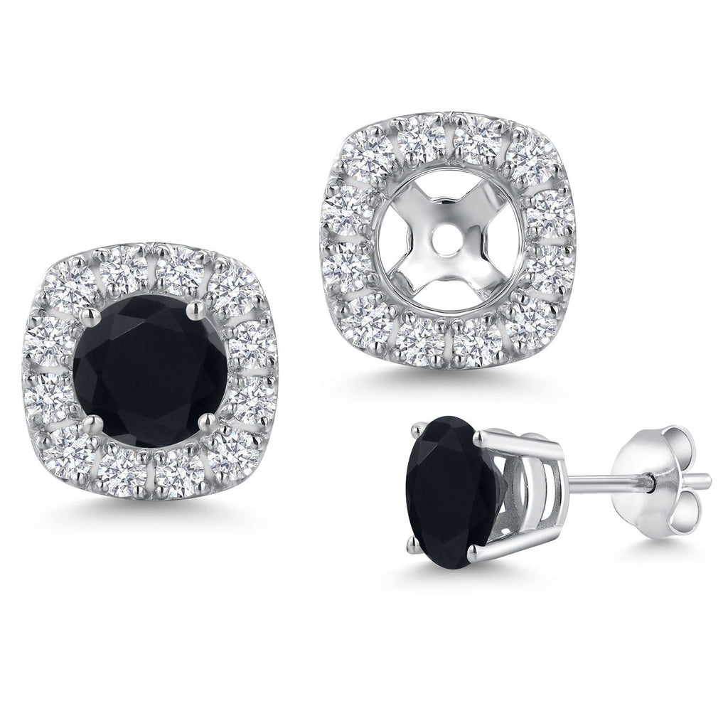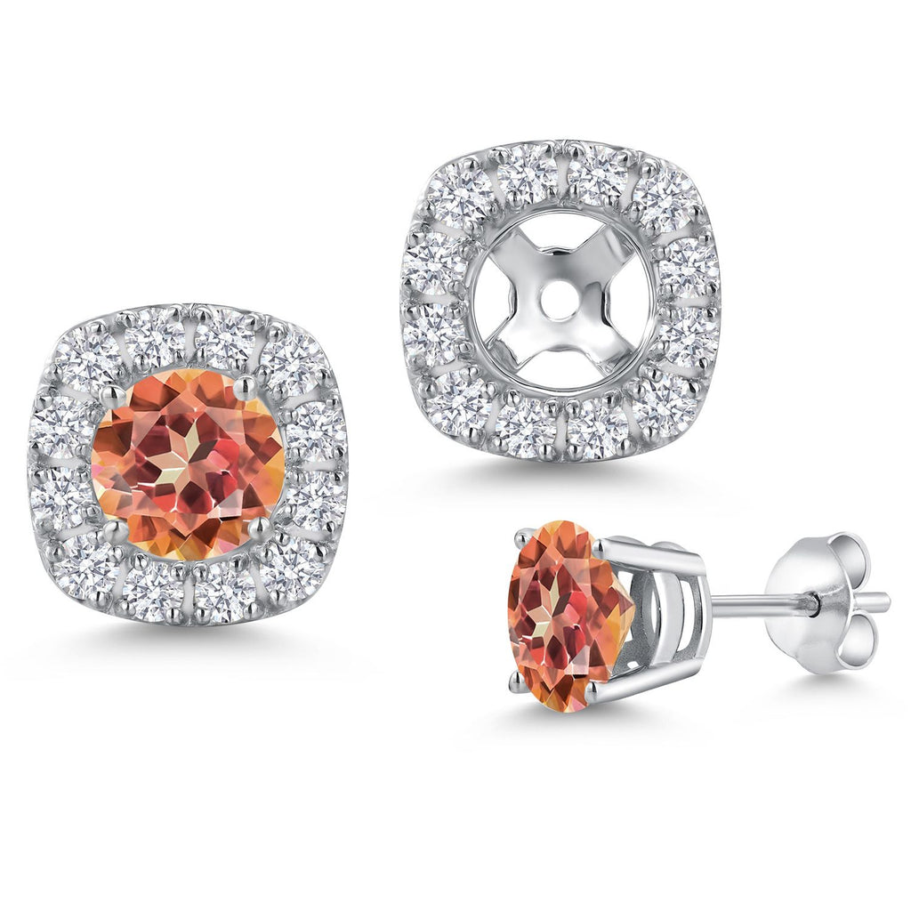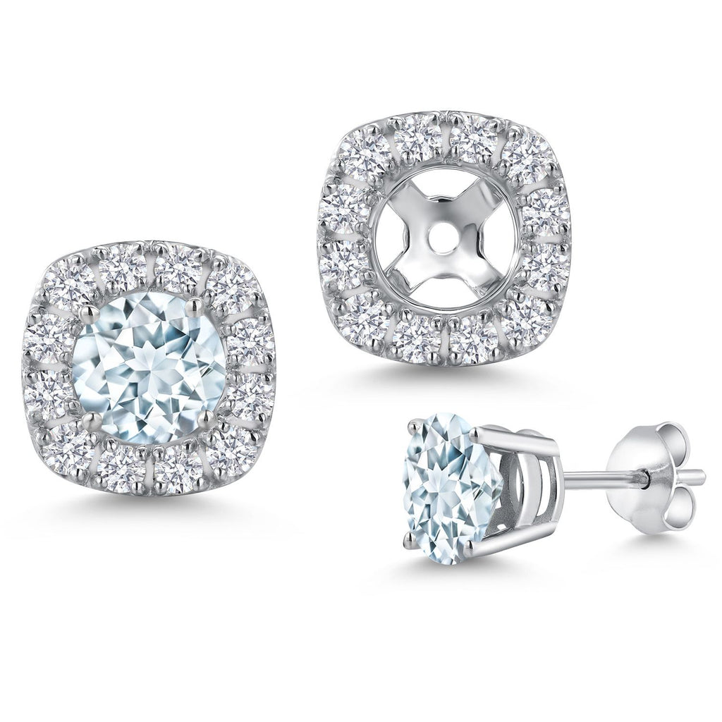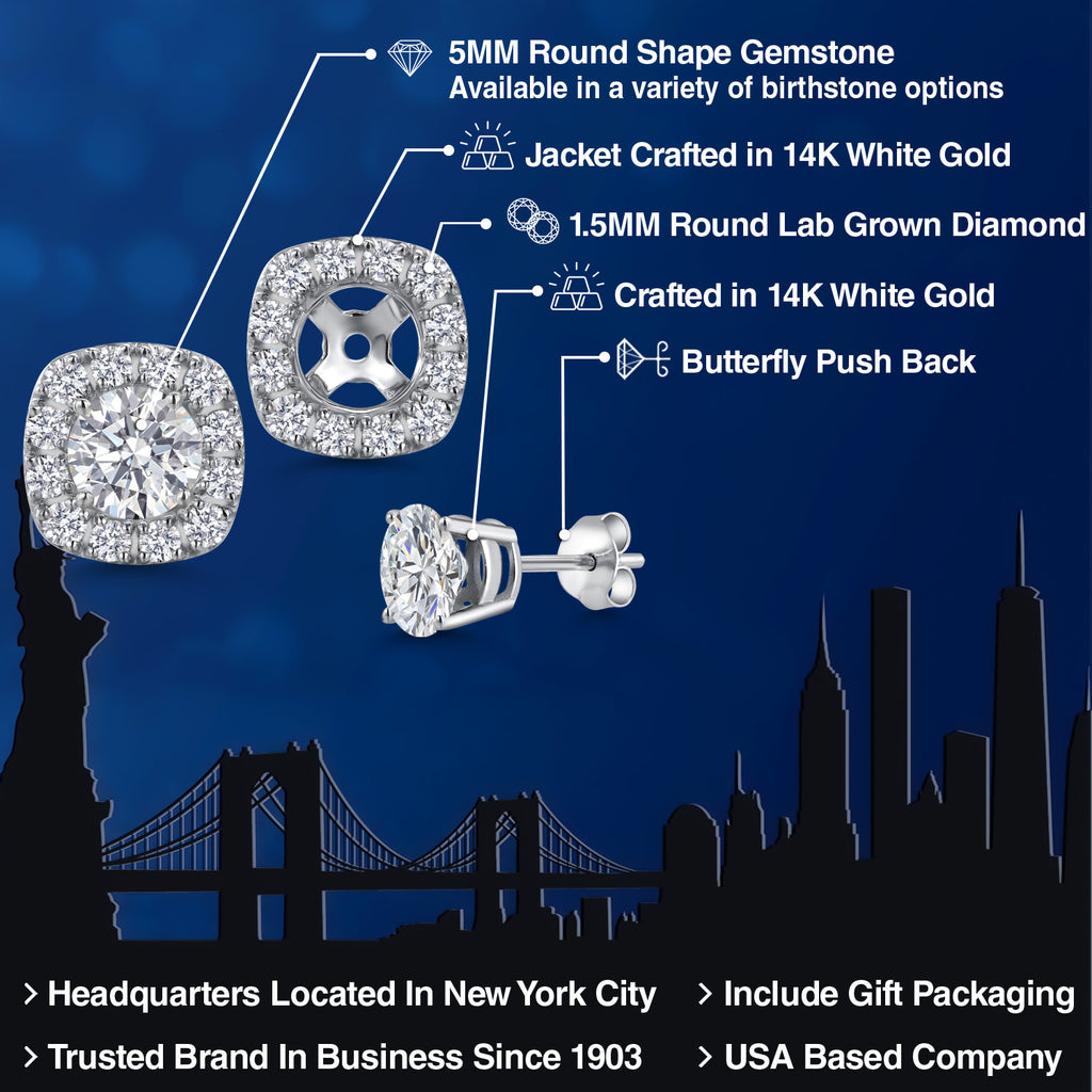14K White Gold 5MM Round Gemstone Birthstone Stud Earrings with Removable Jackets and Lab Grown Diamond Accents | Gold Earrings For Women | Fine Jewelry Gifts for Her Mom Women Wife