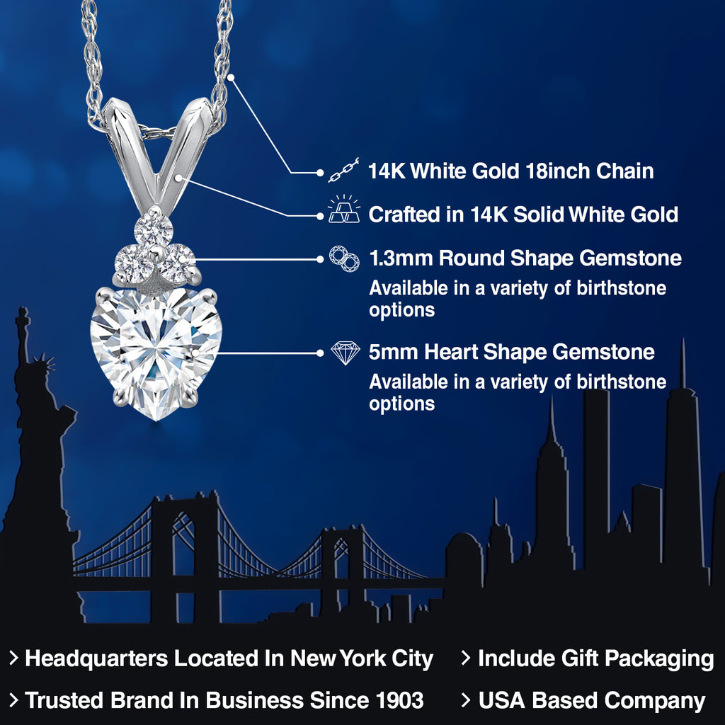 HEART-SHAPED 5MM GEMSTONE CENTERPIECE: Bask in the allure of our 14K White Gold pendant, showcasing a heart-shaped 5MM gemstone. This captivating centerpiece is available in a variety of birthstone options, each stone meticulously cut to enhance its brilliance and evoke emotions. The robust and symmetrical heart shape symbolizes love and beauty, making it a perfect choice for those who appreciate romantic aesthetics.