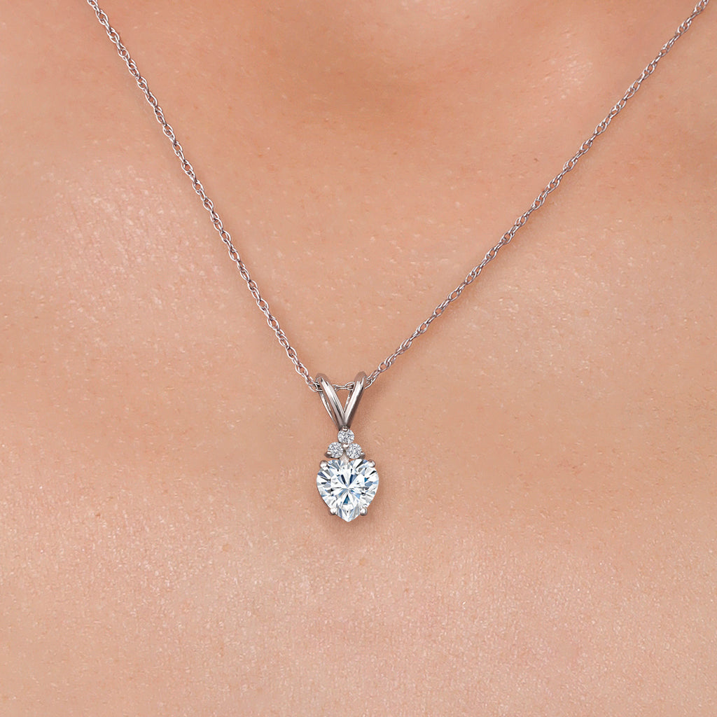 LAB-GROWN SIDE DIAMONDS: Adorning the heart-shaped centerpiece are lab-grown diamonds, offering unmatched sparkle and clarity. These gems are ethically sourced and meticulously set, demonstrating our commitment to fine craftsmanship. Their placement enhances the pendant's overall brilliance, creating a dazzling display that reflects light beautifully from every angle.