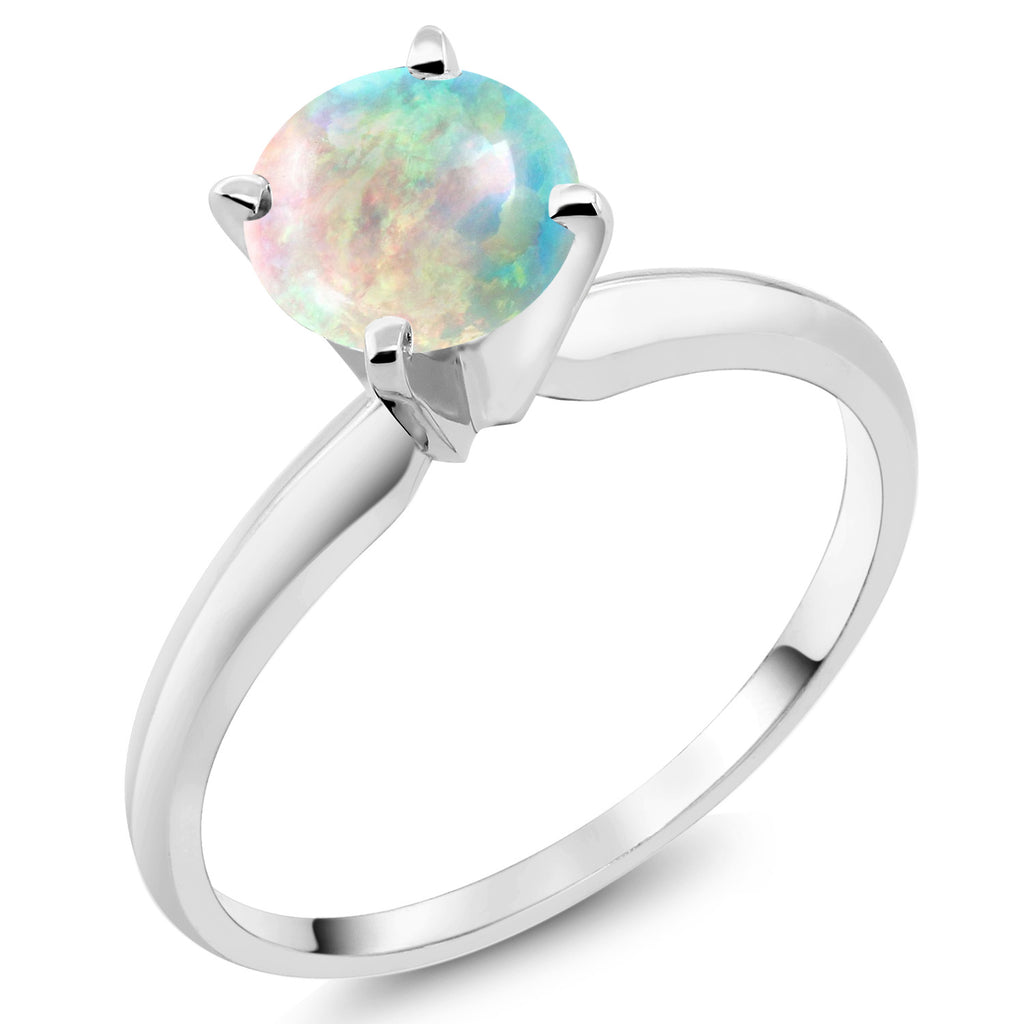 MEASUREMENTS: 6x6mm Round Cabochon White Opal. Total Carat Weight is 1 cttw