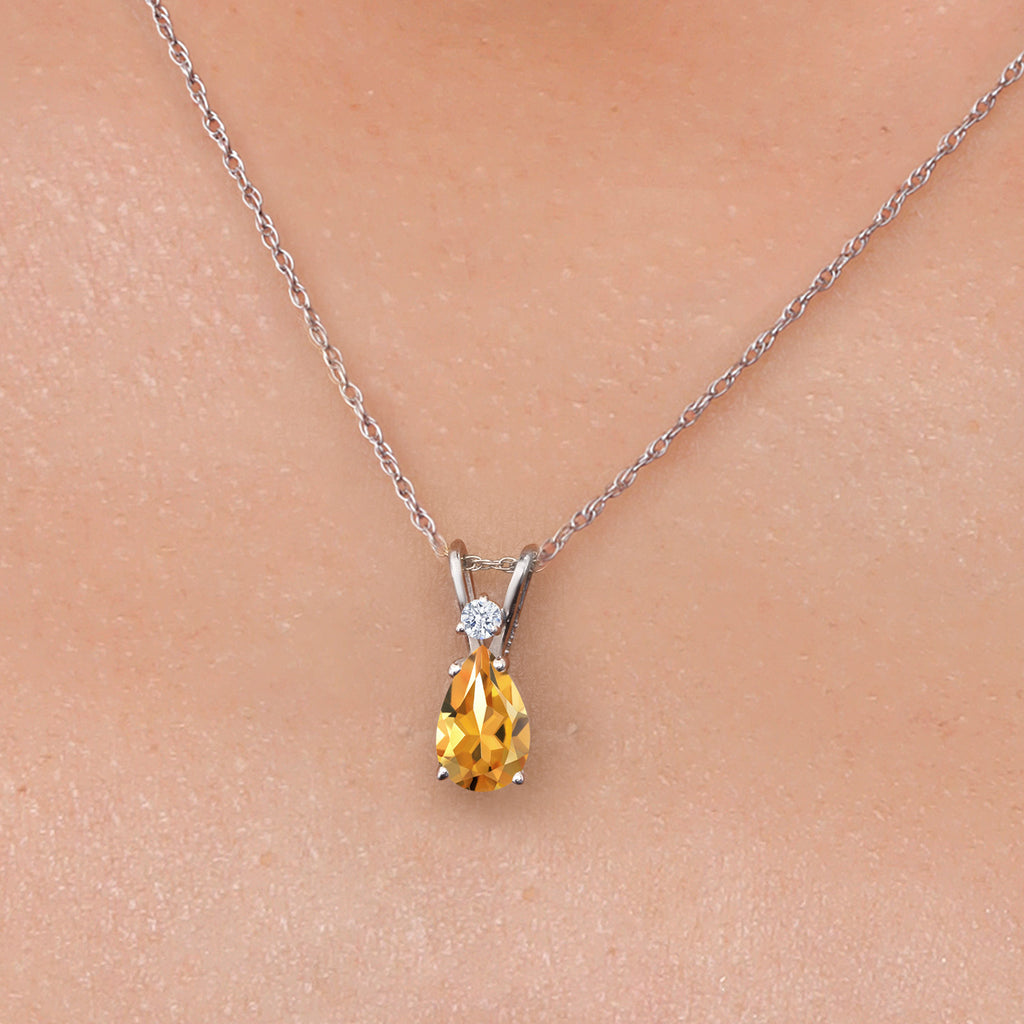 14K White Gold Yellow Citrine and White Zirconia Pendant Necklace for Women | 0.87 Cttw | Gemstone November Birthstone | Pear Shape 7X5MM | With 18 Inch Chain