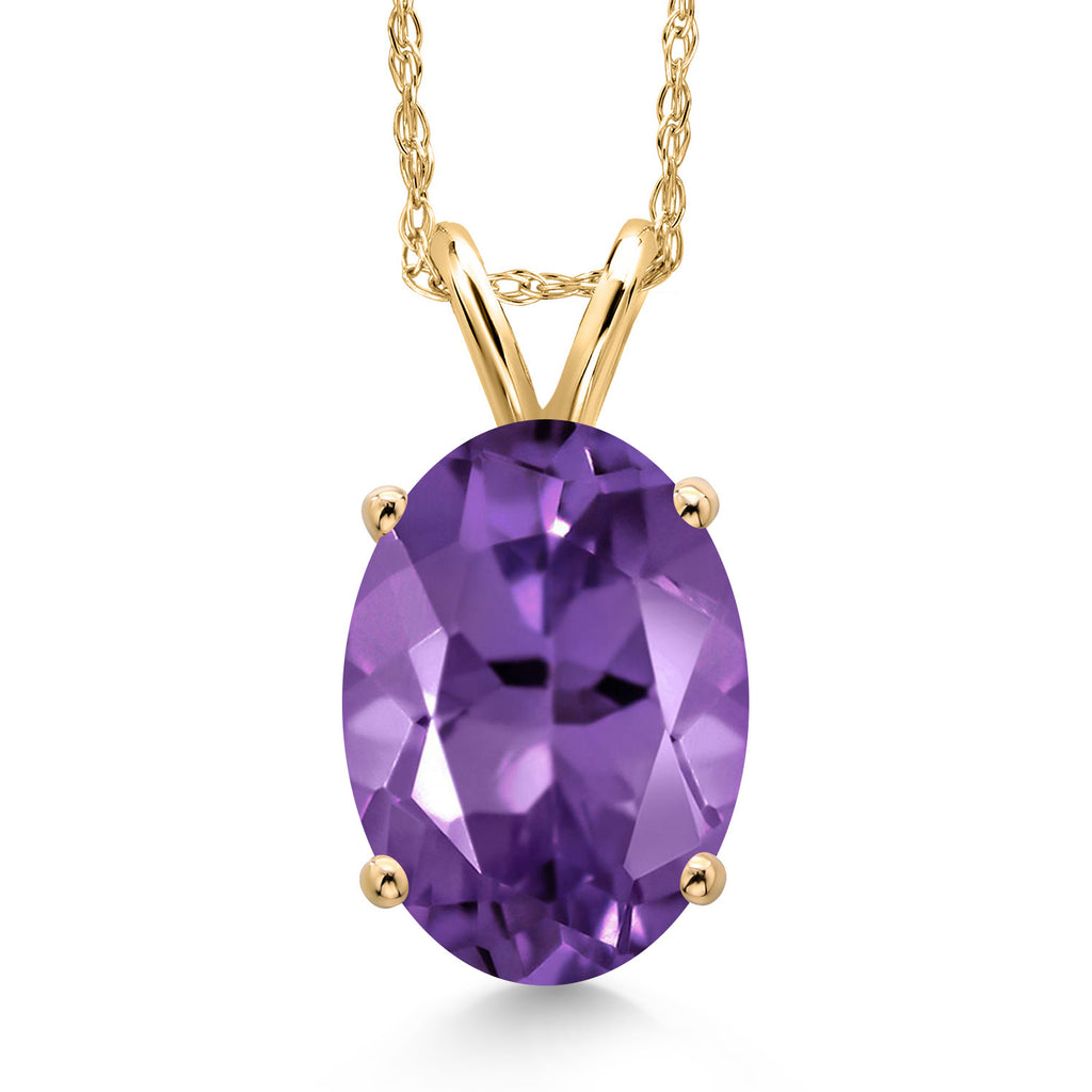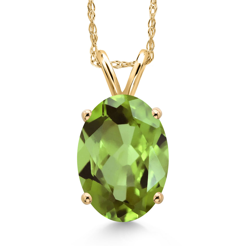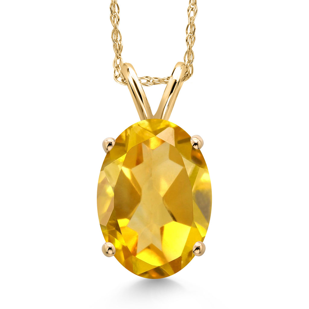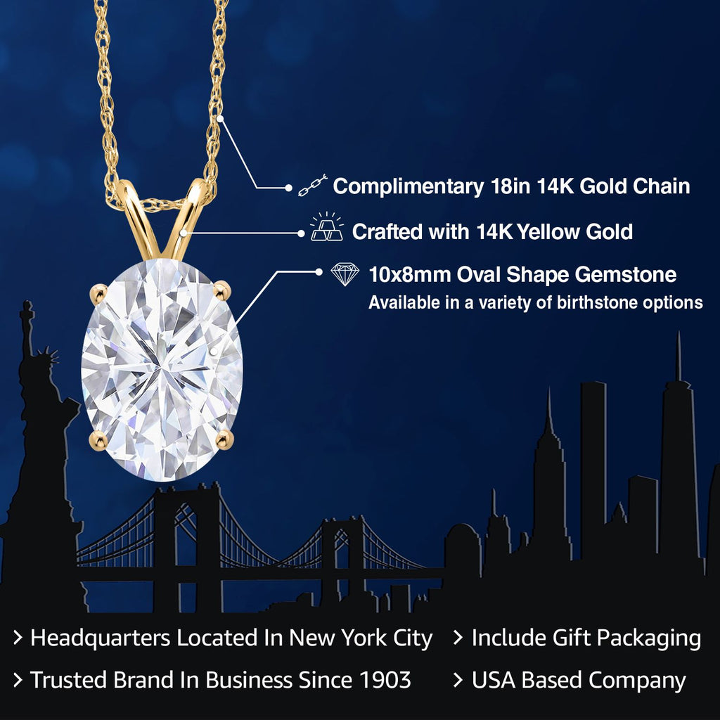 14K Yellow Gold 10X8MM Oval Gemstone Birthstone Pendant Necklace for Women | Gold Necklace For Women | With 18 Inch Rope Gold Chain | Fine Jewelry Gifts for Her Mom Wife