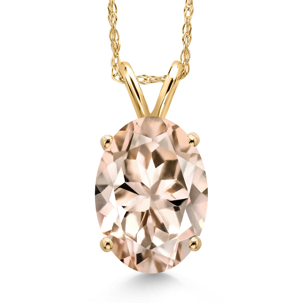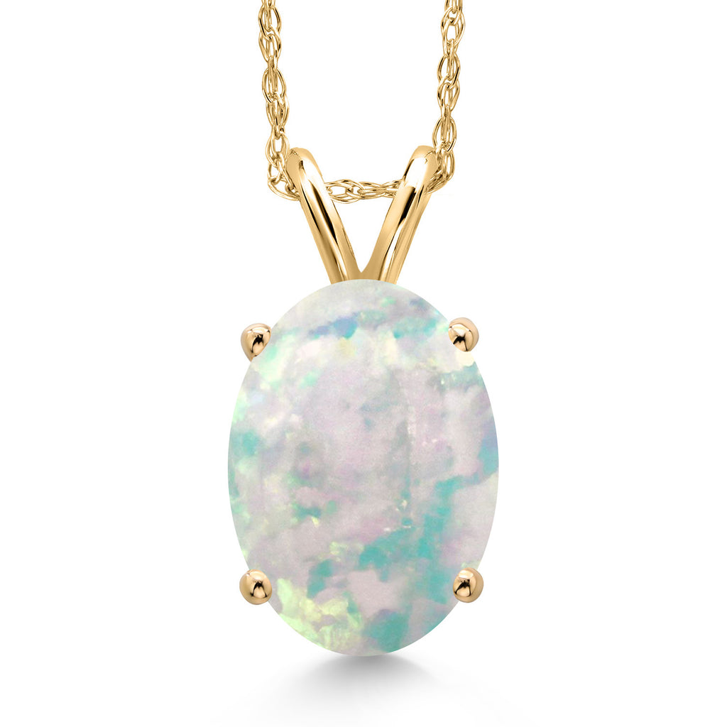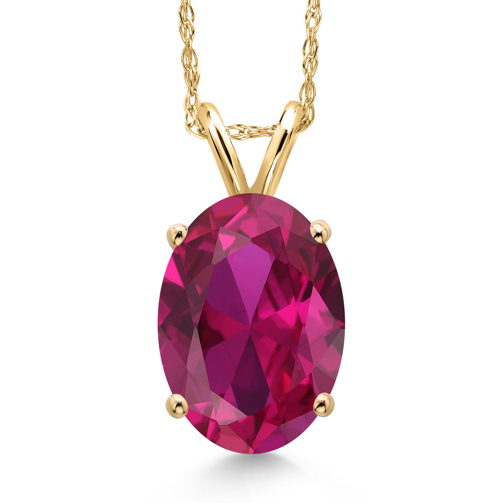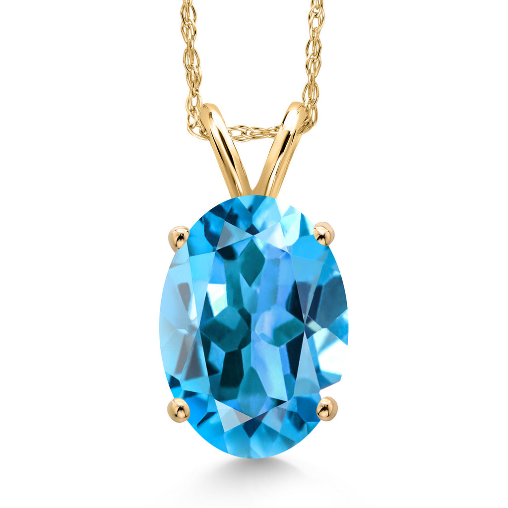 14K Yellow Gold 10X8MM Oval Gemstone Birthstone Pendant Necklace for Women | Gold Necklace For Women | With 18 Inch Rope Gold Chain | Fine Jewelry Gifts for Her Mom Wife