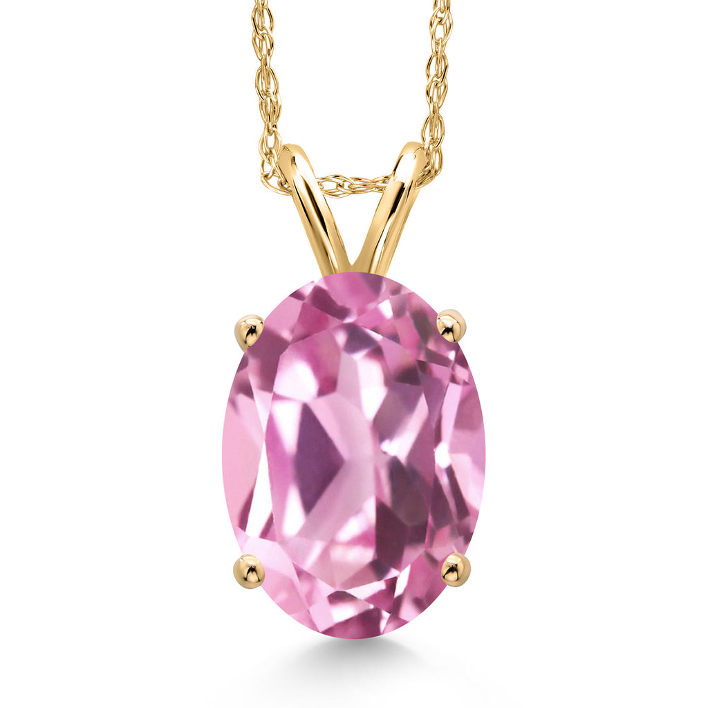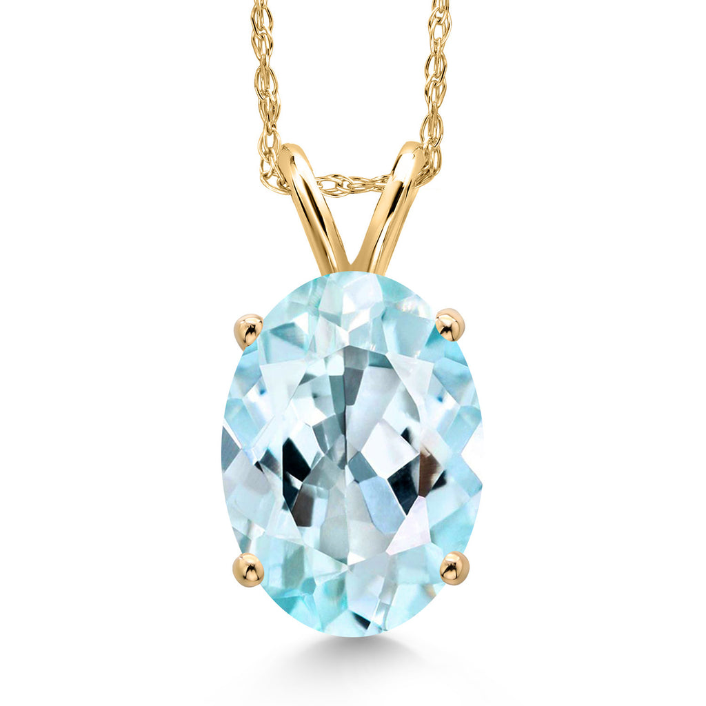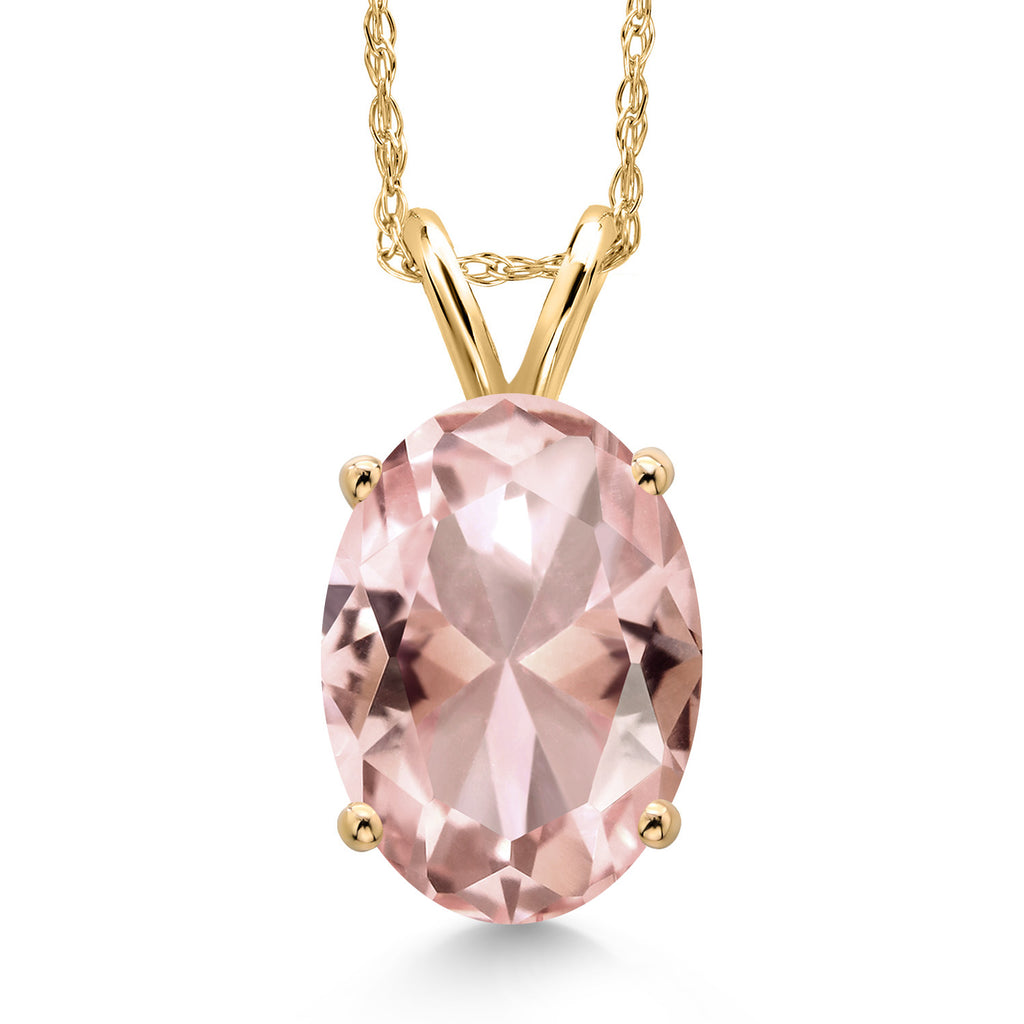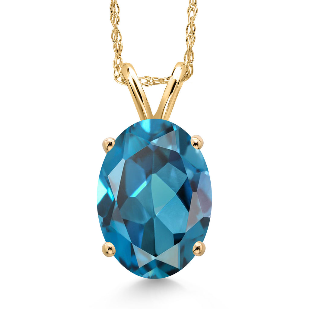 14K Yellow Gold 10X8MM Oval Gemstone Birthstone Pendant Necklace for Women | Gold Necklace For Women | With 18 Inch Rope Gold Chain | Fine Jewelry Gifts for Her Mom Wife