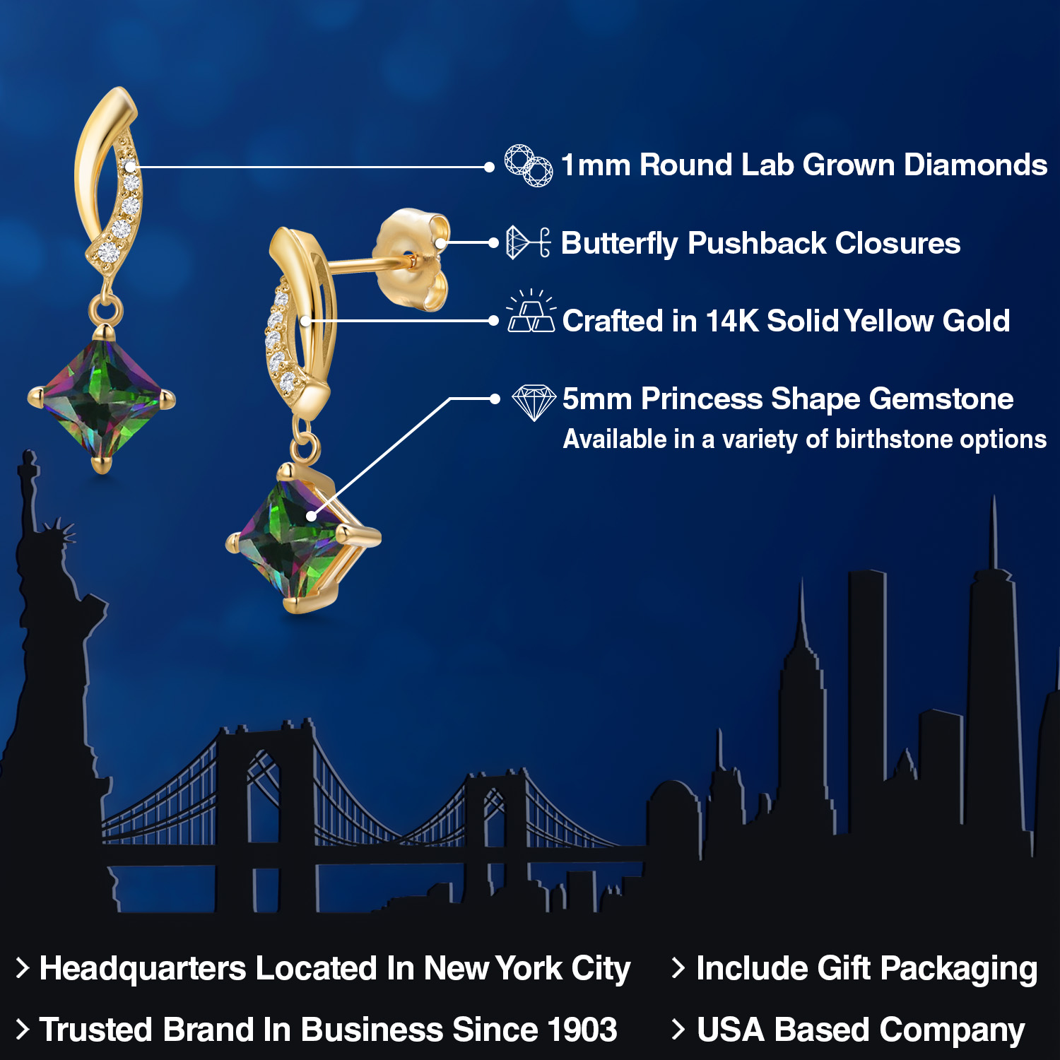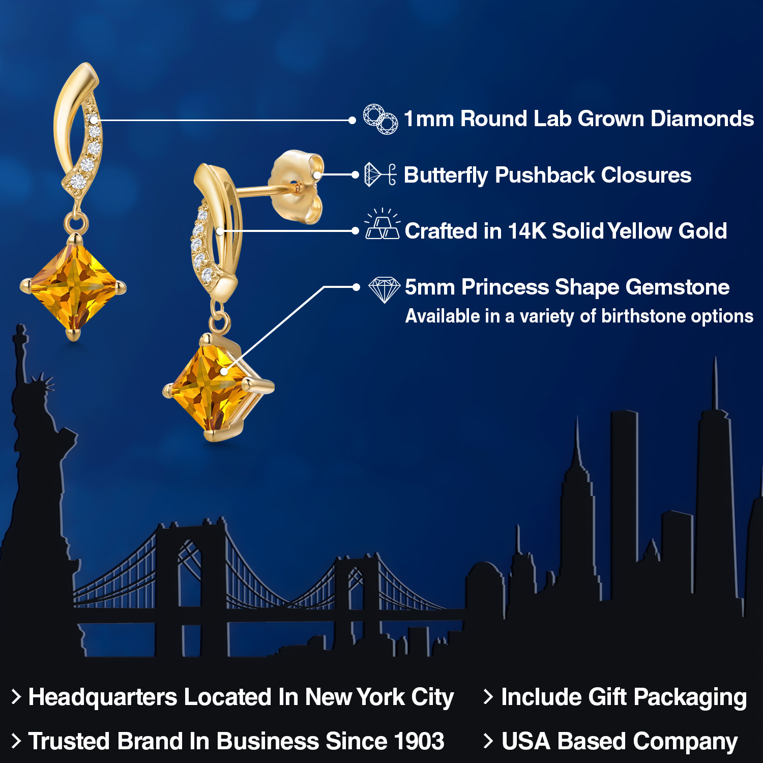 PREMIUM 14K YELLOW GOLD: Crafted from luxurious 14K yellow gold, this earring promises longevity and durability. Its hypoallergenic properties ensure a comfortable wear for sensitive skin types, while the high-quality precious metal enhances the gemstone's brilliance, offering an unmatched luster that withstands everyday wear.