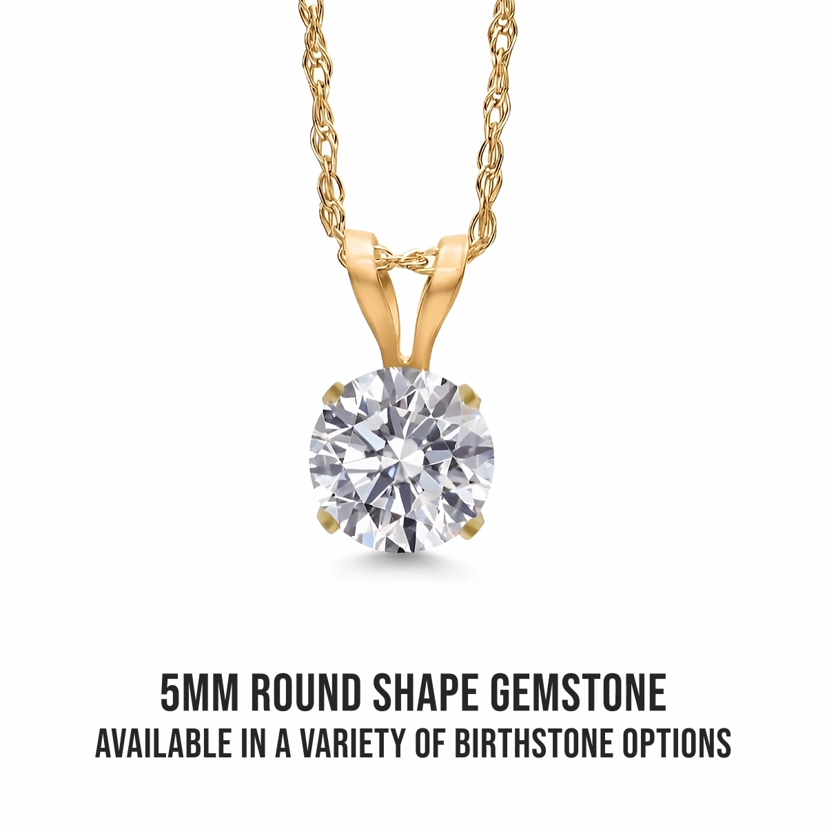 ELEGANT BIRTHSTONE PENDANT: Adorn yourself with sophistication using this 14K Yellow Gold 5MM Round Gemstone Birthstone Pendant Necklace, featuring a timeless design that exudes charm and significance.